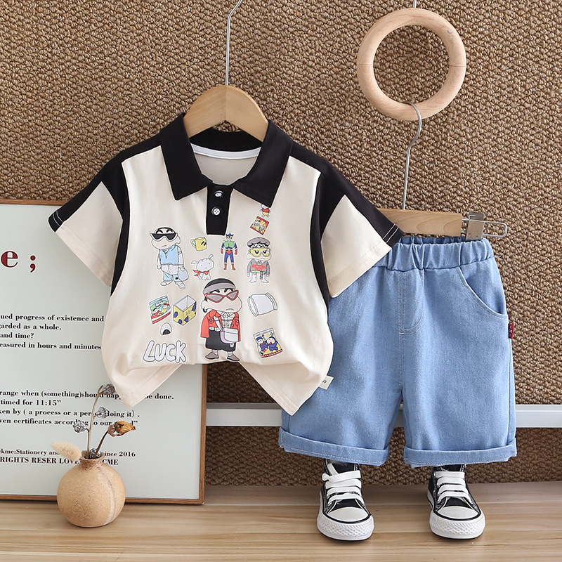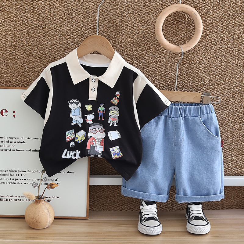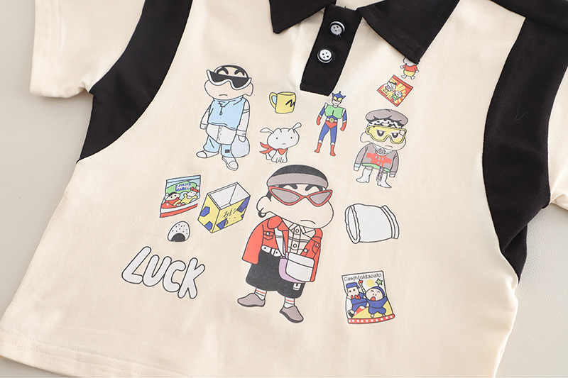 소년 여름 옷깃 티셔츠 세트 2025 새로운 어린이 소년 여름 만화 POLO 짧은 소매 투피스 패션 3