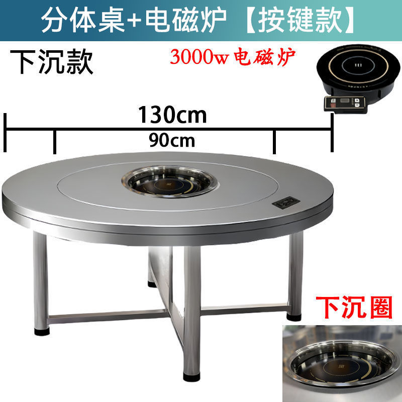 304 두꺼운 스테인레스 스틸 핫 팟 테이블 유도 쿠커 통합 내장 턴테이블 접이식 테이블 라운드 테이블 다이닝 테이블스토어 가기