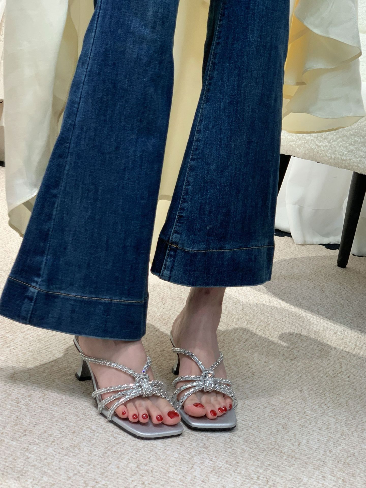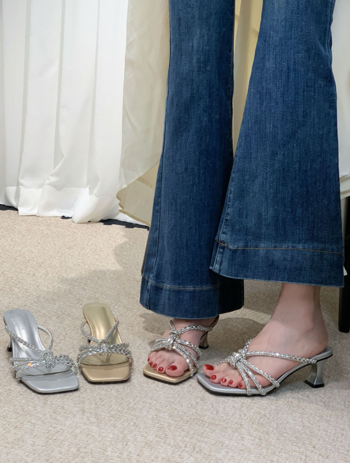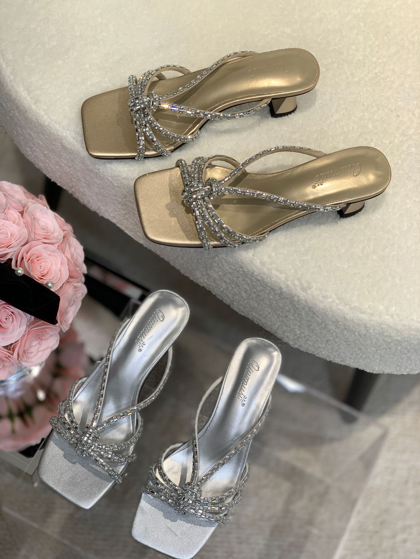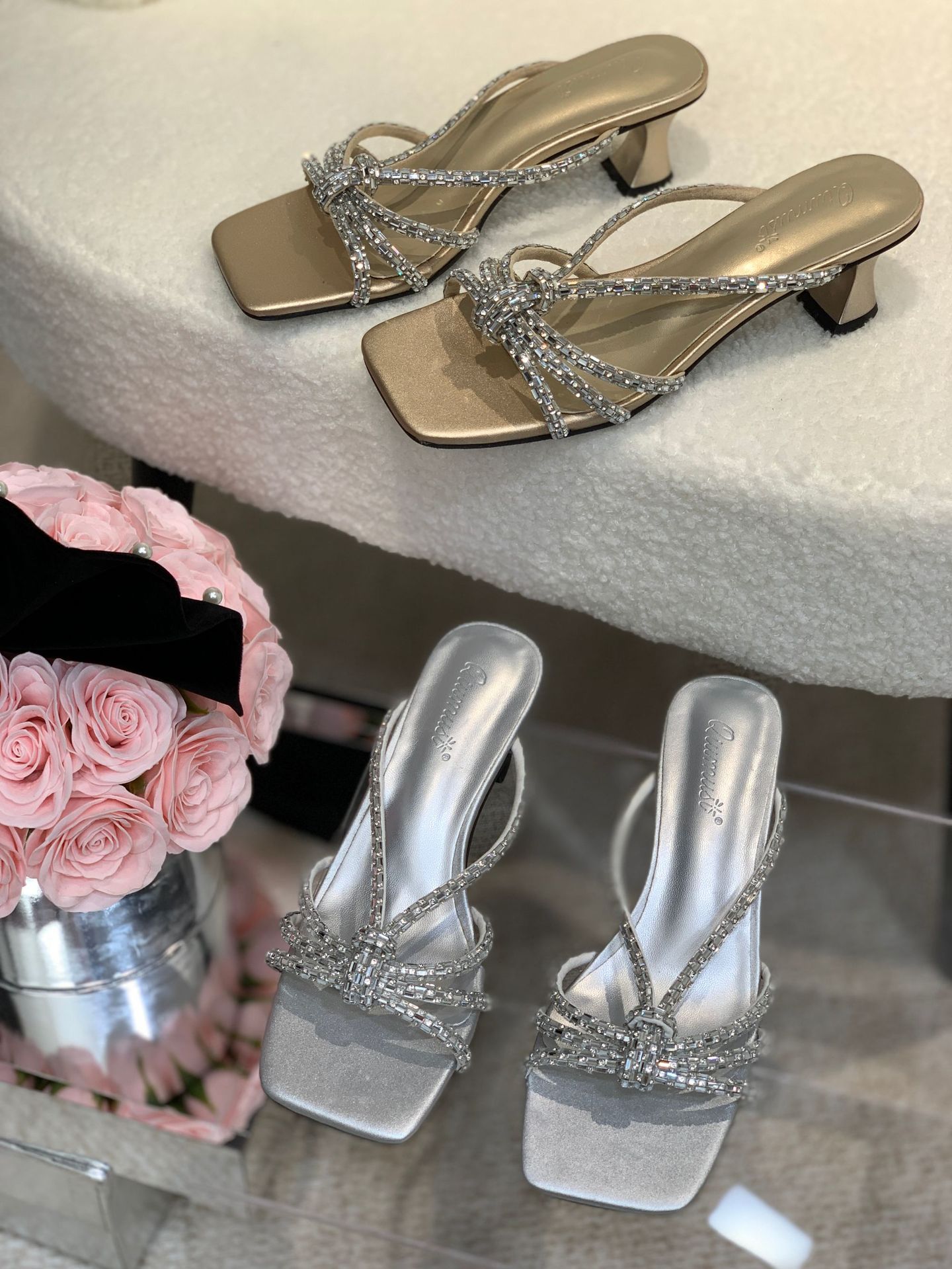 2025 년 여름 새 투명 신발 샌들 여성용 아웃웨어 패션 올매치 두꺼운 굽 크리스탈 슬리퍼 스퀘어 힐 하이힐스토어 가기