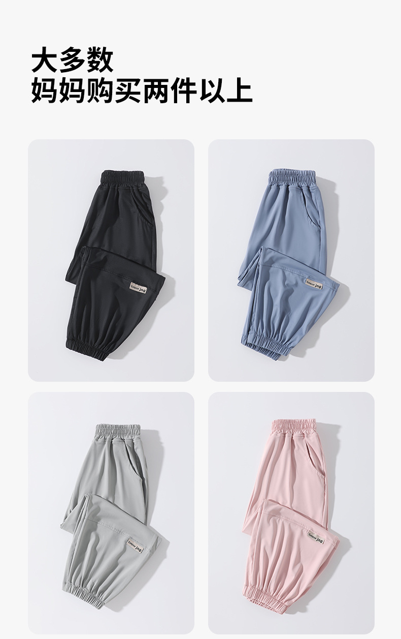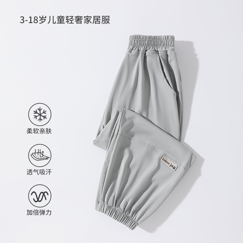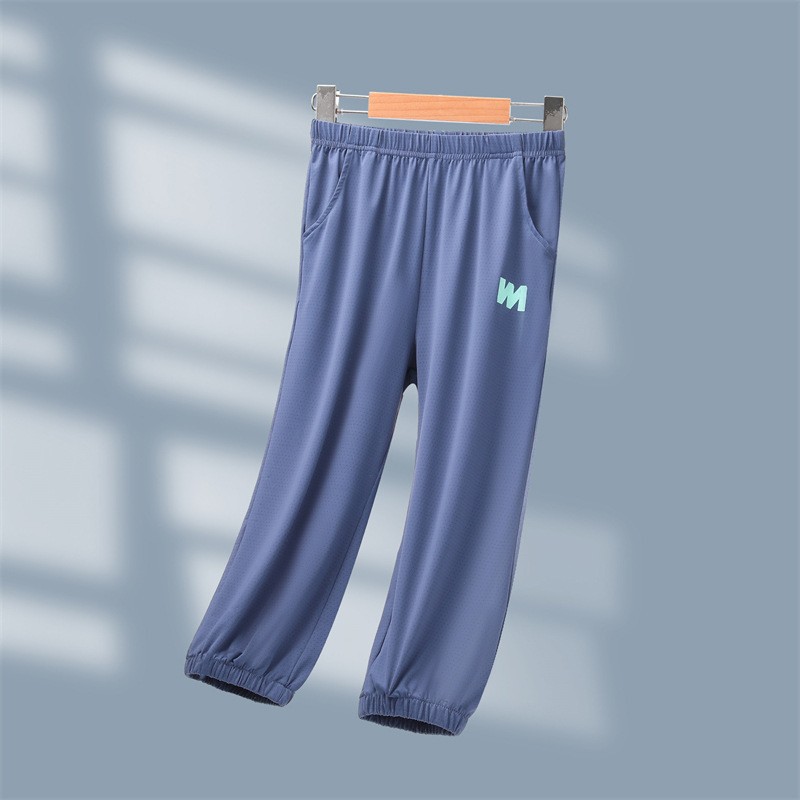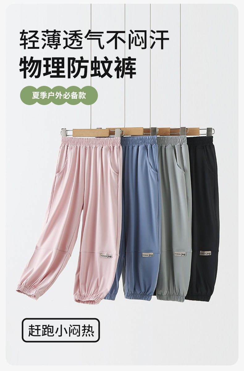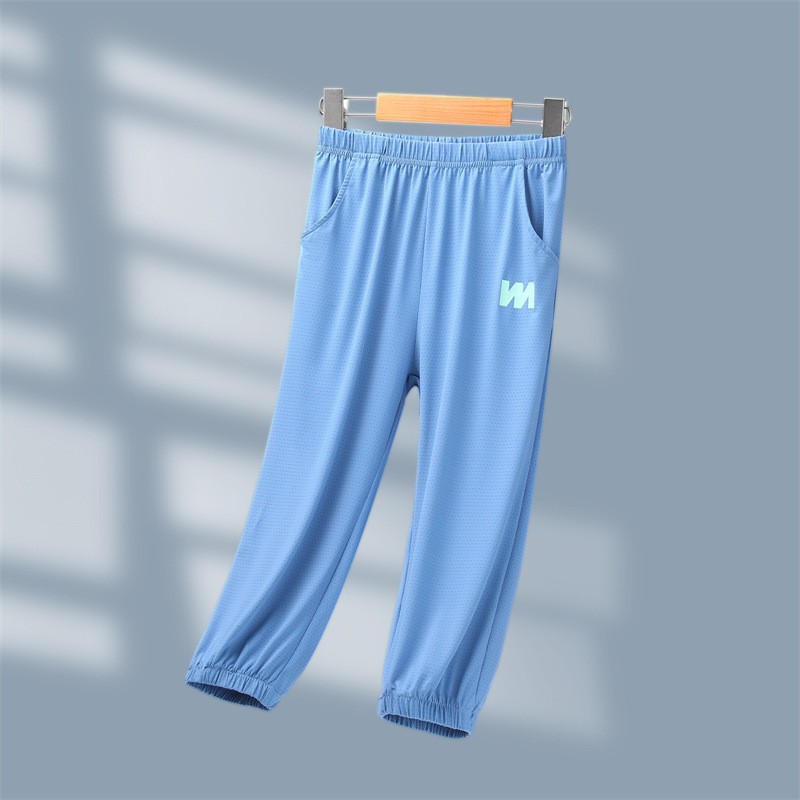 어린이 모기 방지 바지 여름 얇은 2025 새로운 소년과 소녀 아이스 실크 선스크린 통기성 바지 대형 어린이 스포츠 바지스토어 가기