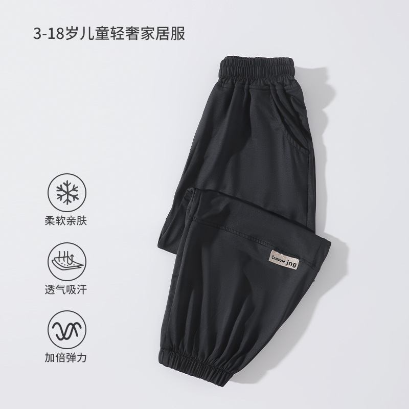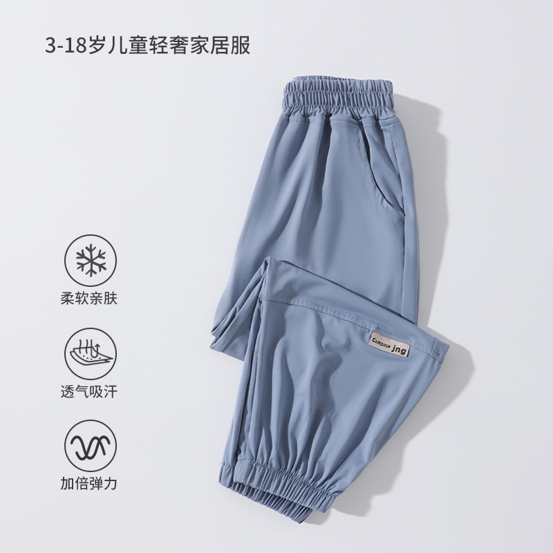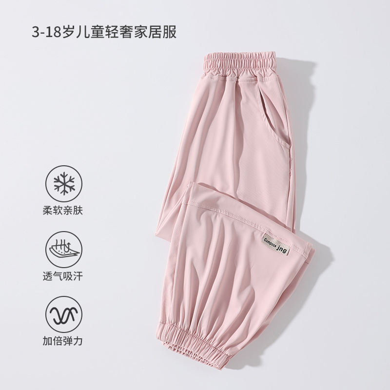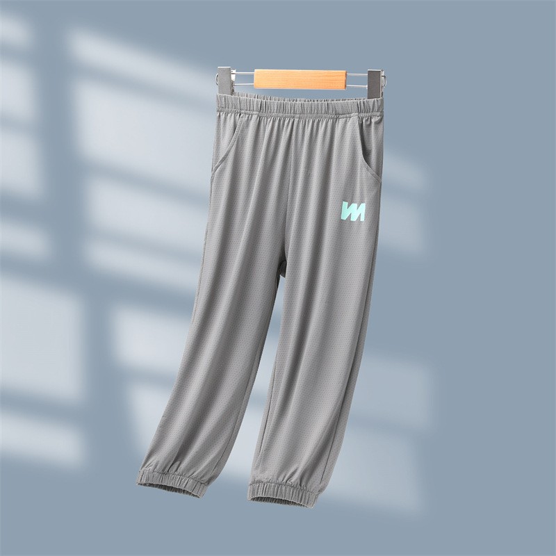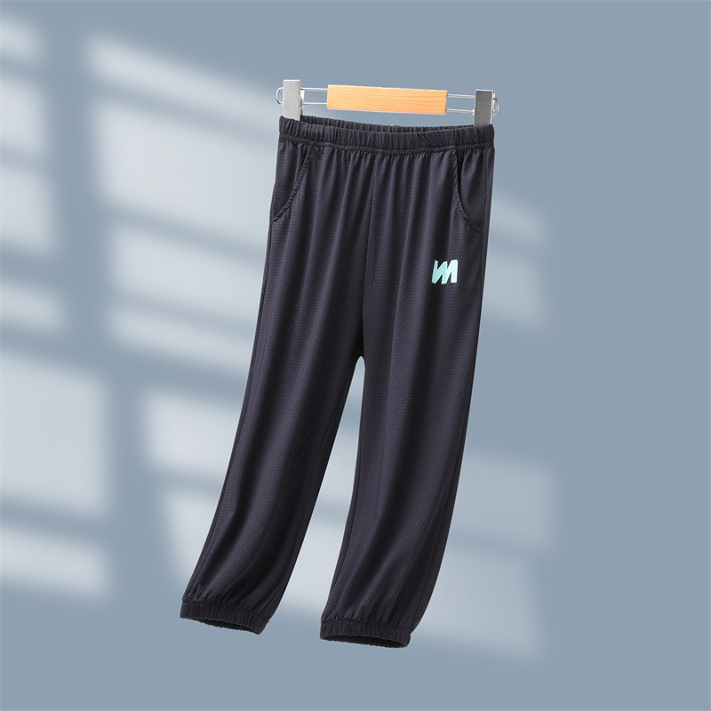 어린이 모기 방지 바지 여름 얇은 2025 새로운 소년과 소녀 아이스 실크 선스크린 통기성 바지 대형 어린이 스포츠 바지스토어 가기