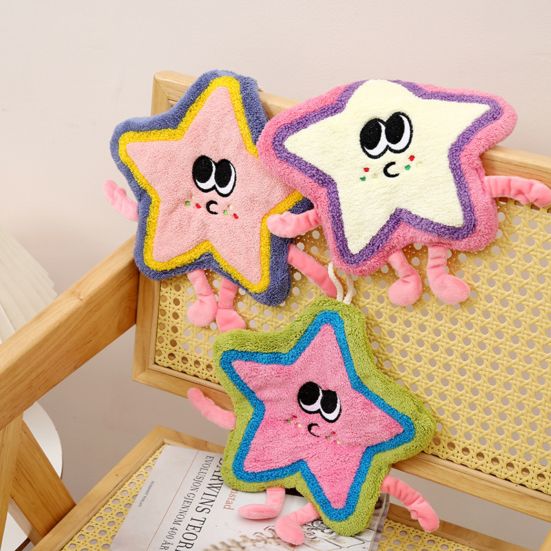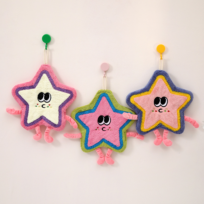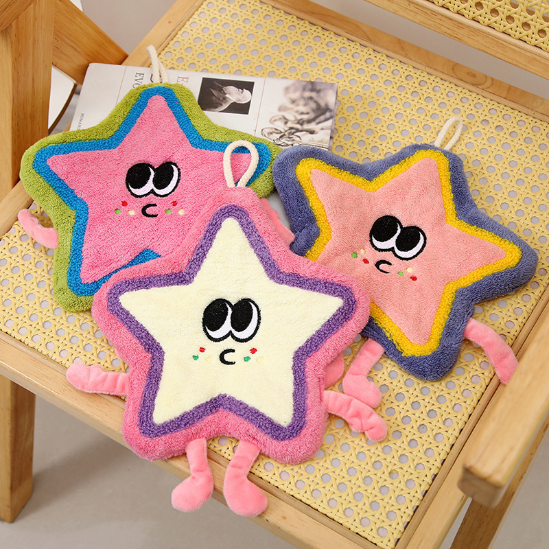 스타 만화 교수형 핸드 타월 귀여운 산호 양털 주방 세척-어린이를위한 두꺼운 머리가없는 성인 타월스토어 가기