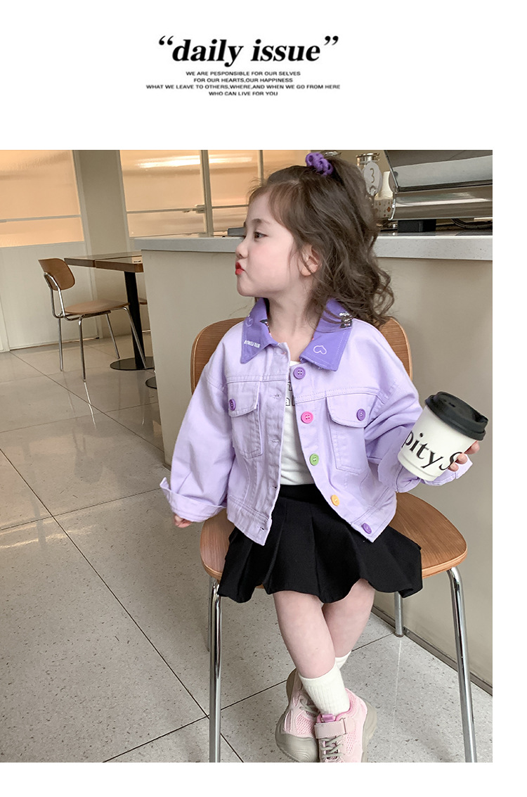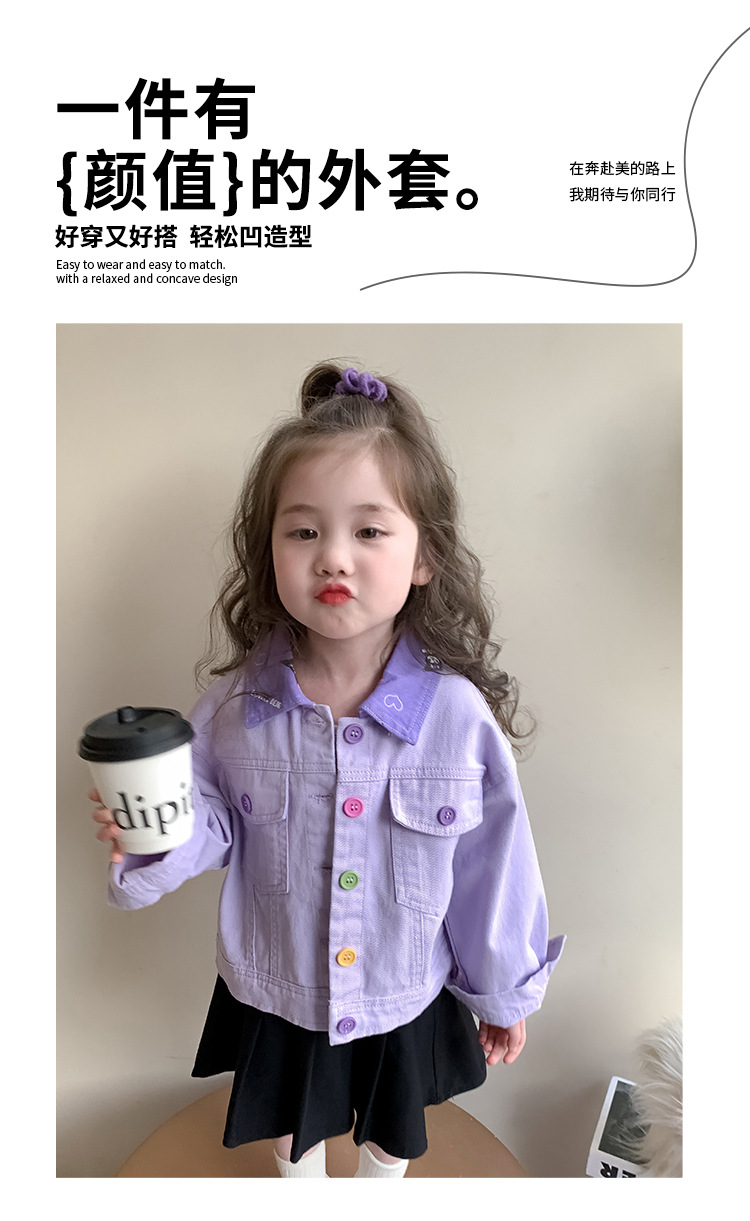 Kulomi Girl's 데님 코트 2025 봄 아기 컬러 버튼 재킷 짧은 캐주얼 탑 소녀의 봄 원피스스토어 가기