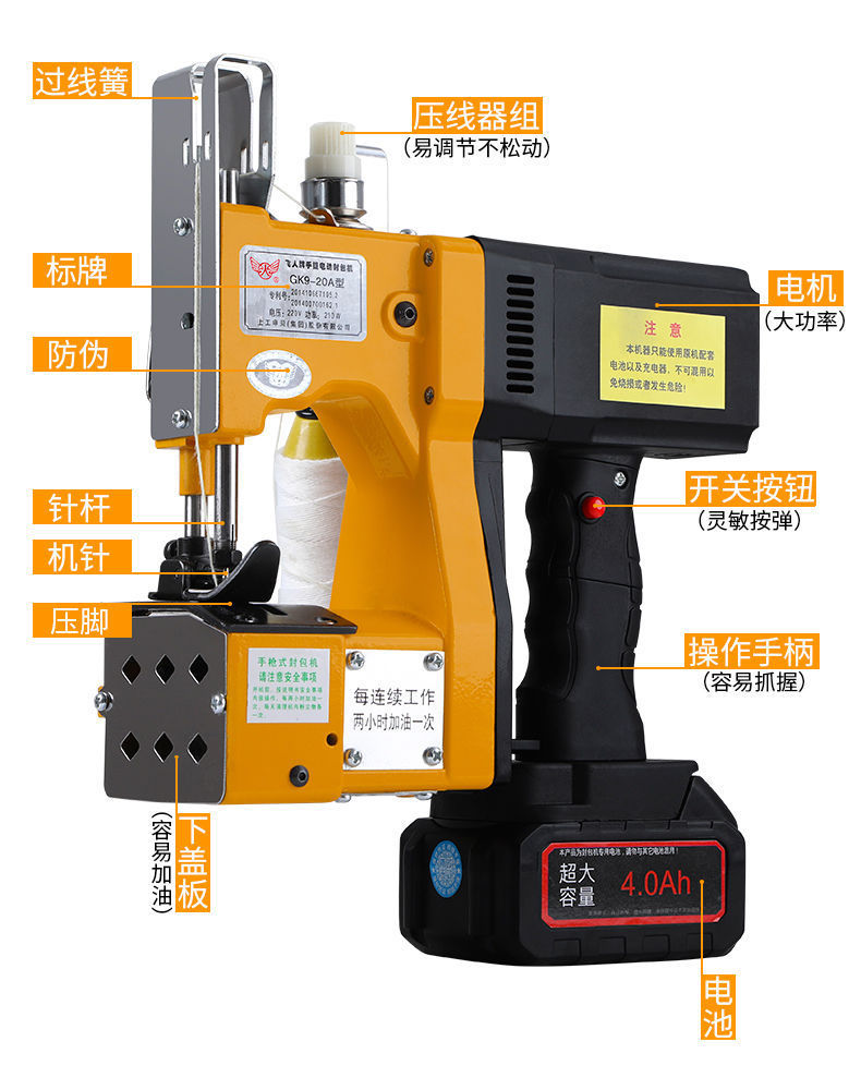 비행 무선 포장 기계 휴대용 작은 포장 기계 밀봉 기계 짠 가방 쌀 가방 전기 재봉틀 충전