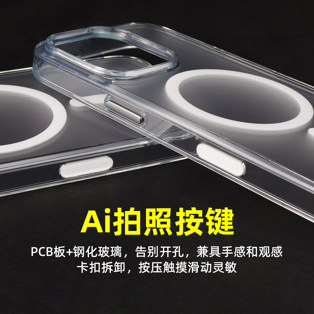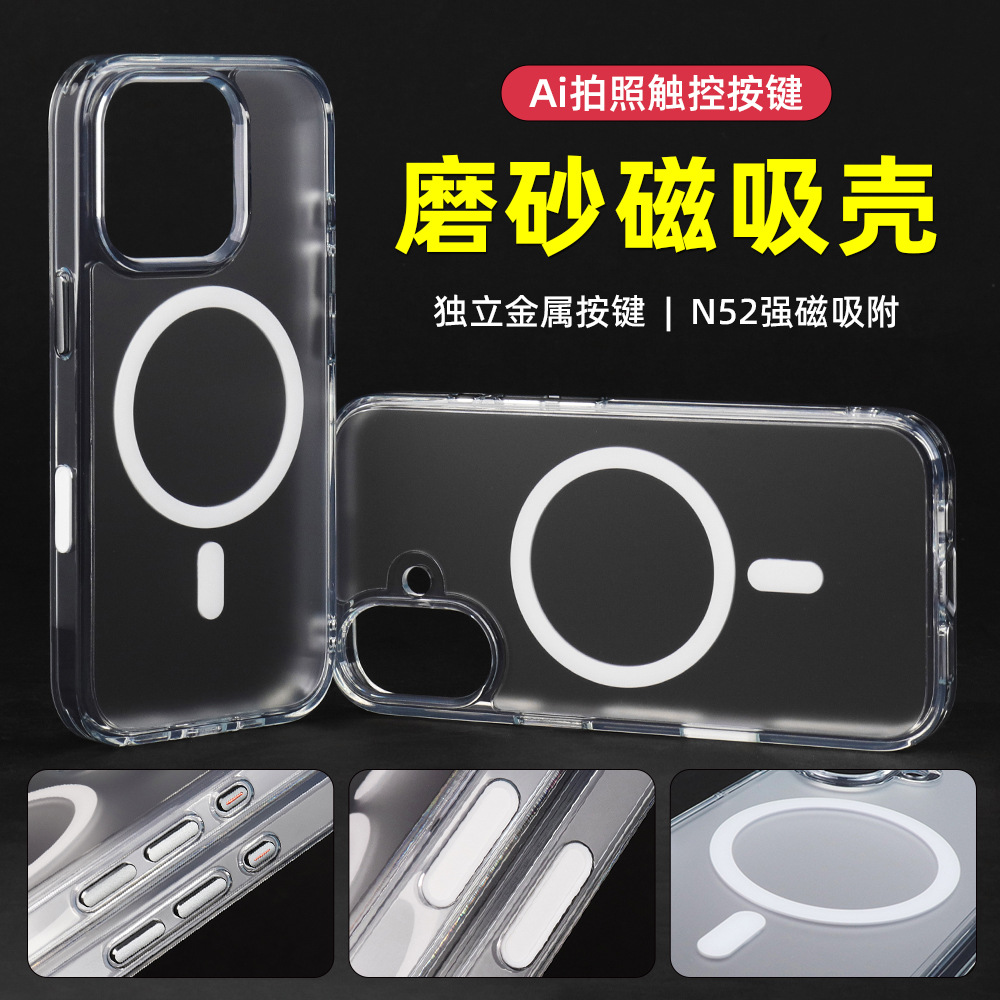 애플 폰 케이스 용 Ai 카메라 버튼 16promax 반 투과성 프로스트 자기 흡입 케이스 스마트 터치 보호 커버