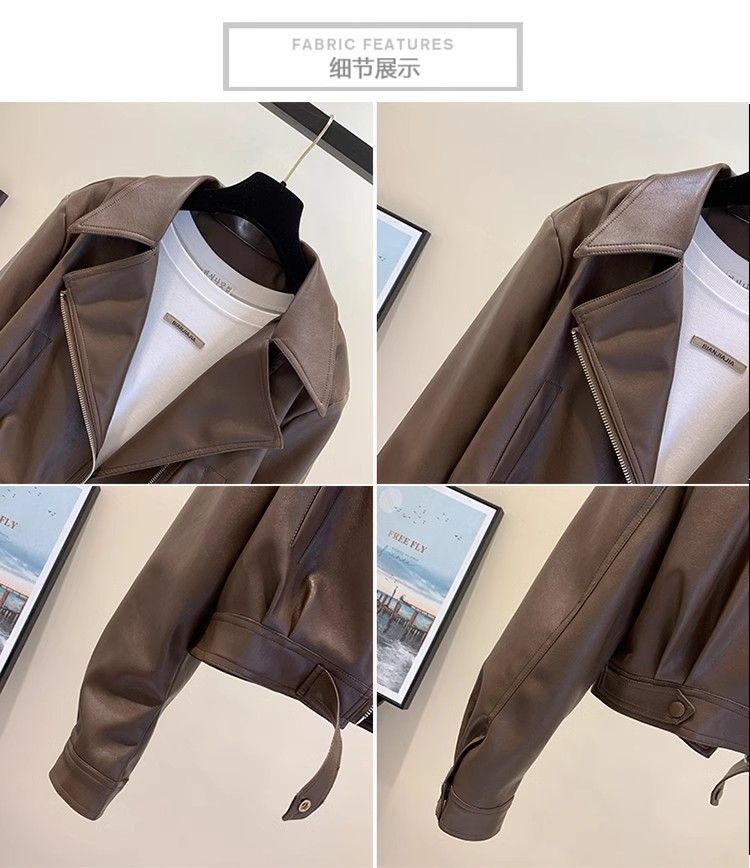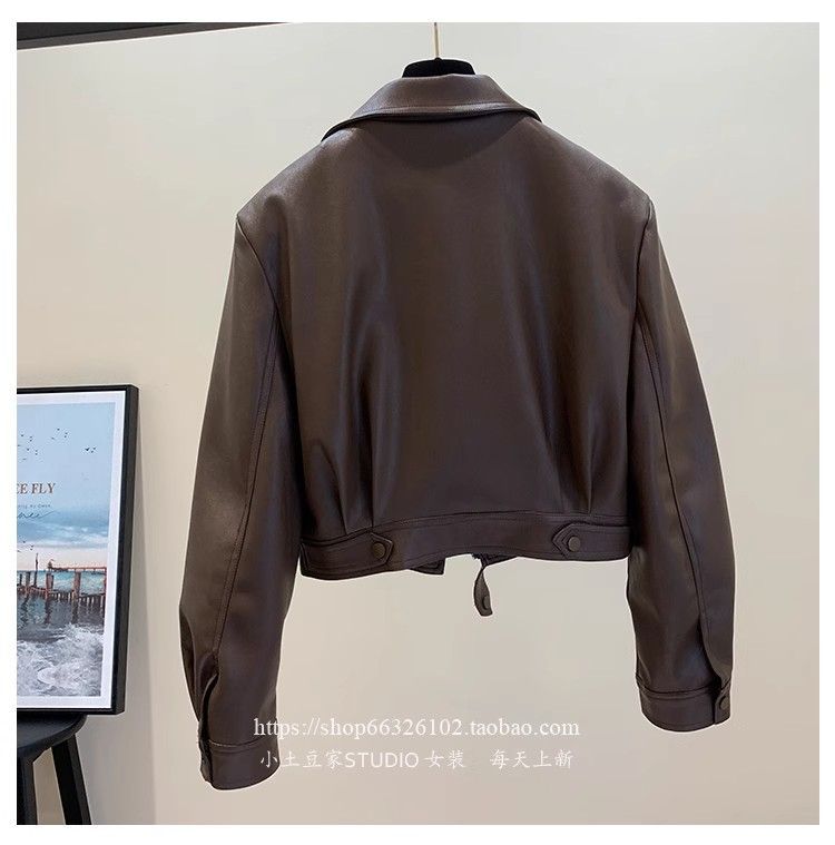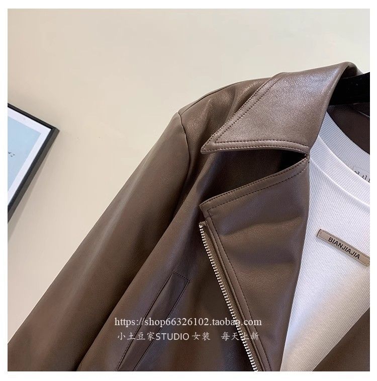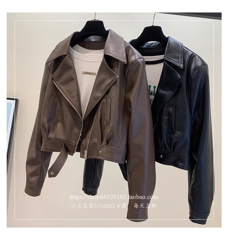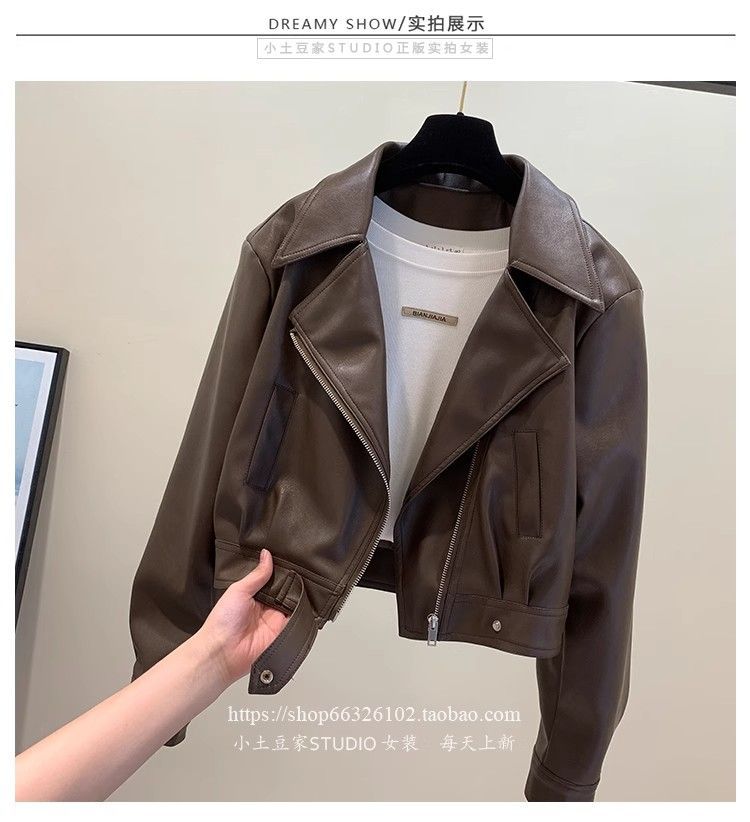 여성용 숏 가죽 자켓 2025 봄 가을 패션 슬림핏 가죽 자켓 우아한 라펠 소형 다용도 자켓 상의스토어 가기