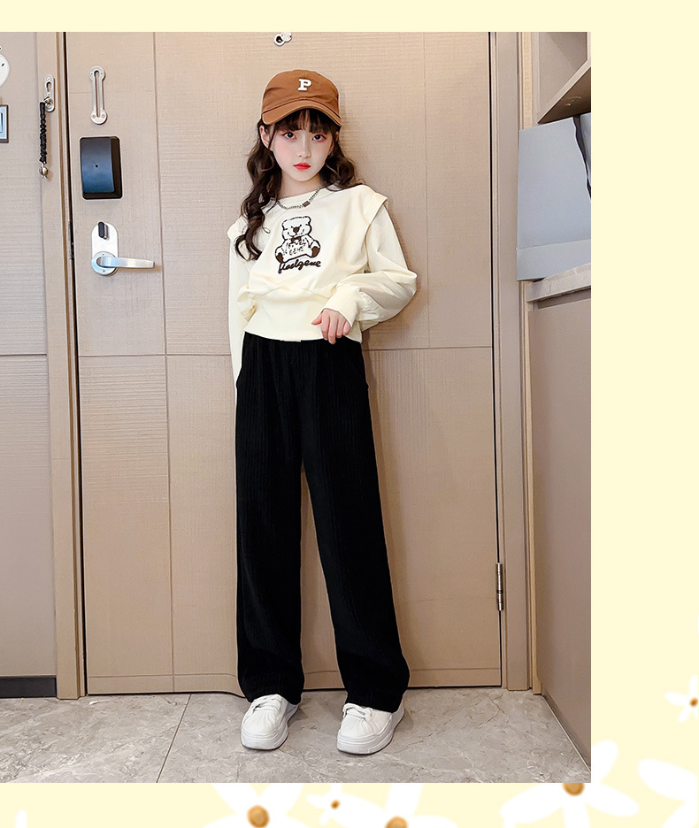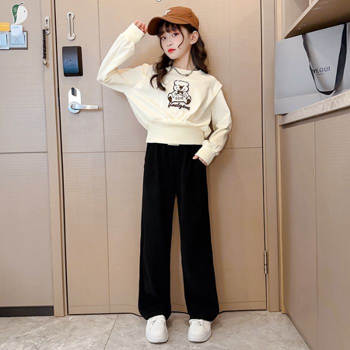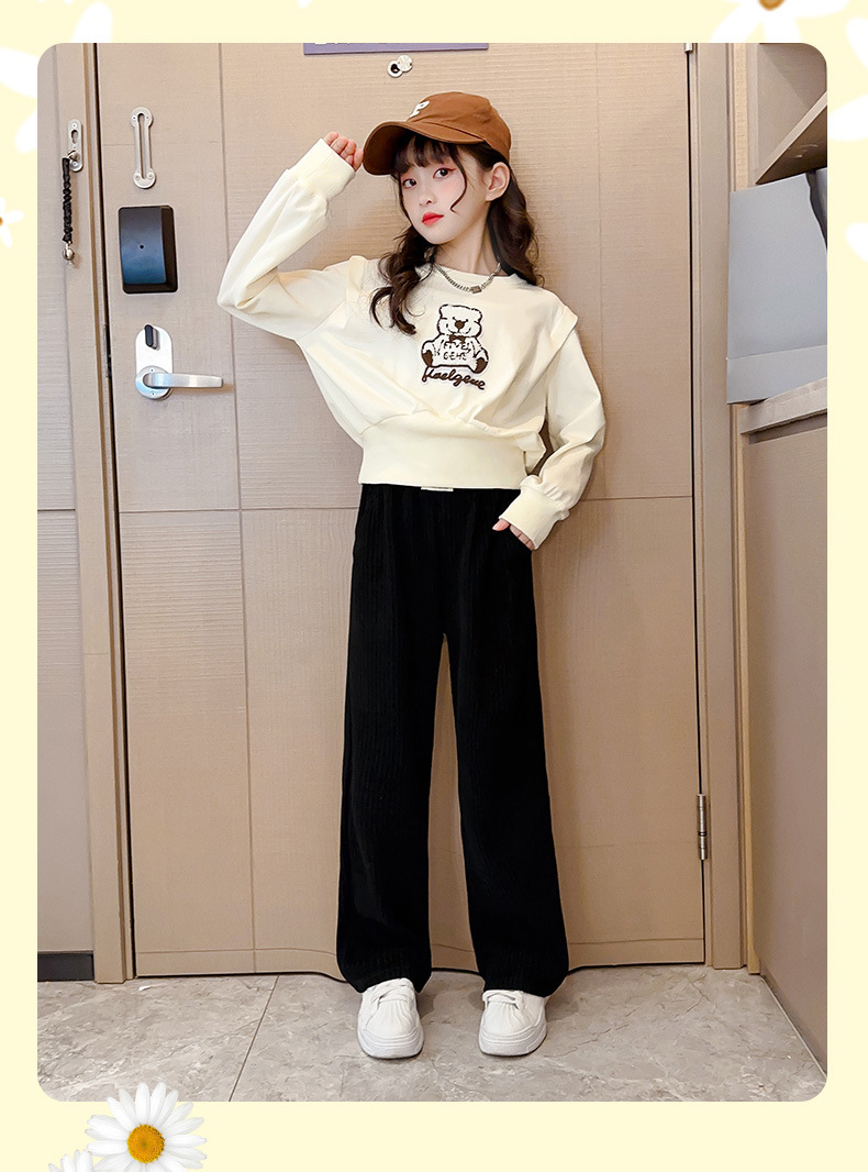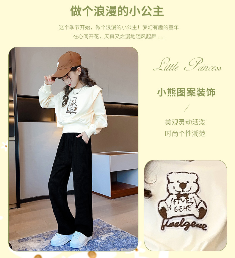 원래 스티커 곰 소녀의 세트 서양식 인터넷 어린이 가을 새로운 어린이 귀여운 아기 소녀 만화 투피스 세트