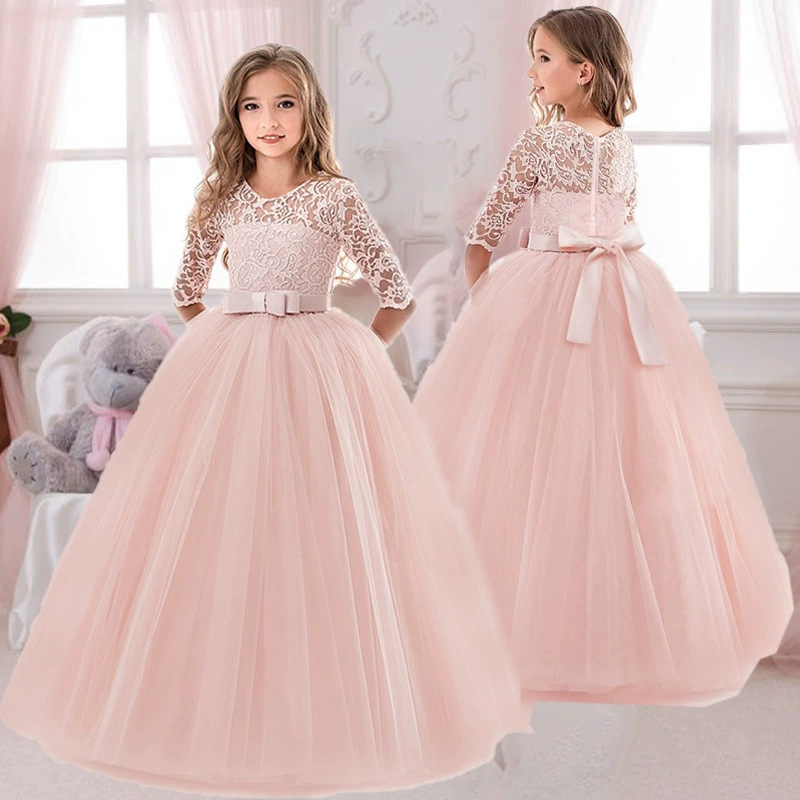 여아 리본 퍼프 스커트 플라워 걸 웨딩드레스 아동 드레스 공주 7부 소매 원피스스토어 가기