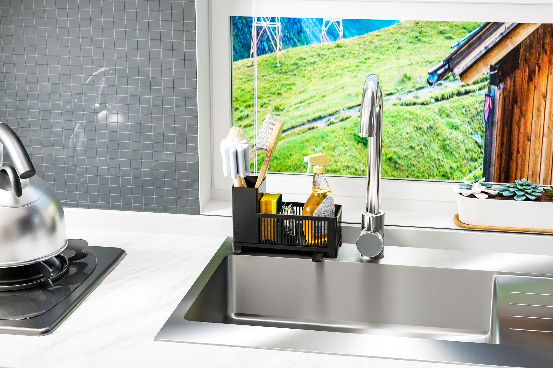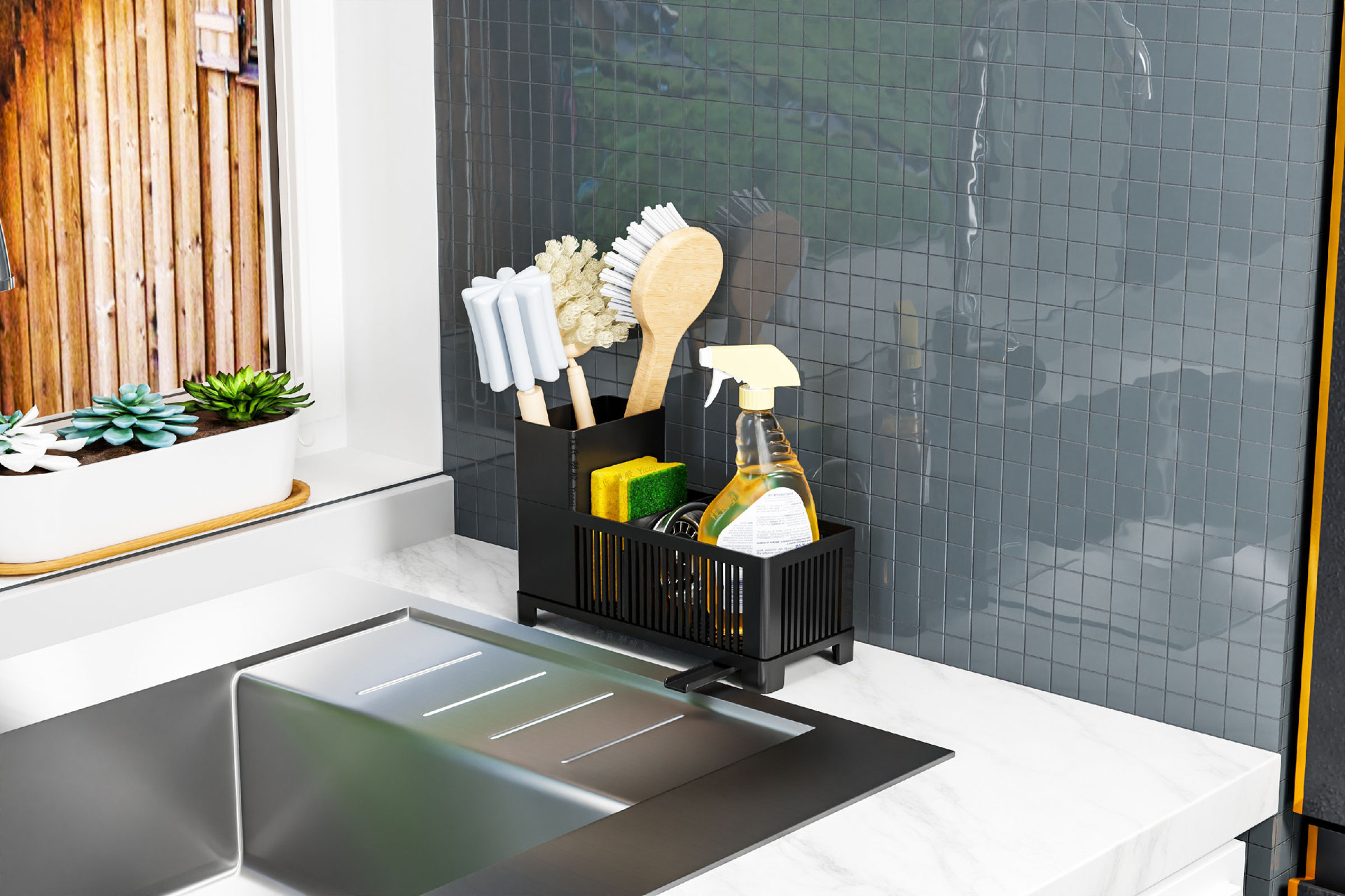 주방 스폰지 브러시 접시 보관 랙 아티팩트 펀치없는 수영장 청소 용품 배수 바구니 보관 랙