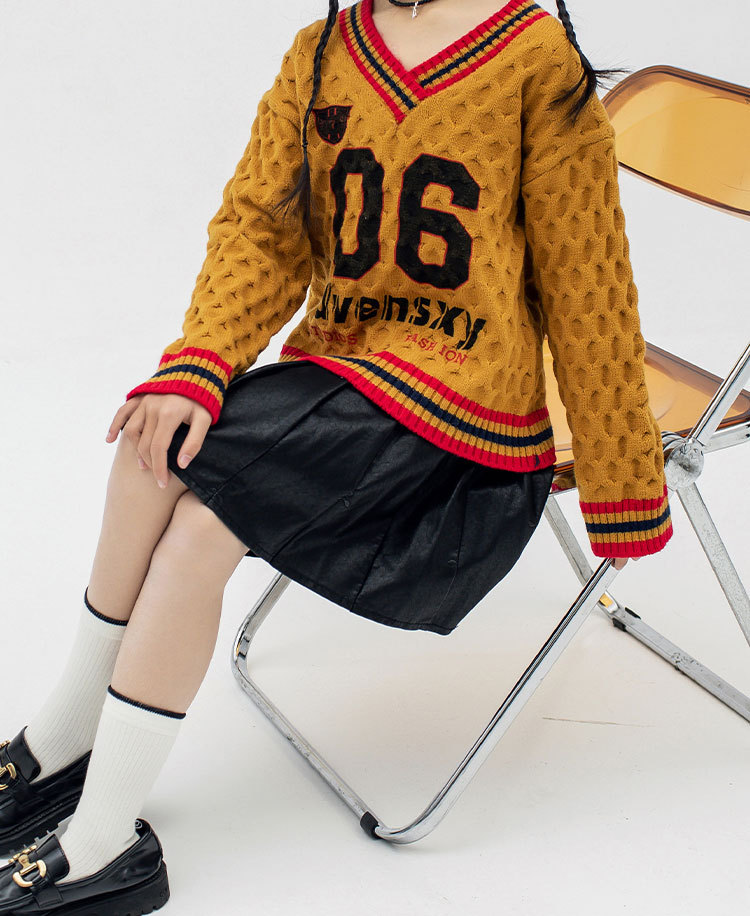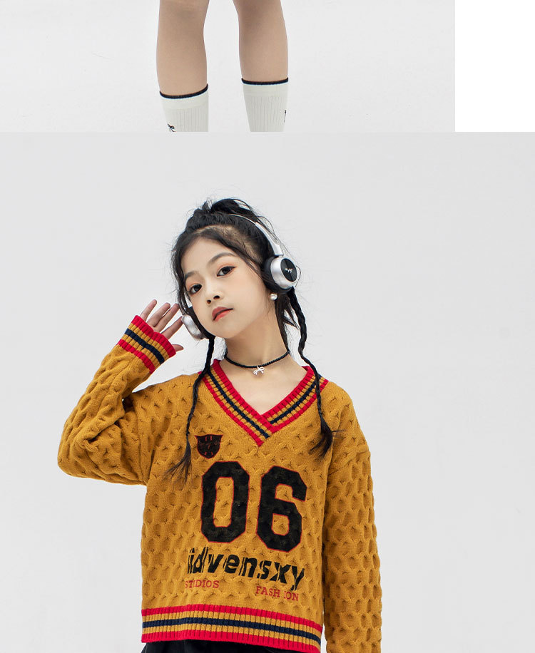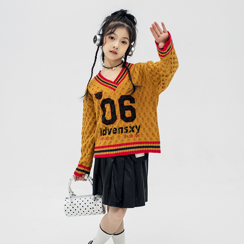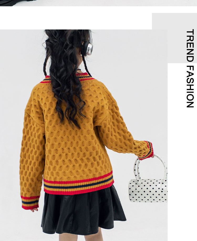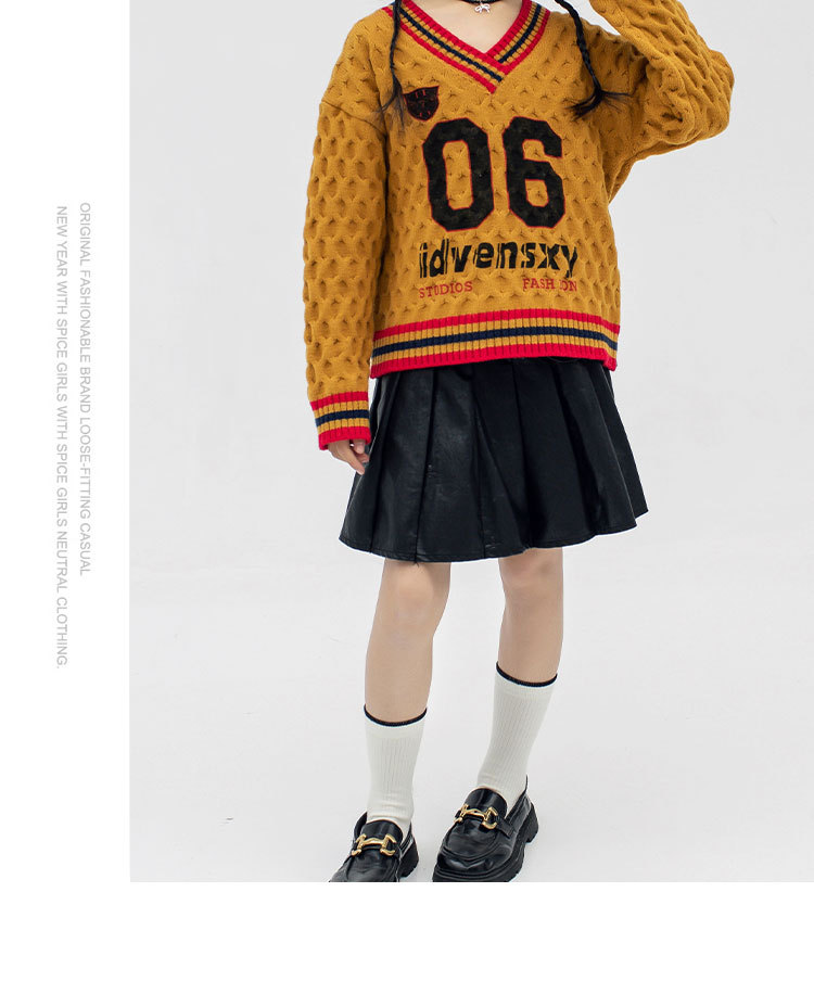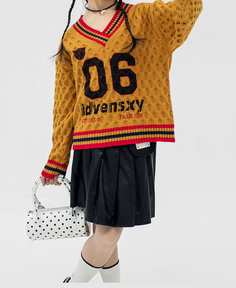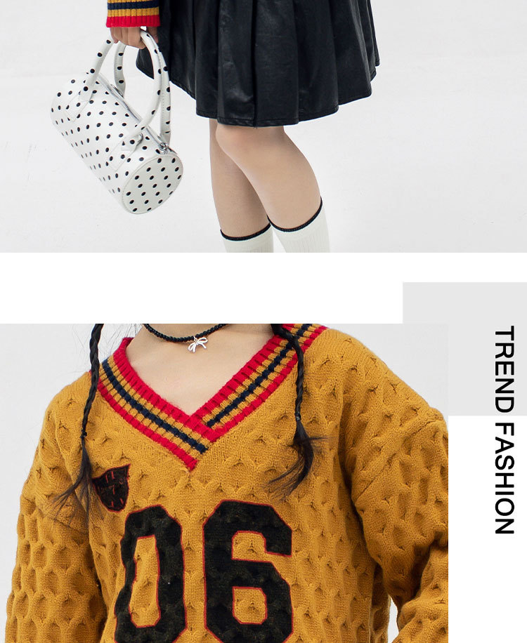 게으른 스타일 아우터 레트로 V 넥 콘트라스트 컬러 스웨터 여성의 가을과 겨울 미국 패션 디자인 뜨거운 소녀 어깨 스웨터스토어 가기