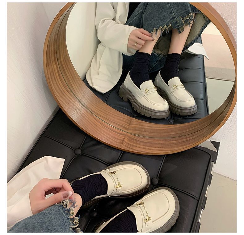 영국 스타일의 작은 가죽 신발 여성의 2025 새로운 봄 여성 신발 두꺼운 밑창 봄과 가을 싱글 레이어 신발 슬립 온 로퍼스토어 가기