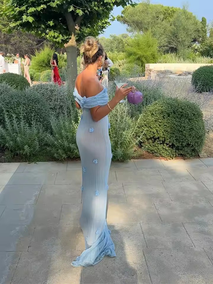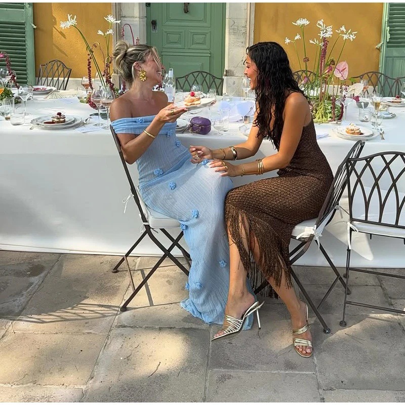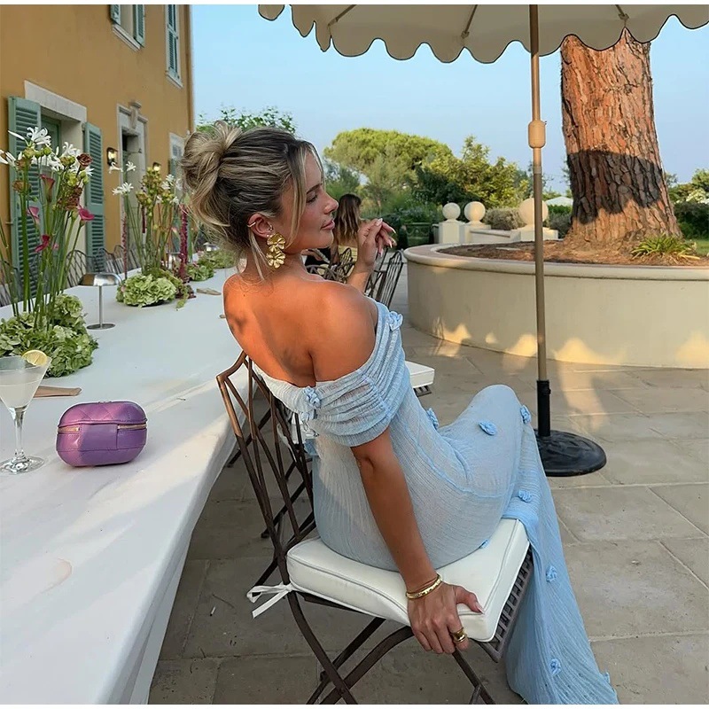 2025 국경을 넘는 유럽과 미국 여성의 새로운 휴일 스타일 튜브 탑 원피스 디자인 센스 슬림 핏 꽃 어깨 원피스스토어 가기