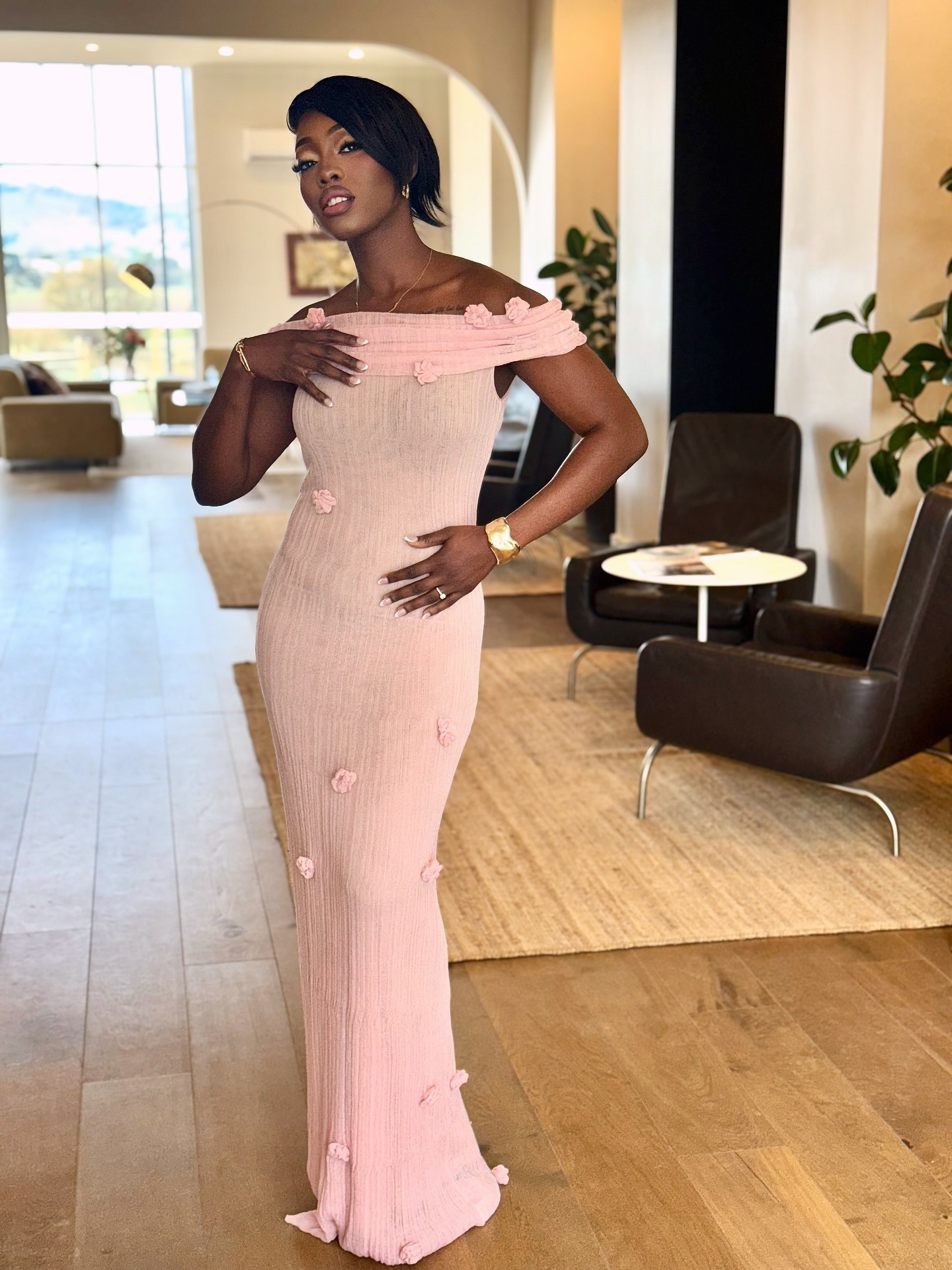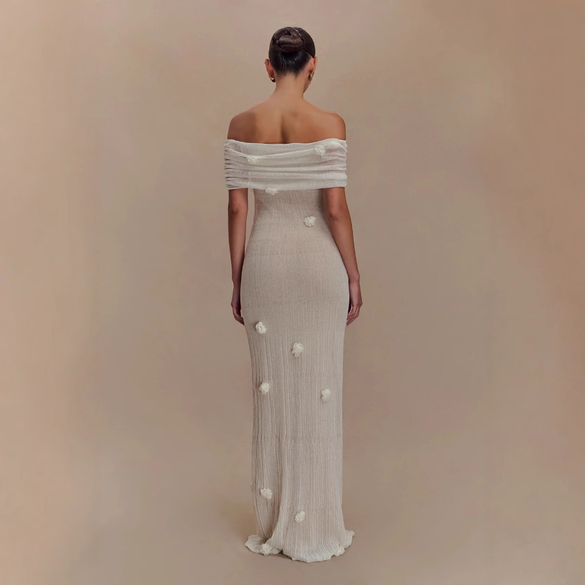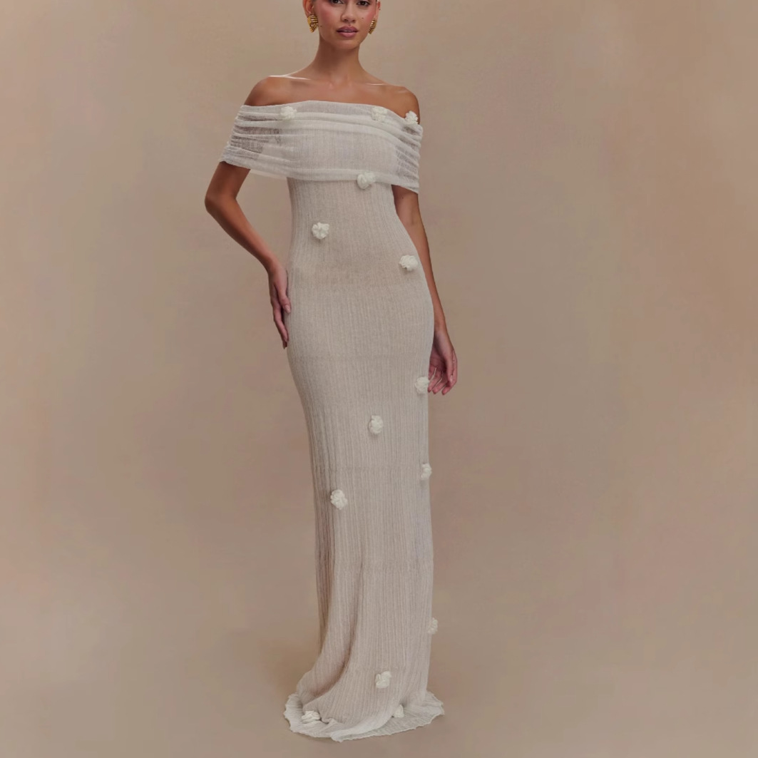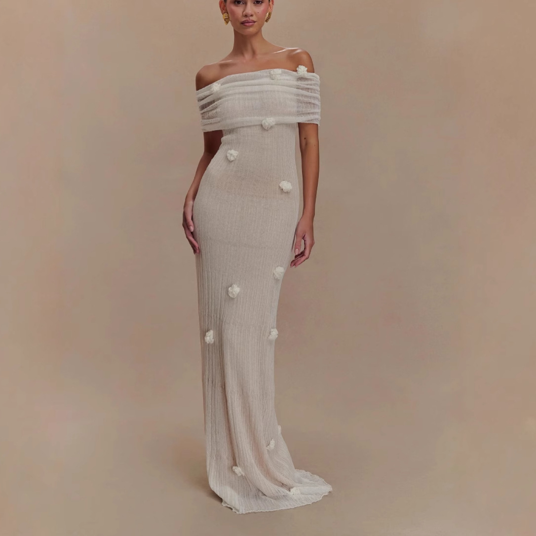 2025 국경을 넘는 유럽과 미국 여성의 새로운 휴일 스타일 튜브 탑 원피스 디자인 센스 슬림 핏 꽃 어깨 원피스