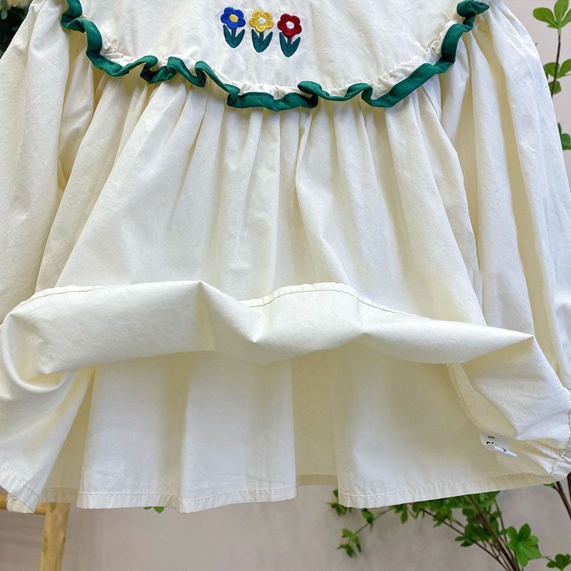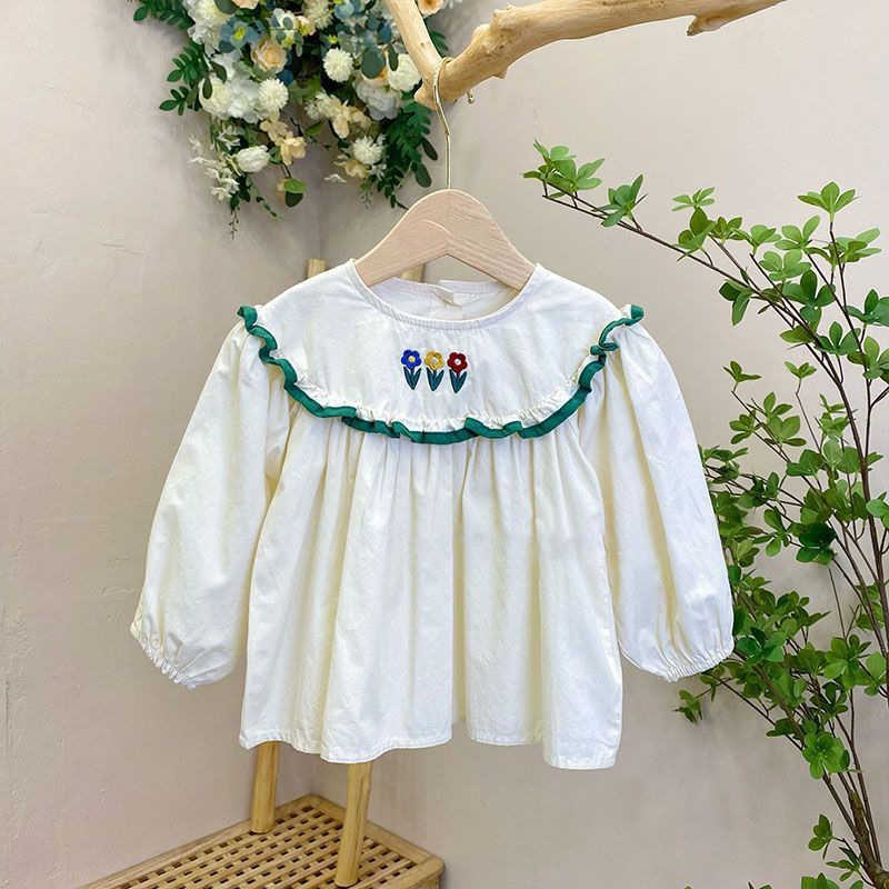소녀의 봄과 가을 옷 셔츠 아기의 서양식 어린이 맞춤형 유행 브랜드 한국 스타일 꽃 자수 레이스 셔츠 셔츠스토어 가기