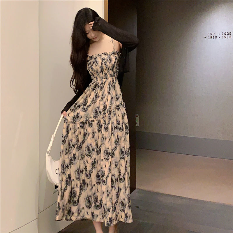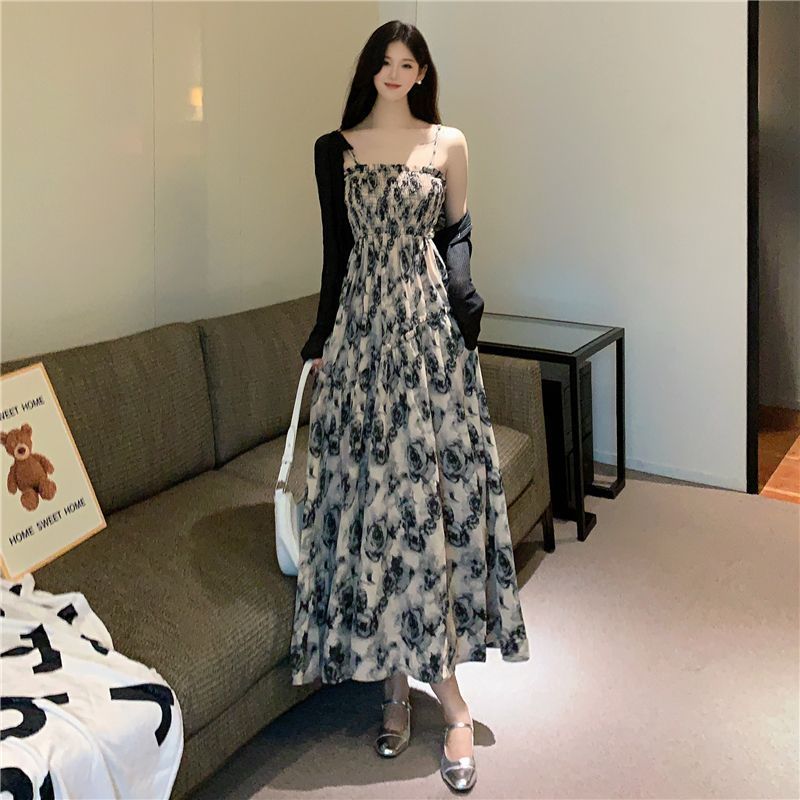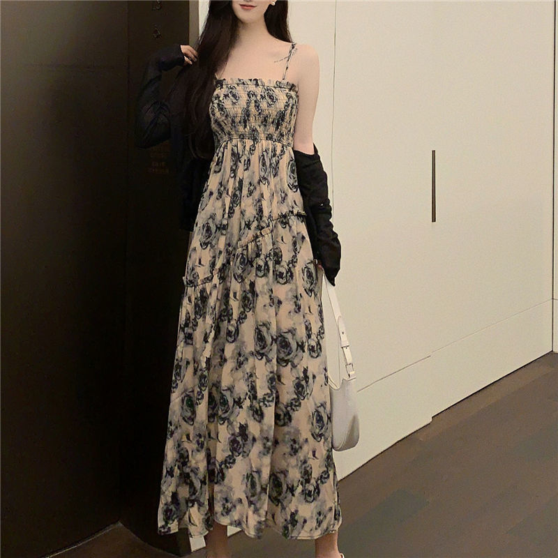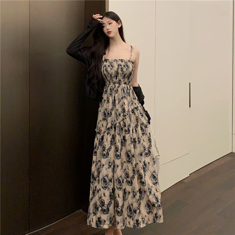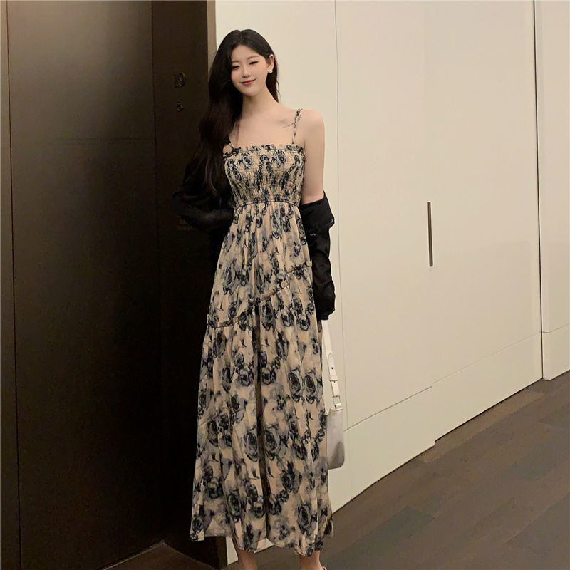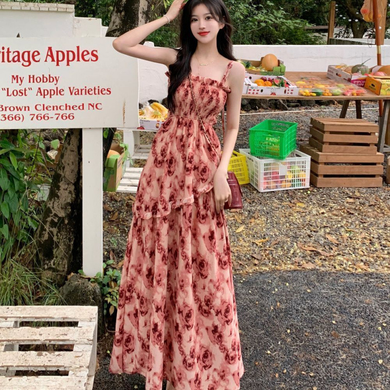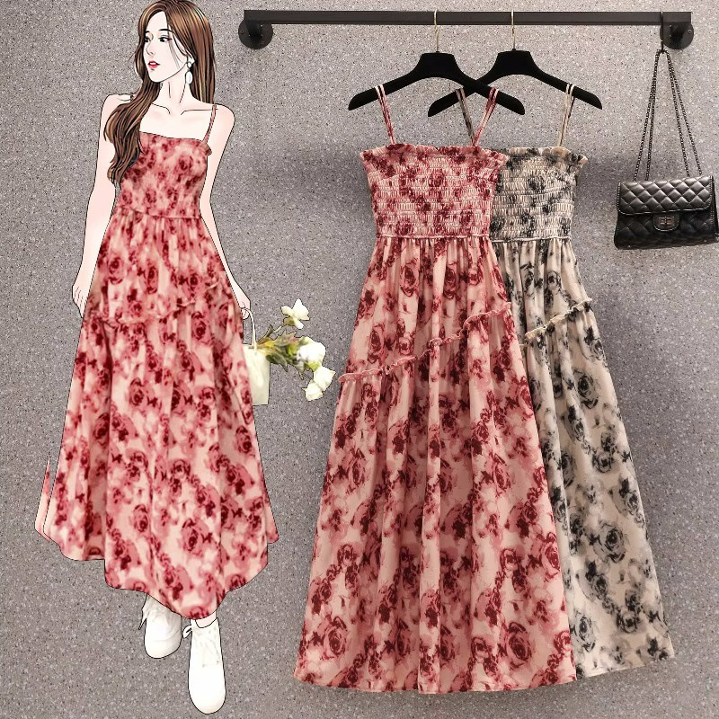 플러스 사이즈 프랑스 스타일 꽃 슬링 원피스 오버 셔츠 뚱뚱한 슬리밍 스커트 여성의 2025 새로운 여름 긴 원피스스토어 가기