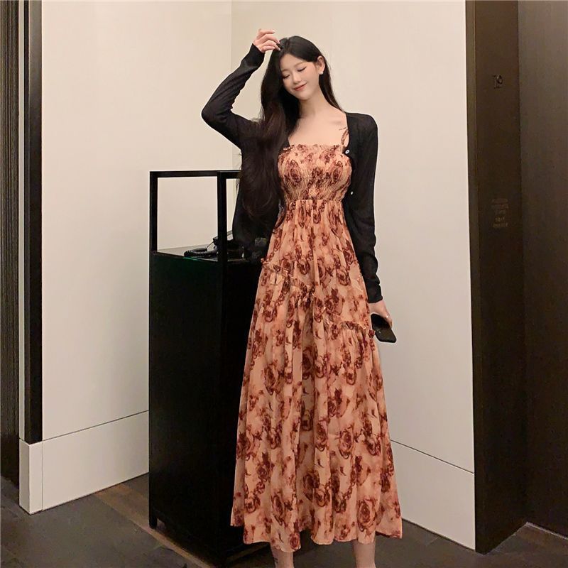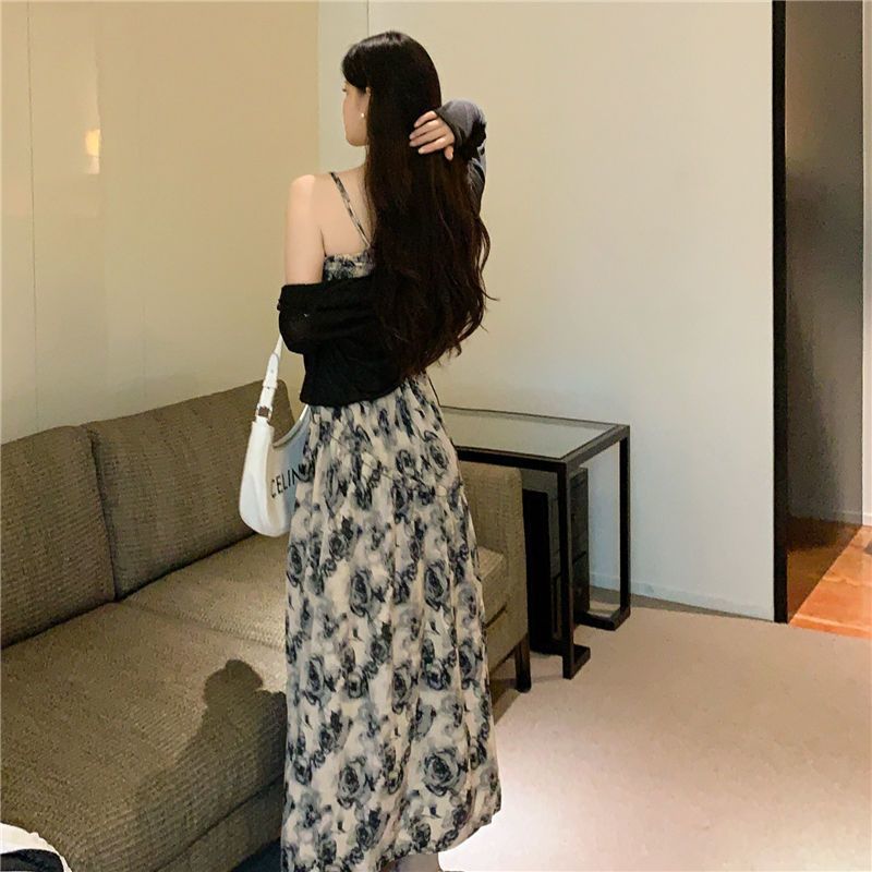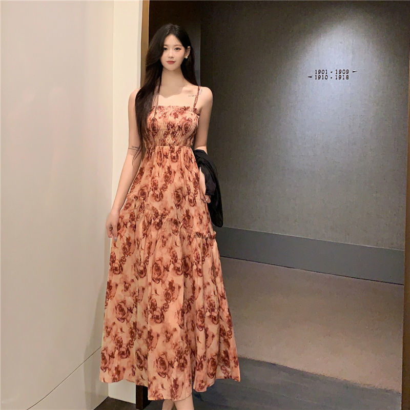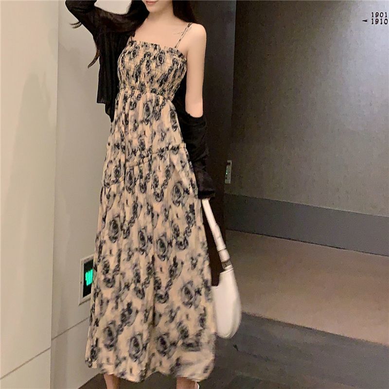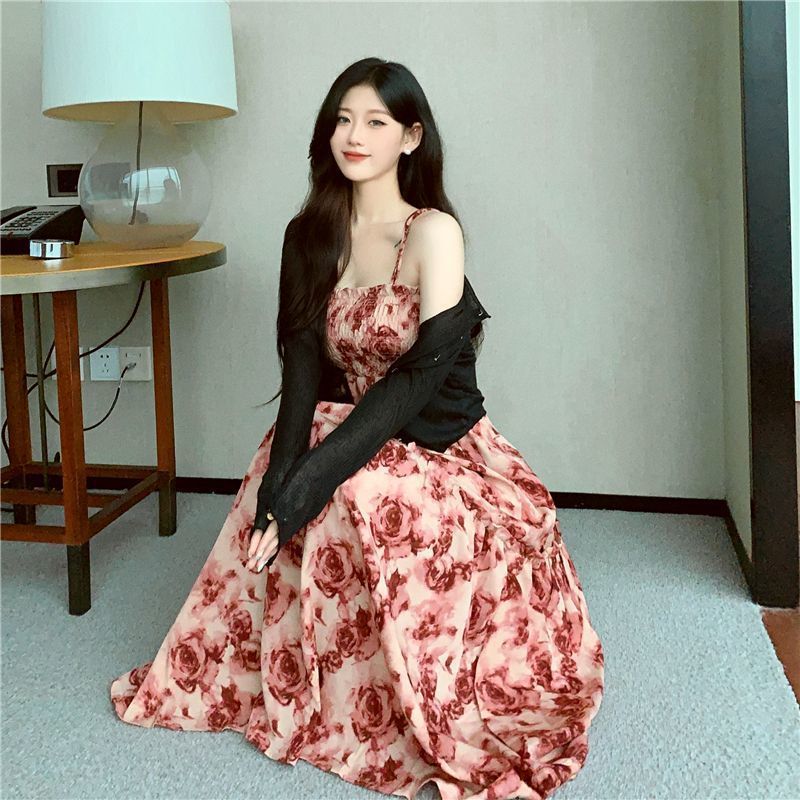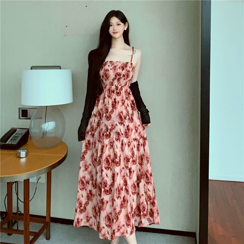 플러스 사이즈 프랑스 스타일 꽃 슬링 원피스 오버 셔츠 뚱뚱한 슬리밍 스커트 여성의 2025 새로운 여름 긴 원피스스토어 가기