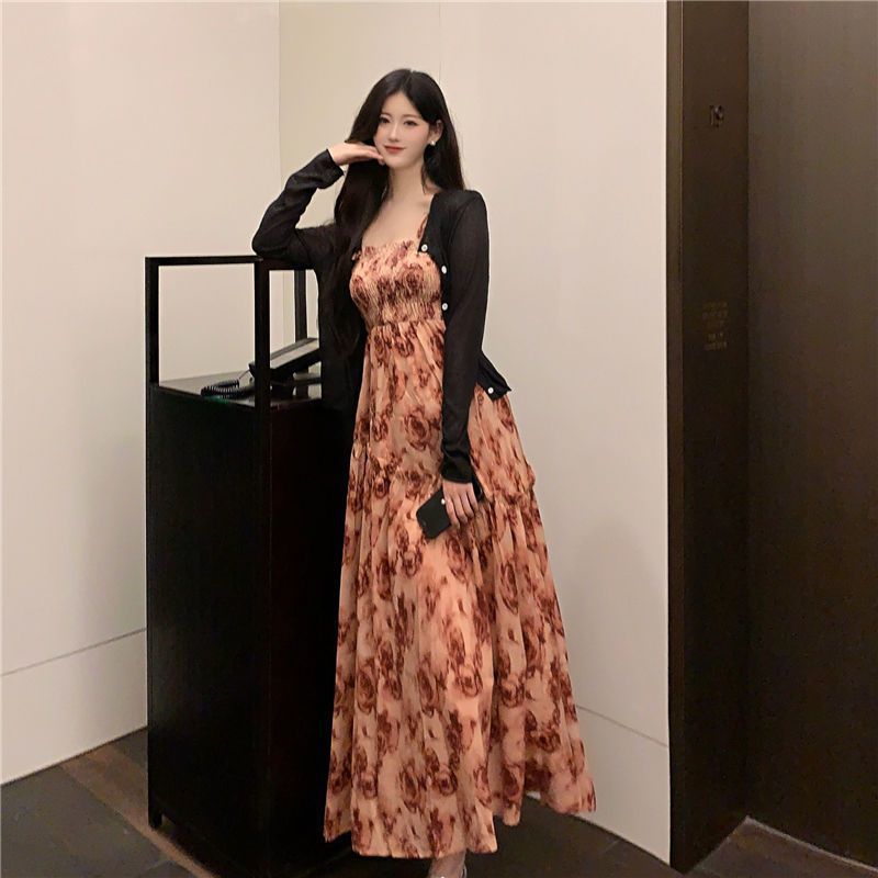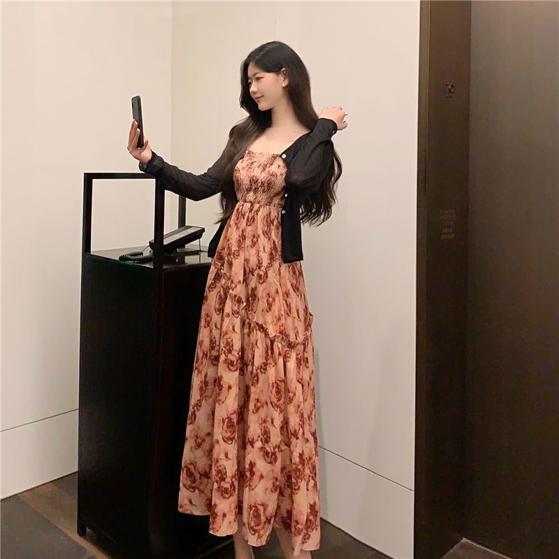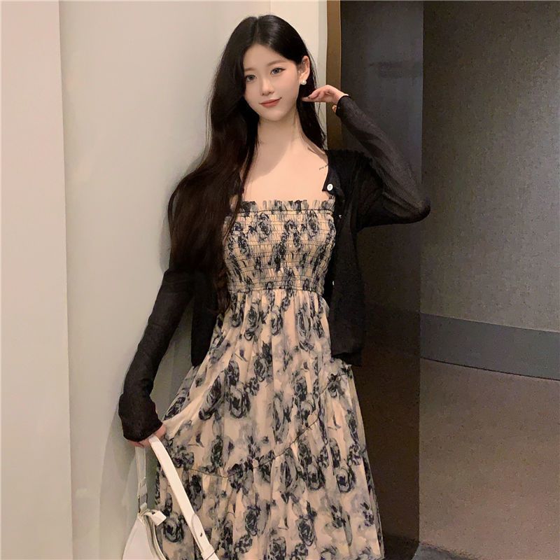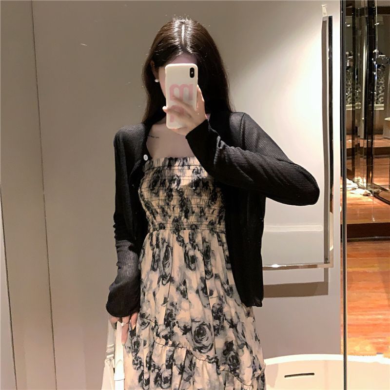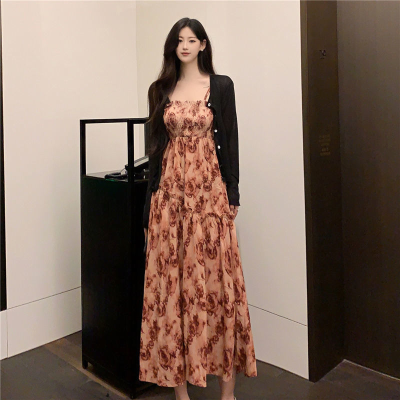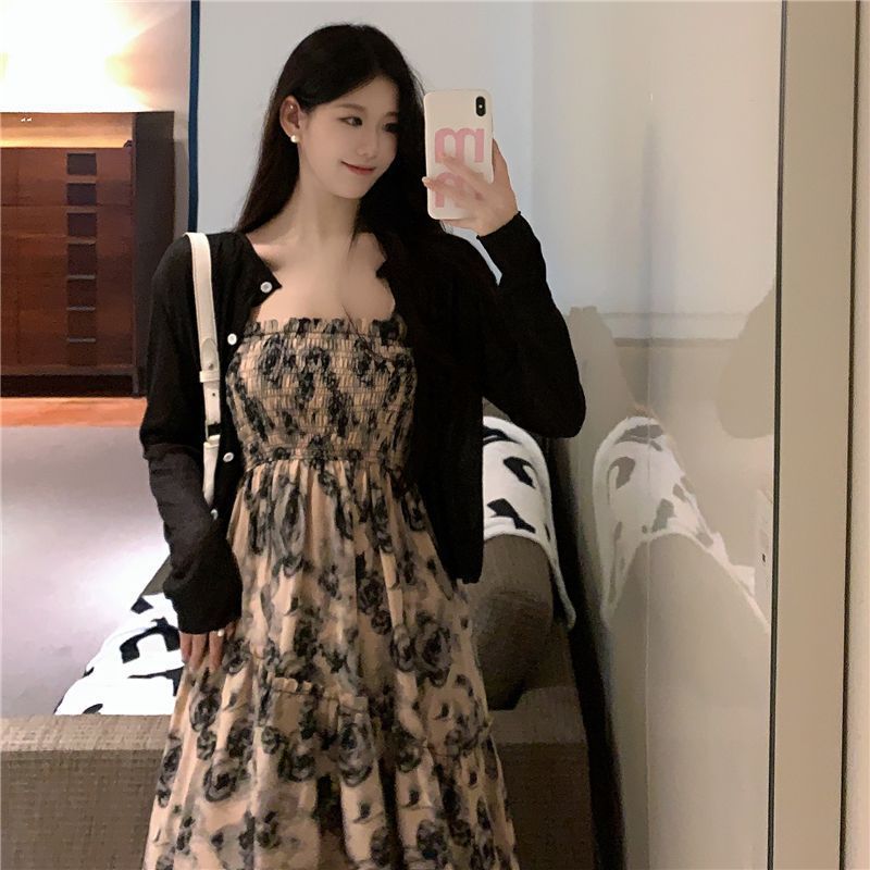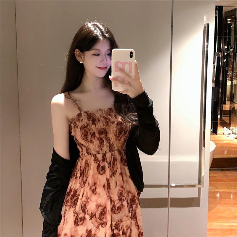 플러스 사이즈 프랑스 스타일 꽃 슬링 원피스 오버 셔츠 뚱뚱한 슬리밍 스커트 여성의 2025 새로운 여름 긴 원피스스토어 가기