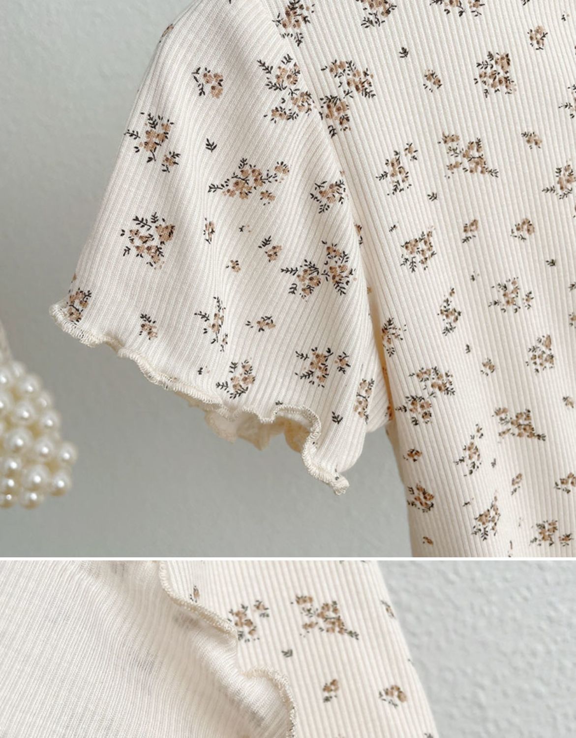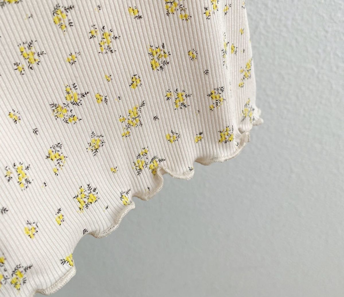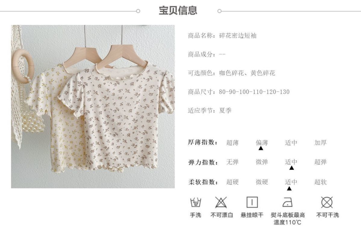 여자 여름 티셔츠 어린이 새 한국 스타일 작은 꽃 서양식 아기 귀 테두리 반소매 아이스 실크 얇은 탑