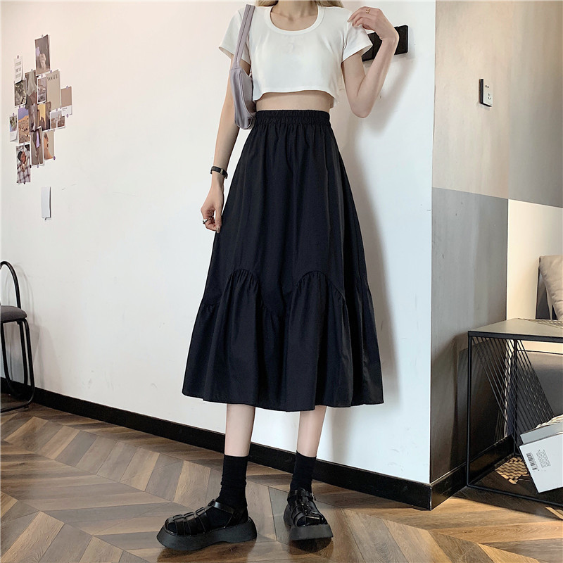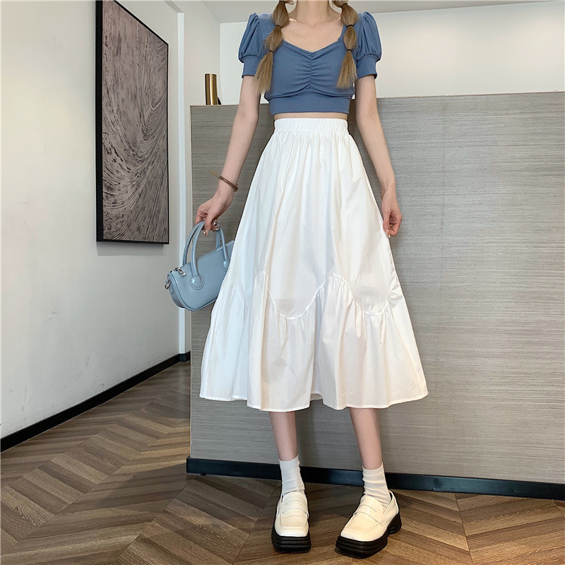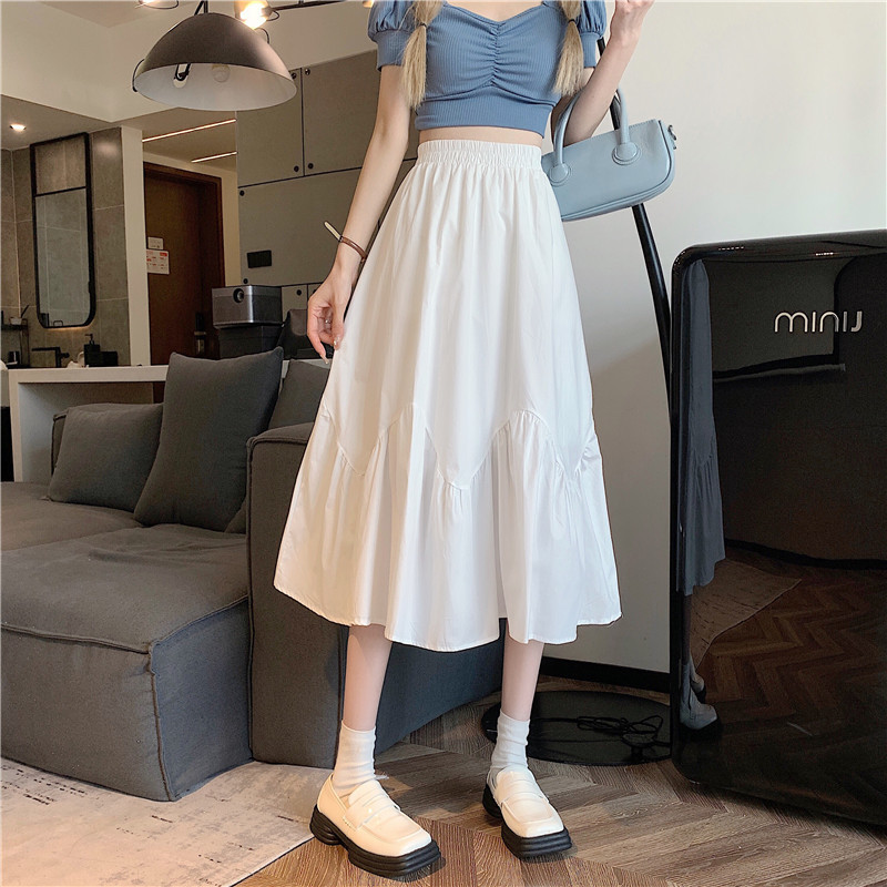 여름 2025 새로운 높은 허리 느슨한 슬리밍 우산 스커트 순수한 욕망 스타일 스커트 화이트 A-라인 여성용 미드 길이 스커트
