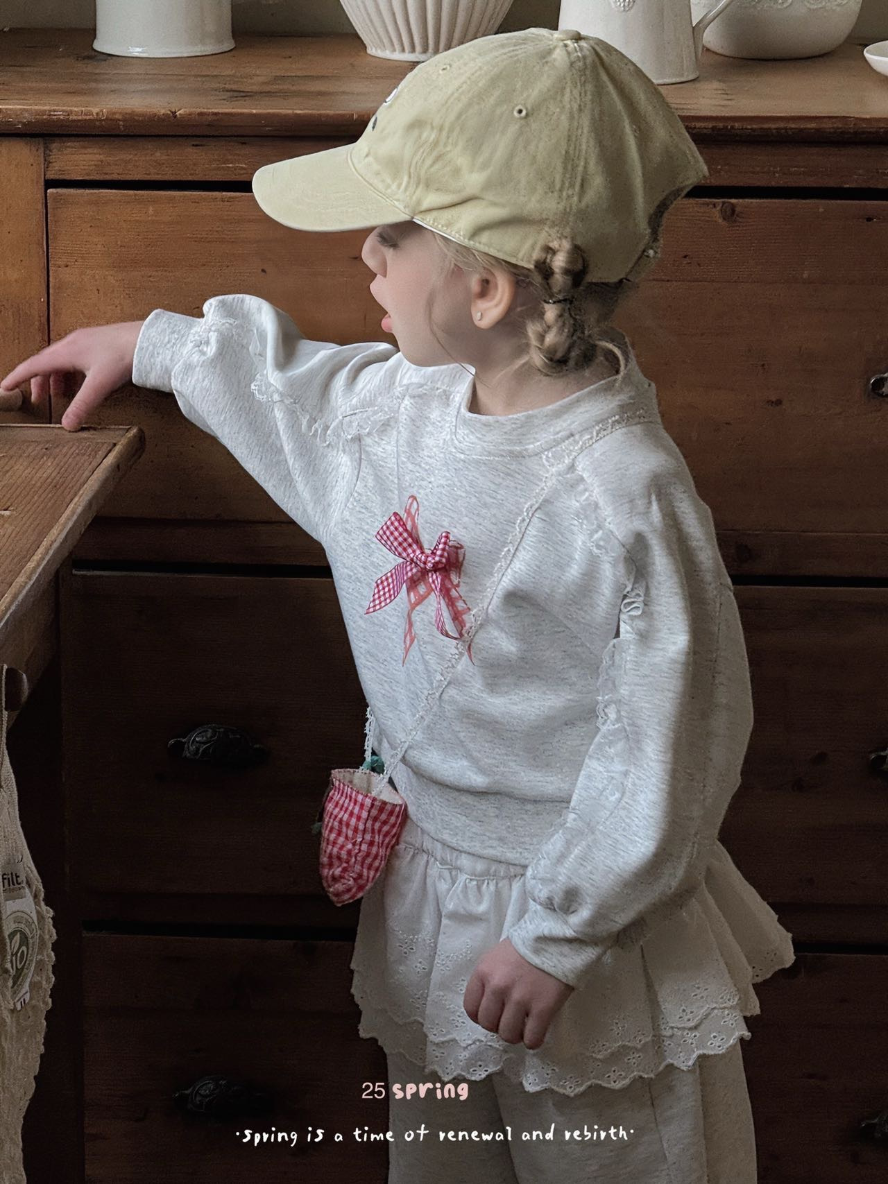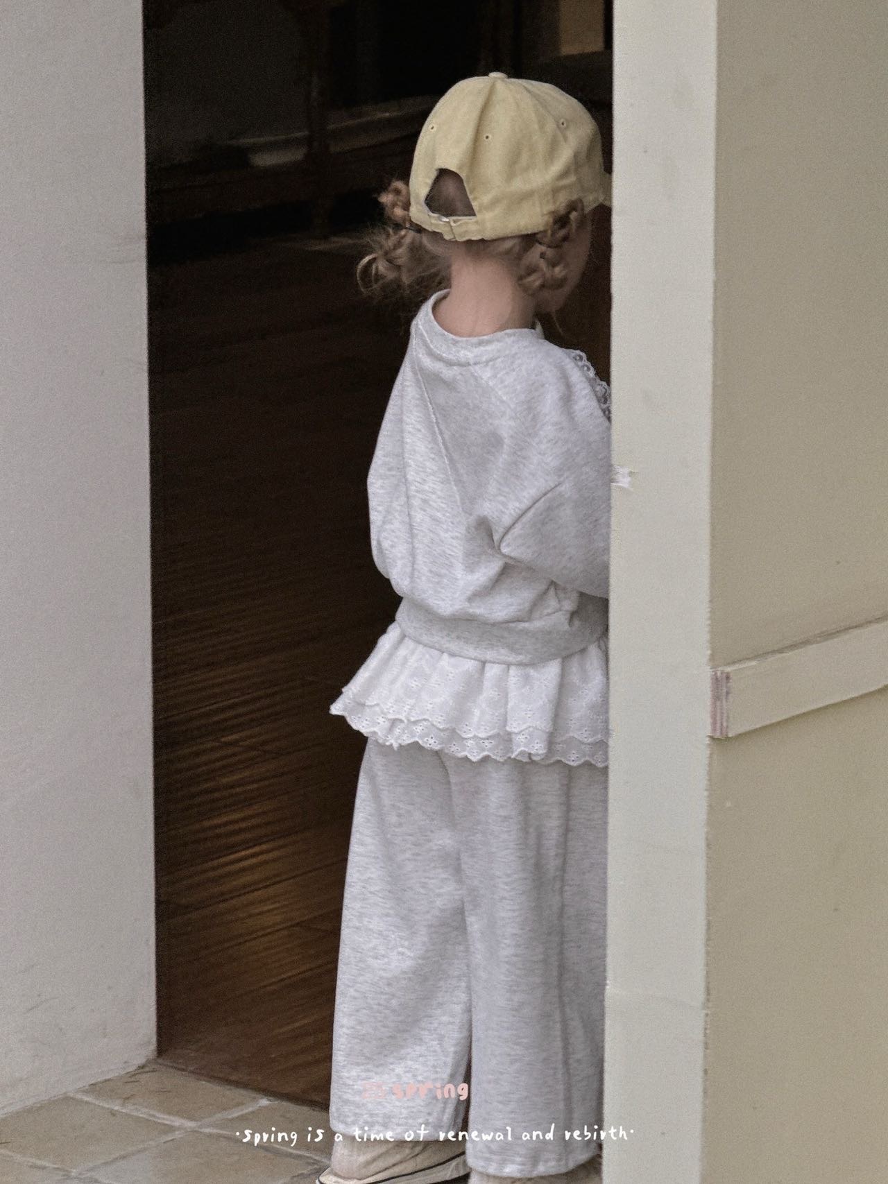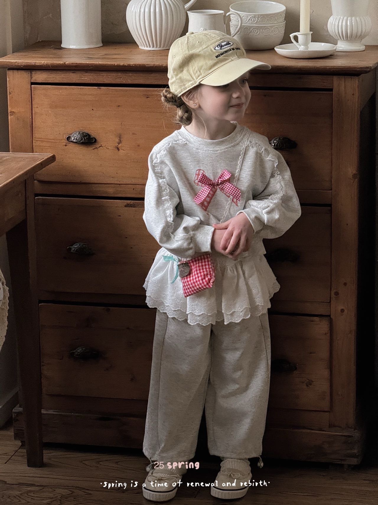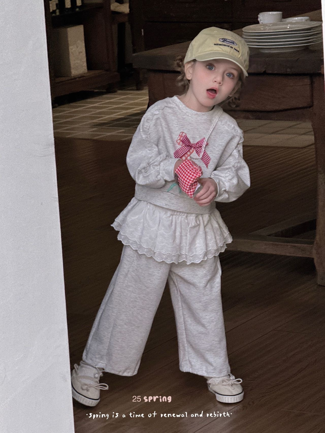 2025 봄 새 소녀 세트 활 스웨터 바지 소녀 봄 레이스 P 커튼 세트스토어 가기