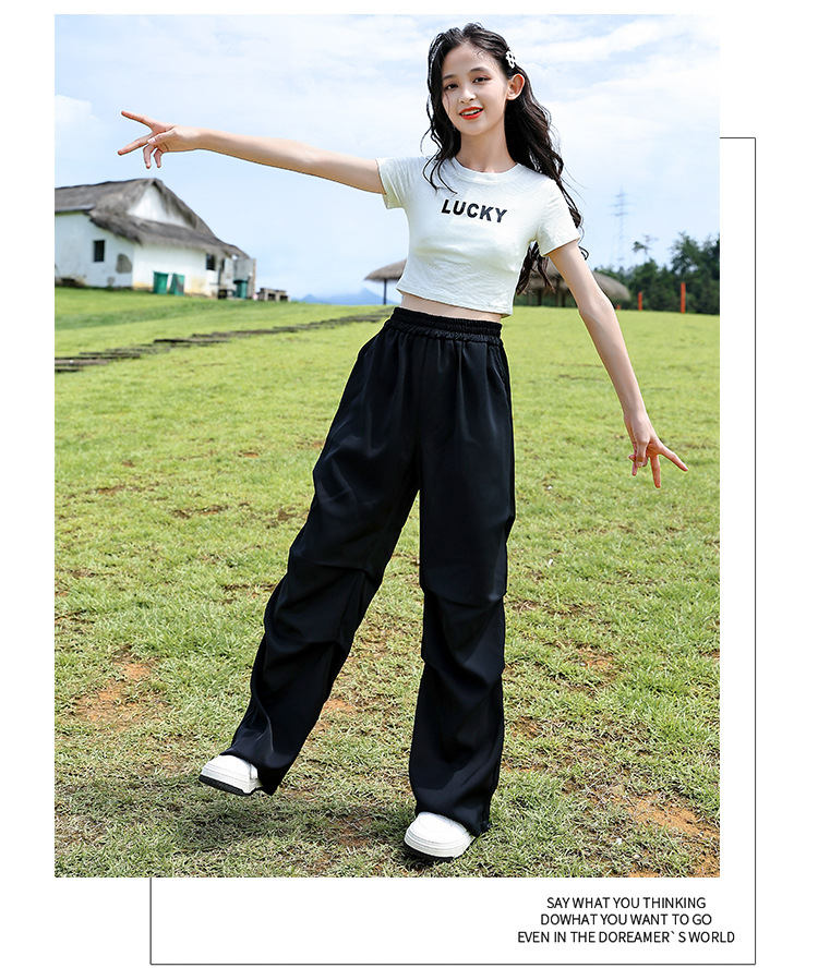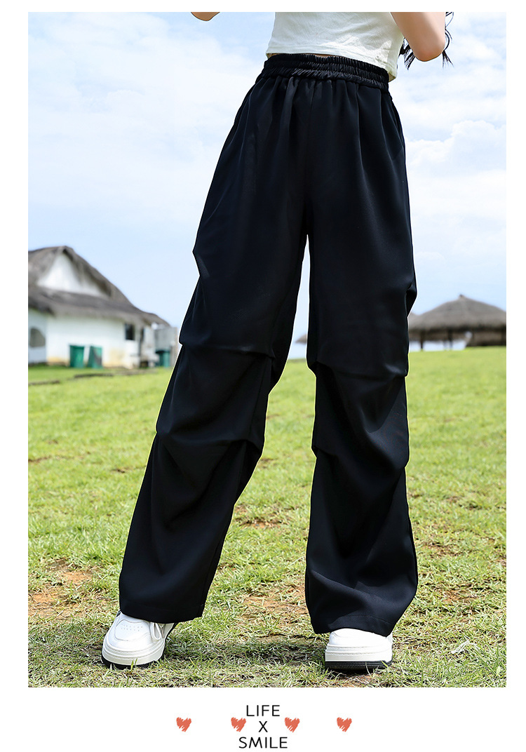 소녀의 봄과 여름 얇은 얼음 실크 낙하산 바지 캐주얼 바지 큰 어린이 2025 새로운 느슨한 긴 바지스토어 가기