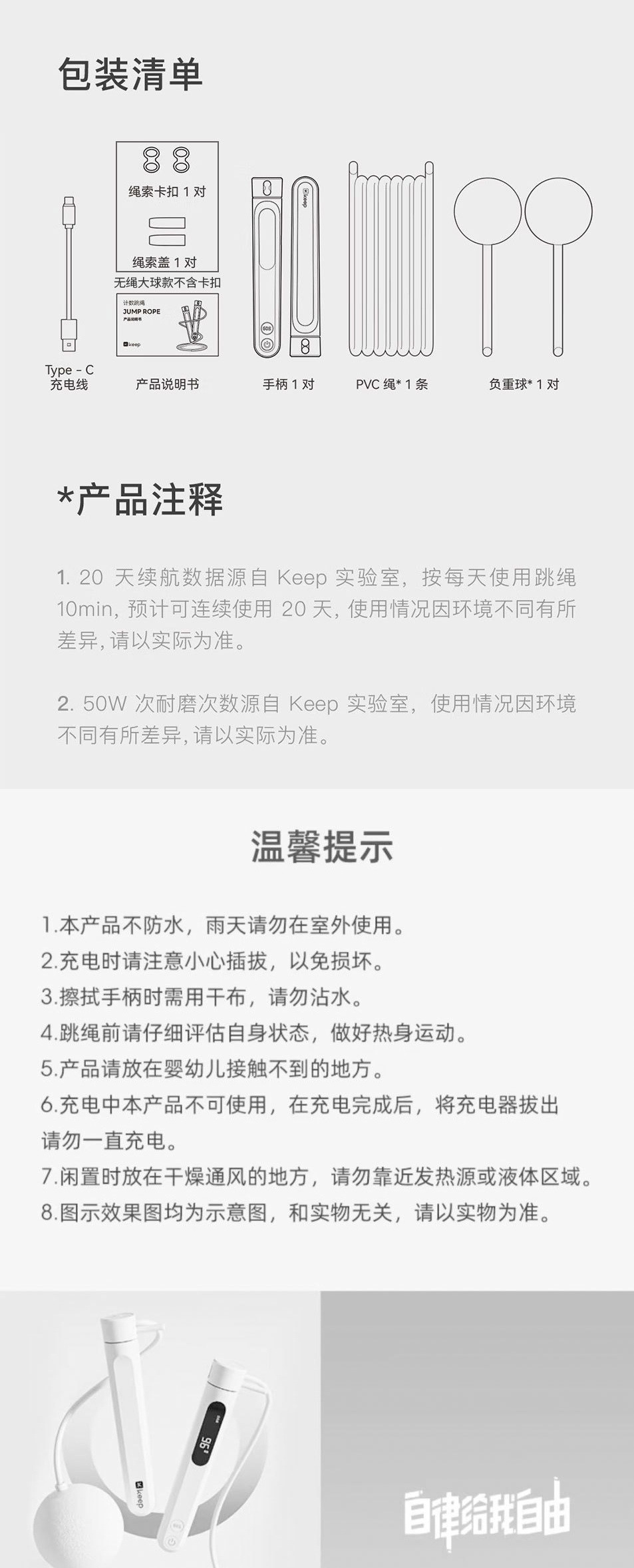 • 젤 화이트 [Type-C 스마트 충전 모델] - 충격 흡수 스포츠 슈트 [겸용 모델 + 10mm 줄넘기 패드]