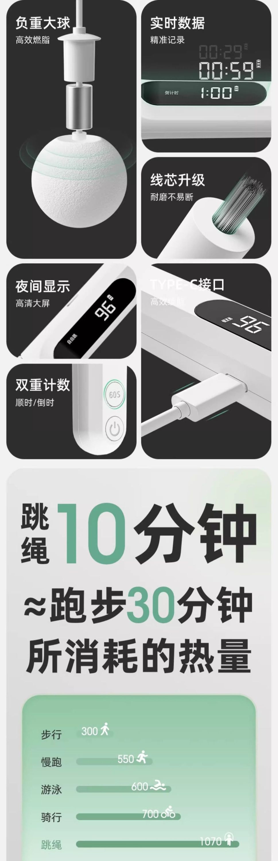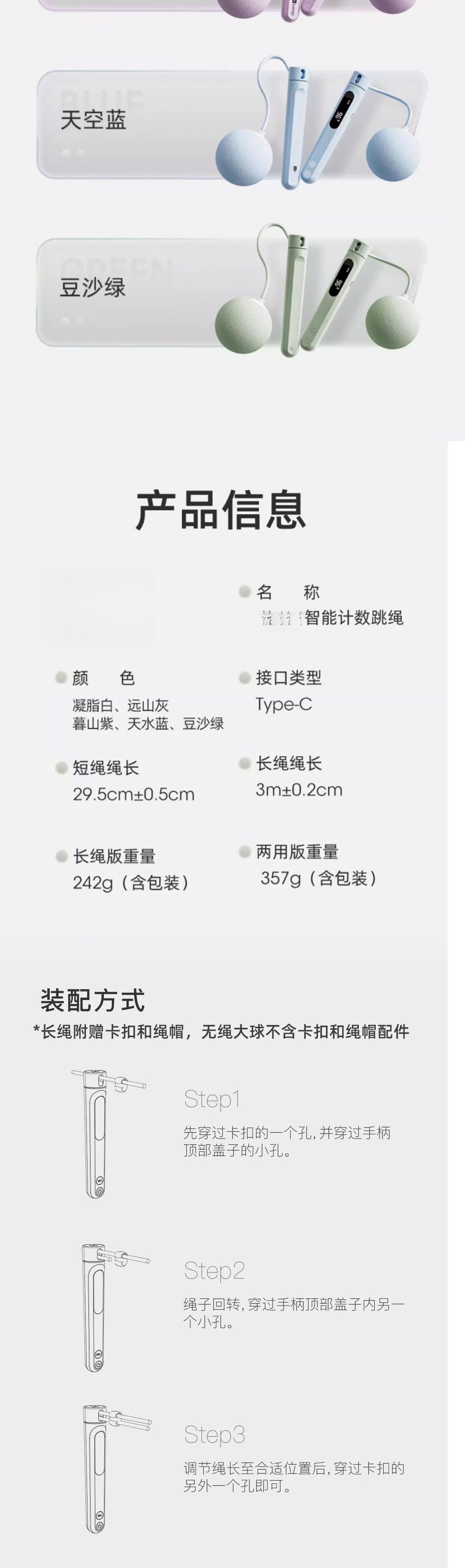 • Tianshui Blue [Type-C 스마트 충전 모델] - 이중 목적 모델 [큰 공 + 긴 로프] 땀 조합