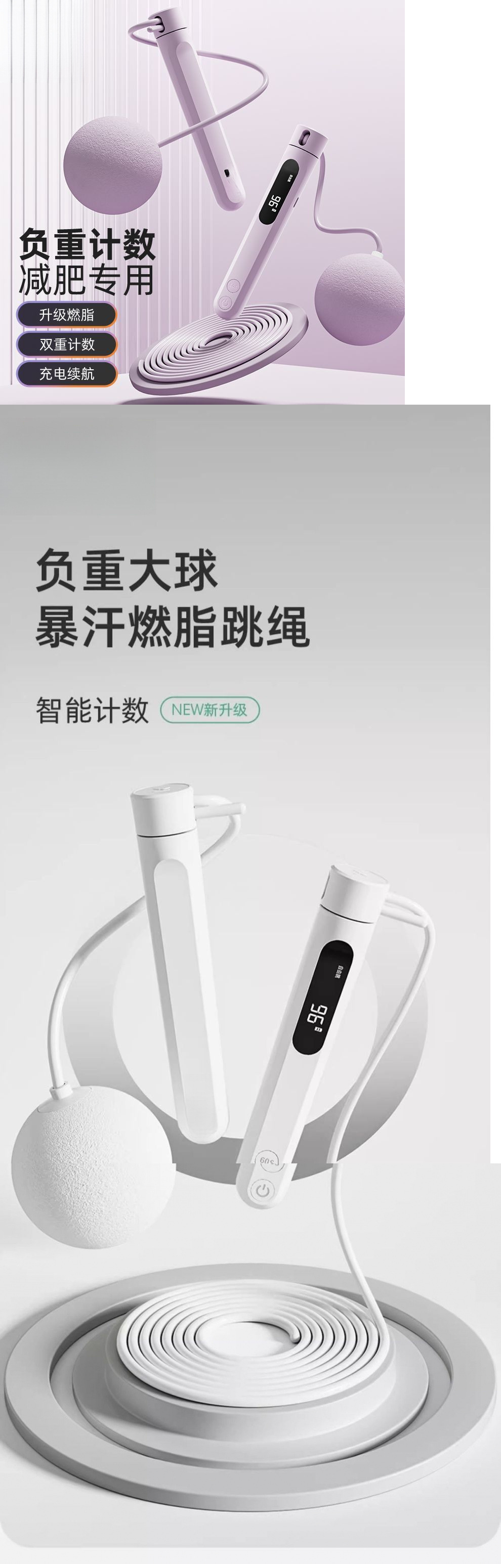 • 무산 퍼플 [Type-C 스마트 충전 모델] - 이중 목적 모델 [빅 볼 + 롱 로프] 땀 조합