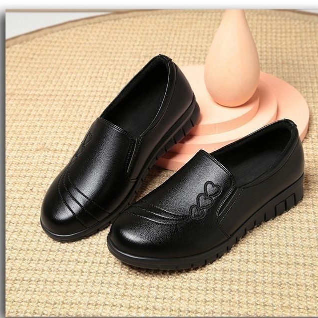 비 슬립 작업 신발 여성 블랙 플랫 솔 엄마 신발 주방 작업 신발 방수 신발 소프트 가죽 소프트 단독 여성 싱글 신발스토어 가기