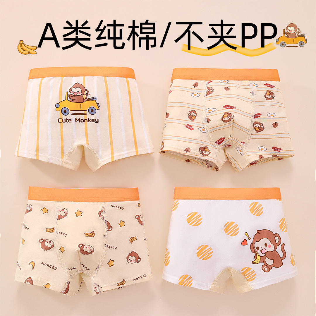 2025 뉴 보이즈 코튼 속옷 어린이 아기 소년의 아기 클래스 A 코튼 4 코너 항균 반바지스토어 가기