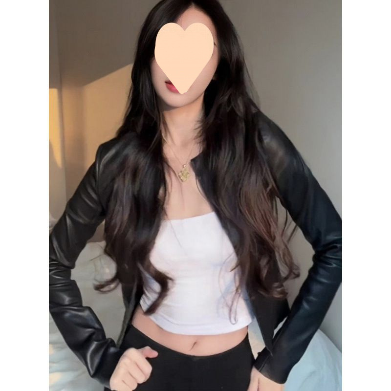 검은 색 짧은 가죽 자켓 여성의 봄과 가을 2025 새로운 스타일 작은 고급 감각 튀김 아케이드 자동차 재킷 탑스토어 가기