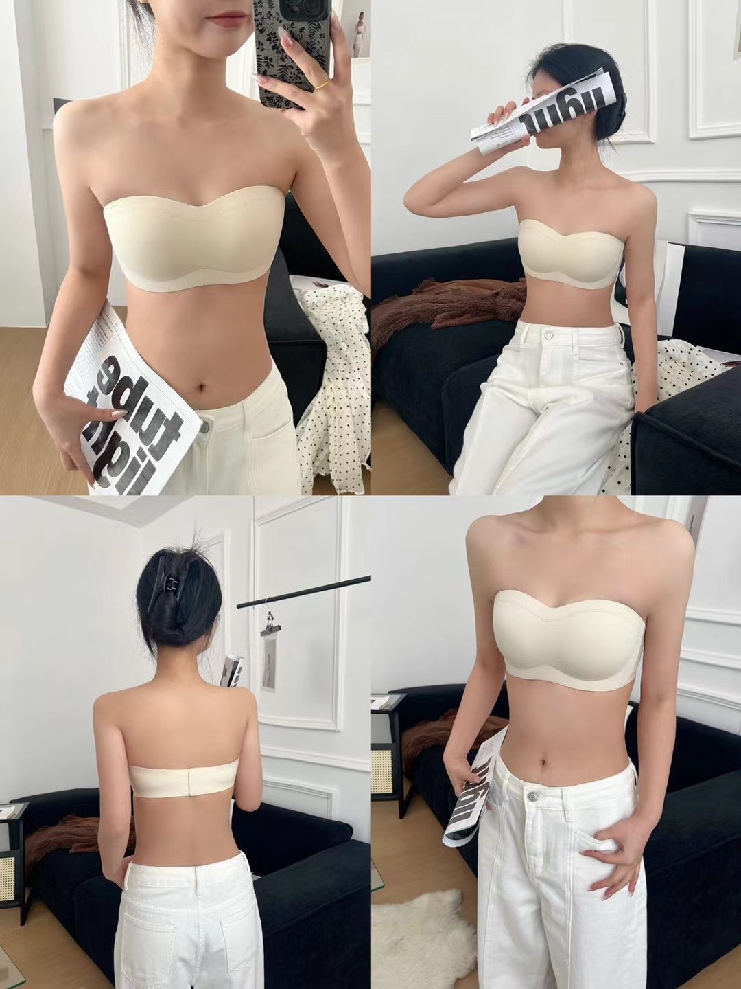 613 투웨어 디자인 부드러운 스틸 링 끈이없는 속옷 안티 러닝 라이트 튜브스토어 가기