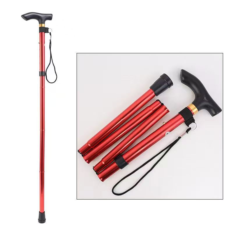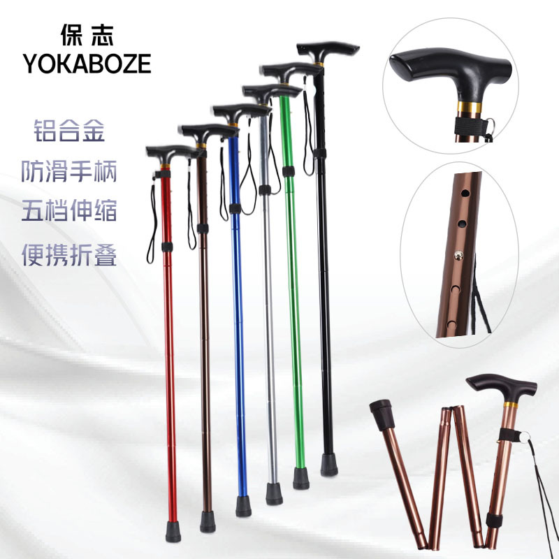 Baozhi 알루미늄 합금 접이식 목발 야외 휴대용 5 섹션 등산 스틱 노인을위한 미끄럼 방지 워킹 스틱 보행 목발 보조