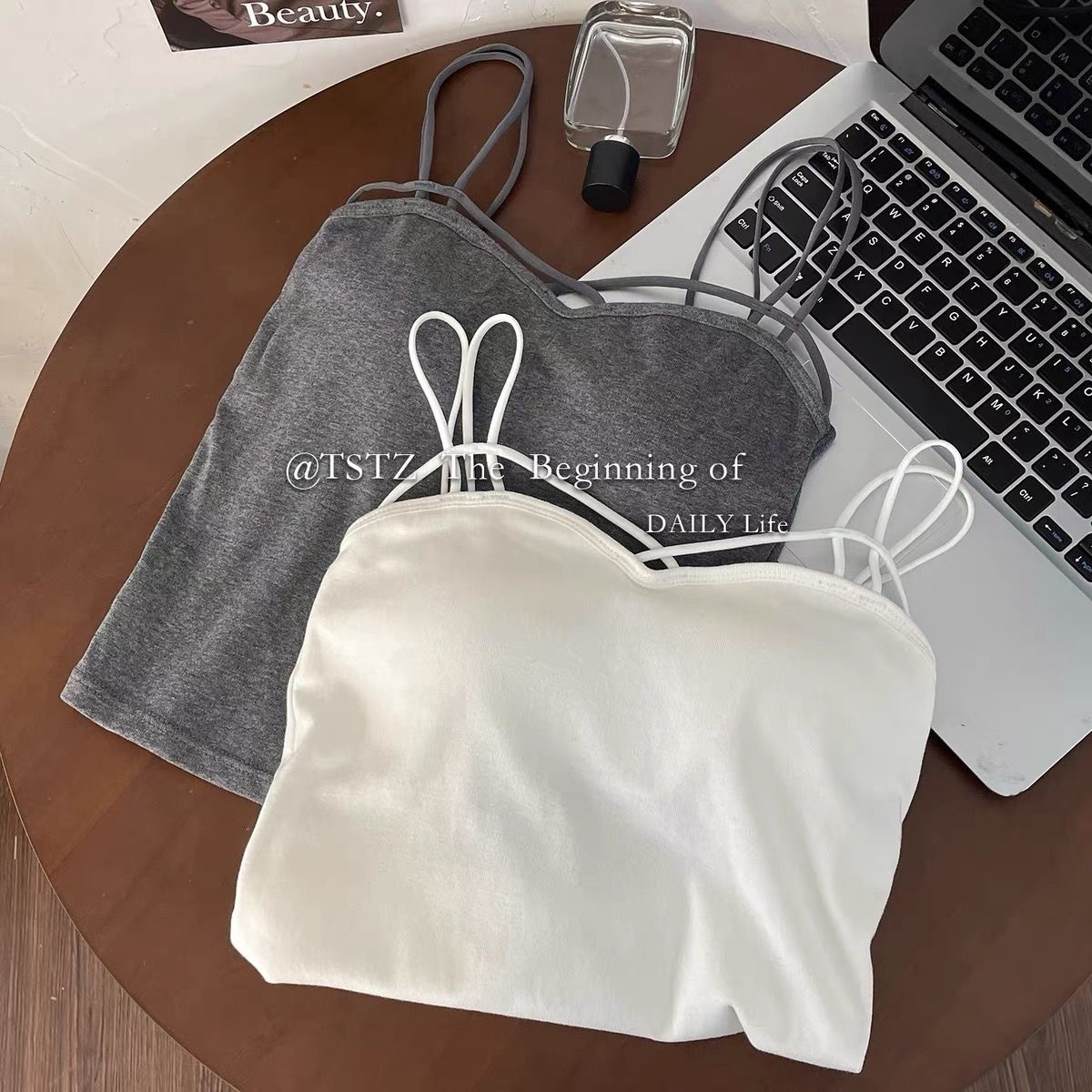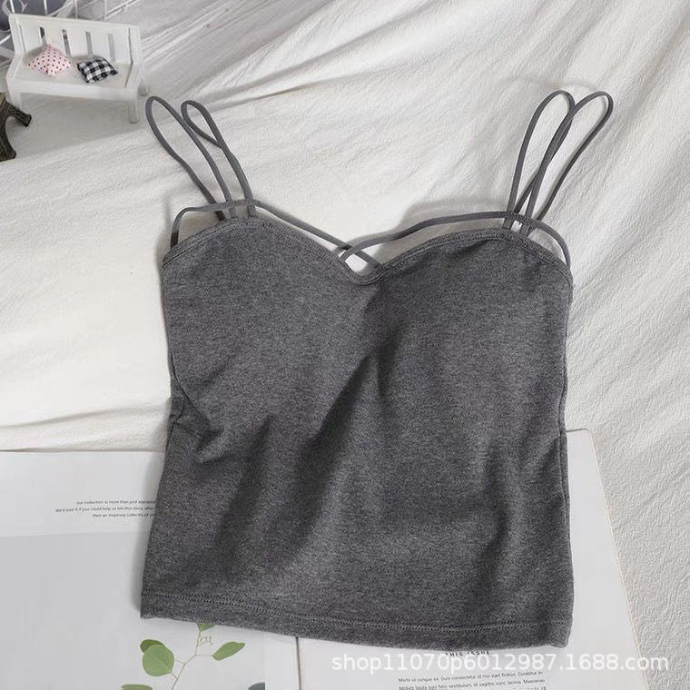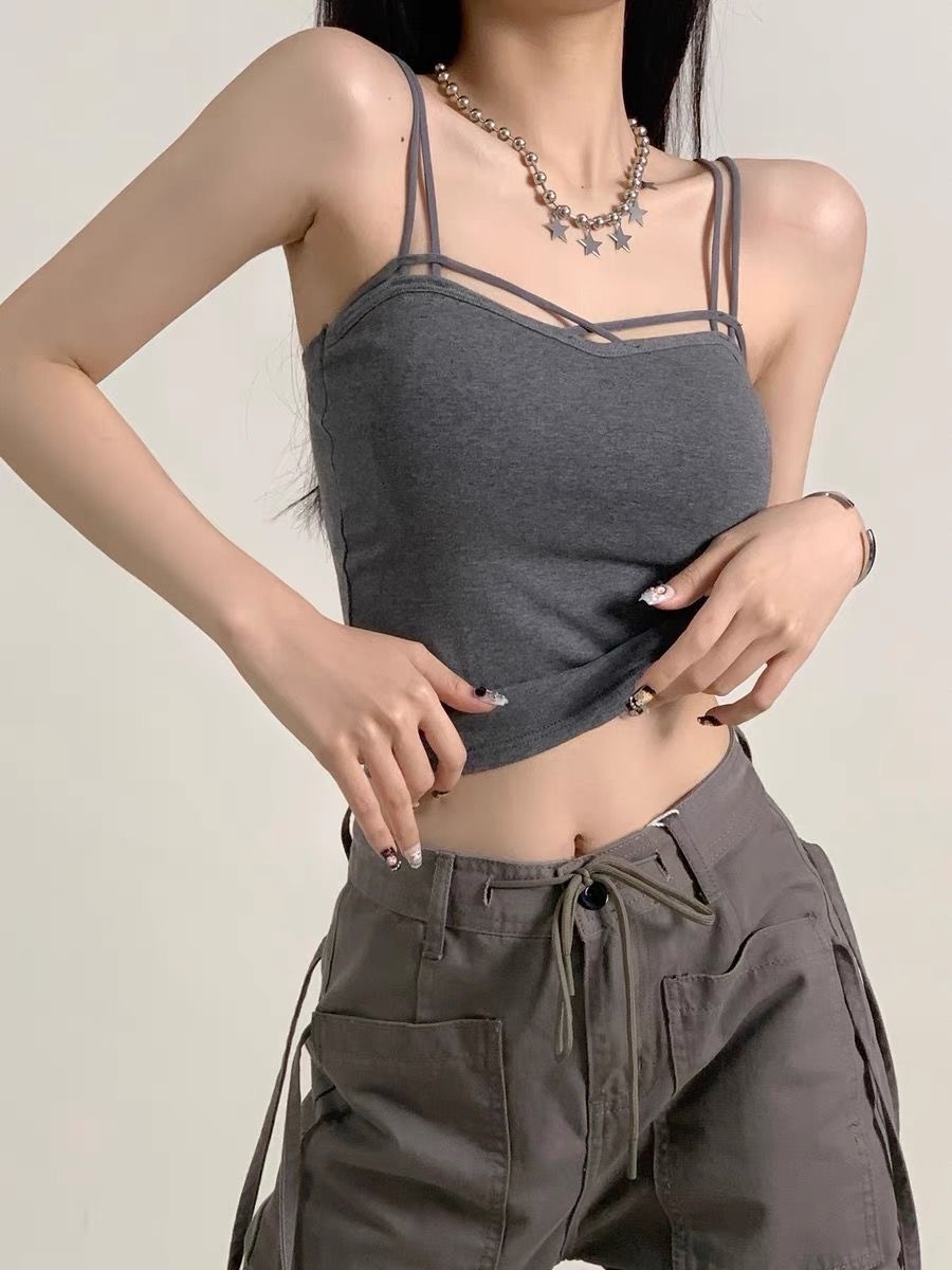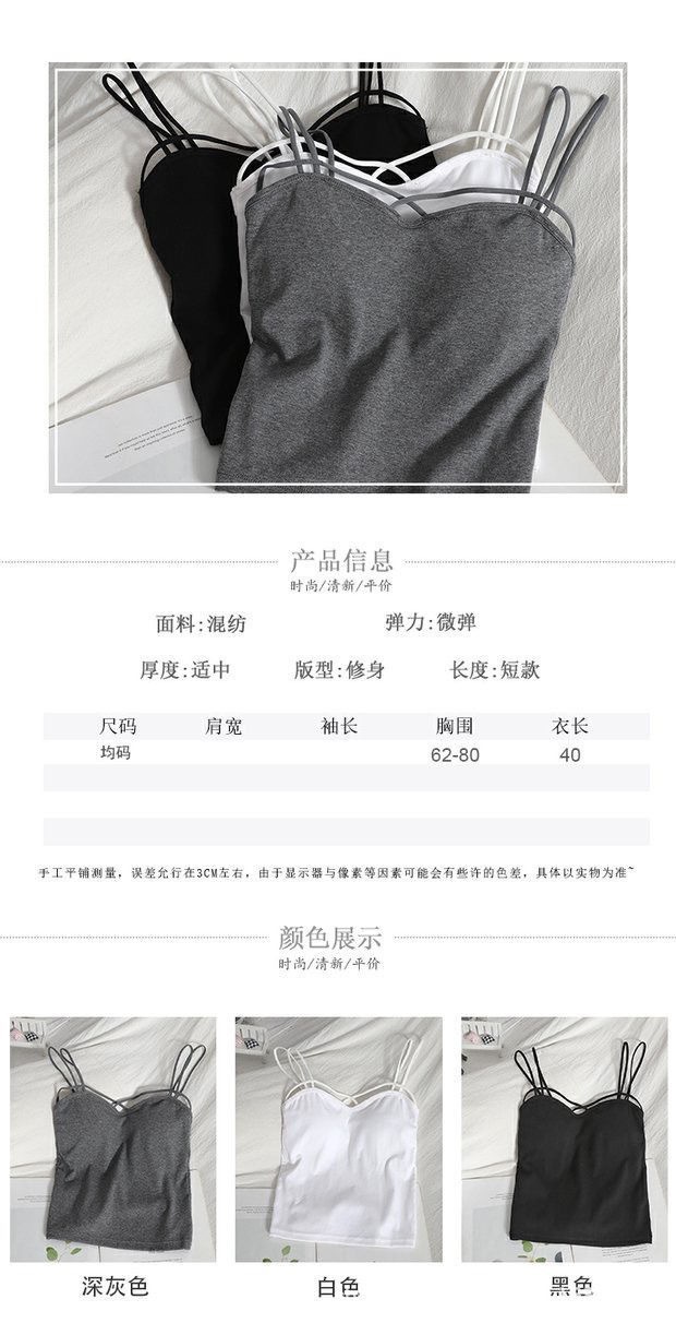 여름 새 크로스 숄더 슬링 셔츠 한국 스타일 캐주얼 아름다운 백 올 매치 솔리드 컬러 조끼 베이스 가슴 패드 탑스토어 가기