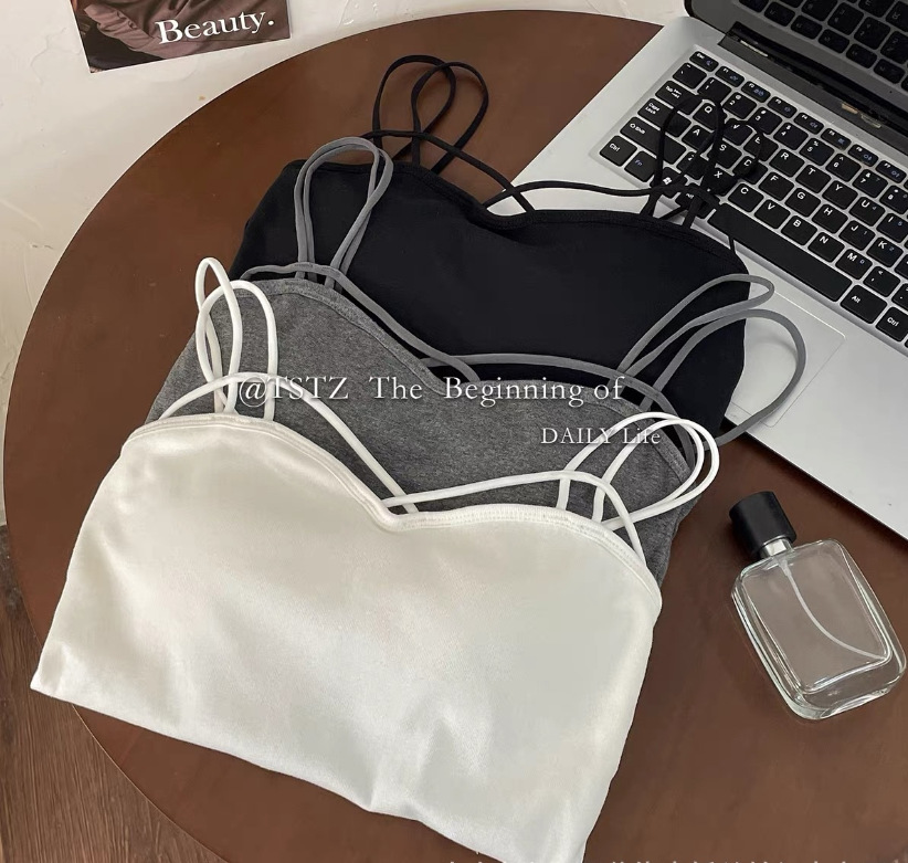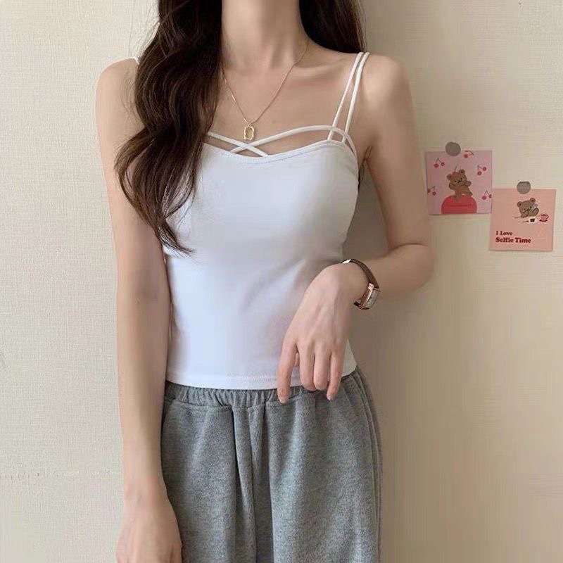 여름 새 크로스 숄더 슬링 셔츠 한국 스타일 캐주얼 아름다운 백 올 매치 솔리드 컬러 조끼 베이스 가슴 패드 탑