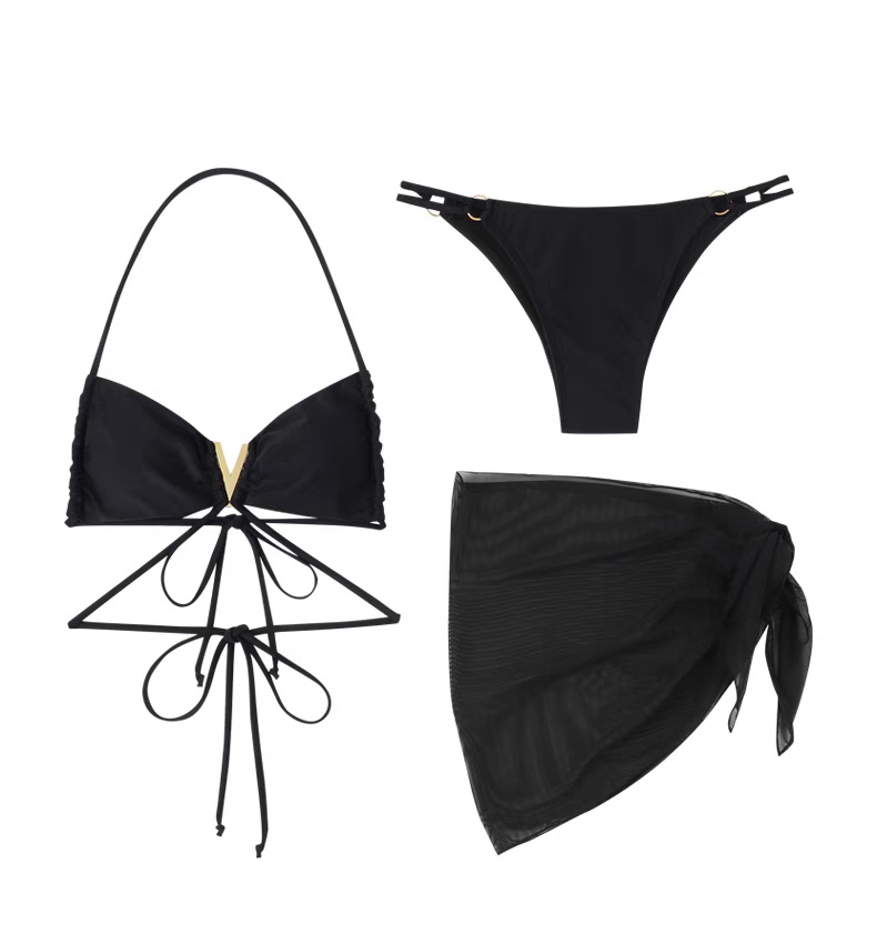 검은 목 스트랩 비키니 수영복 여성 한국 Ins 작은 가슴 섹시한 스파이스 소녀 휴일 온천 3 피스 세트