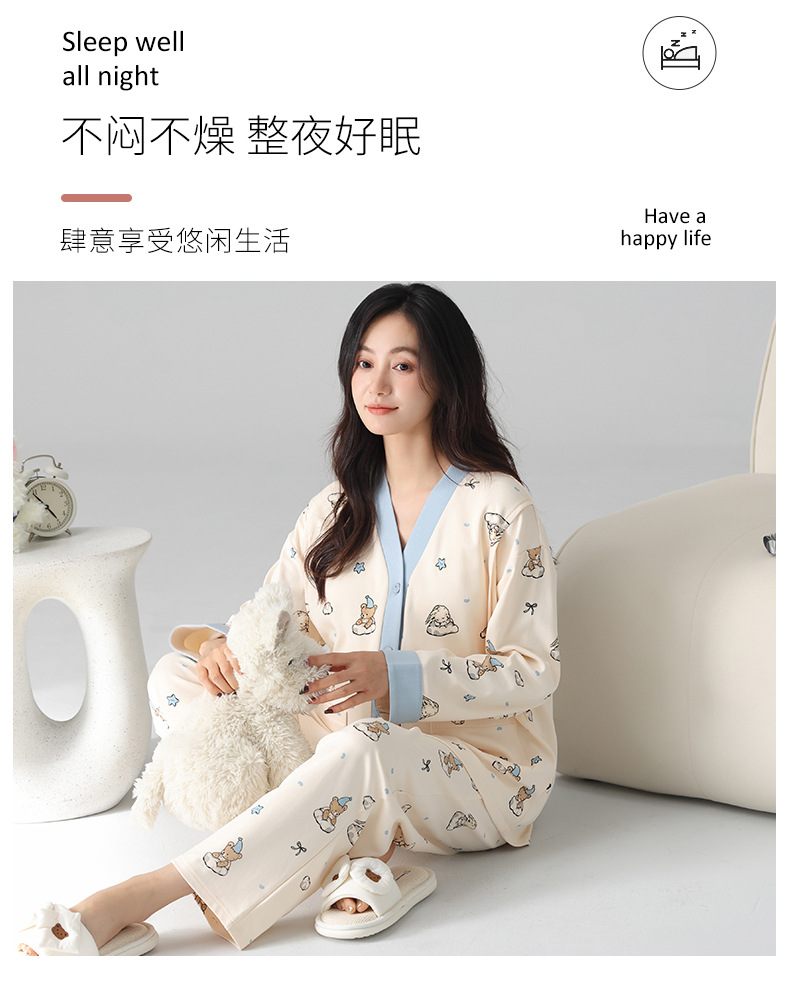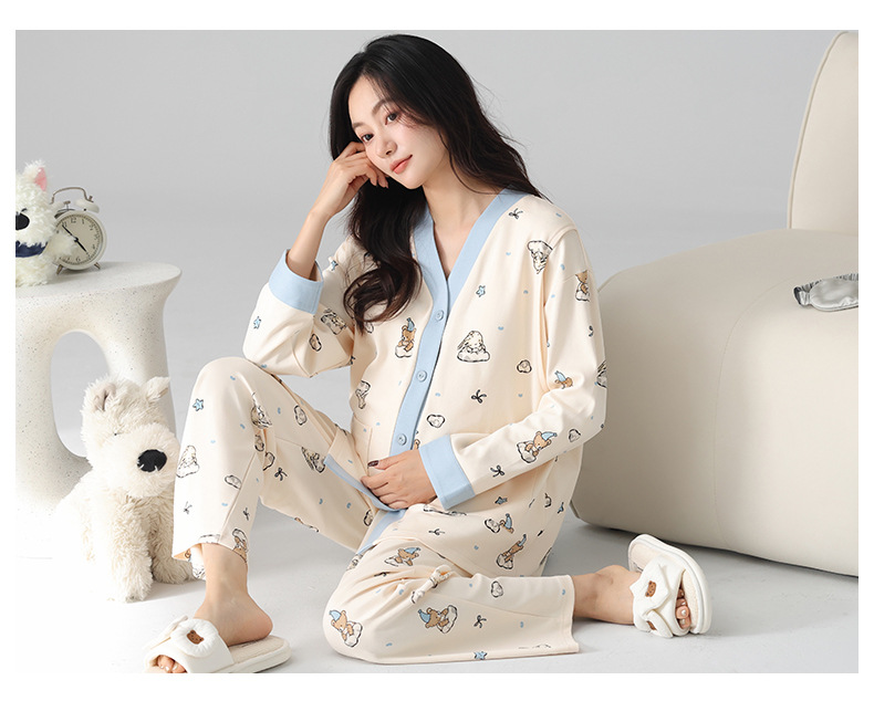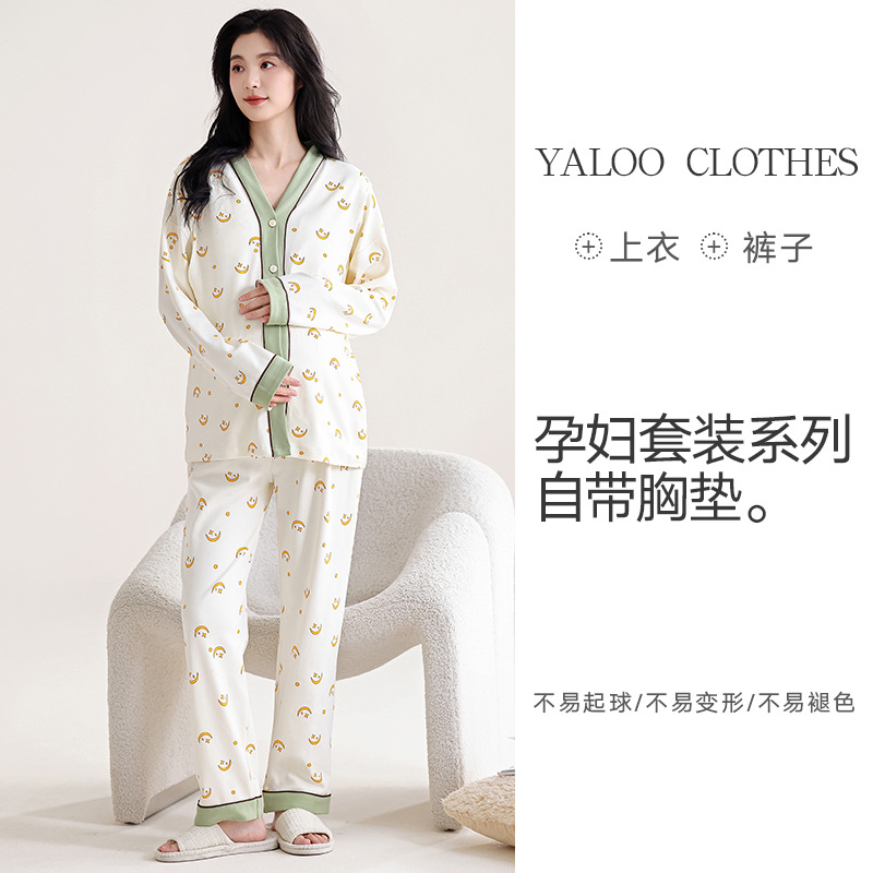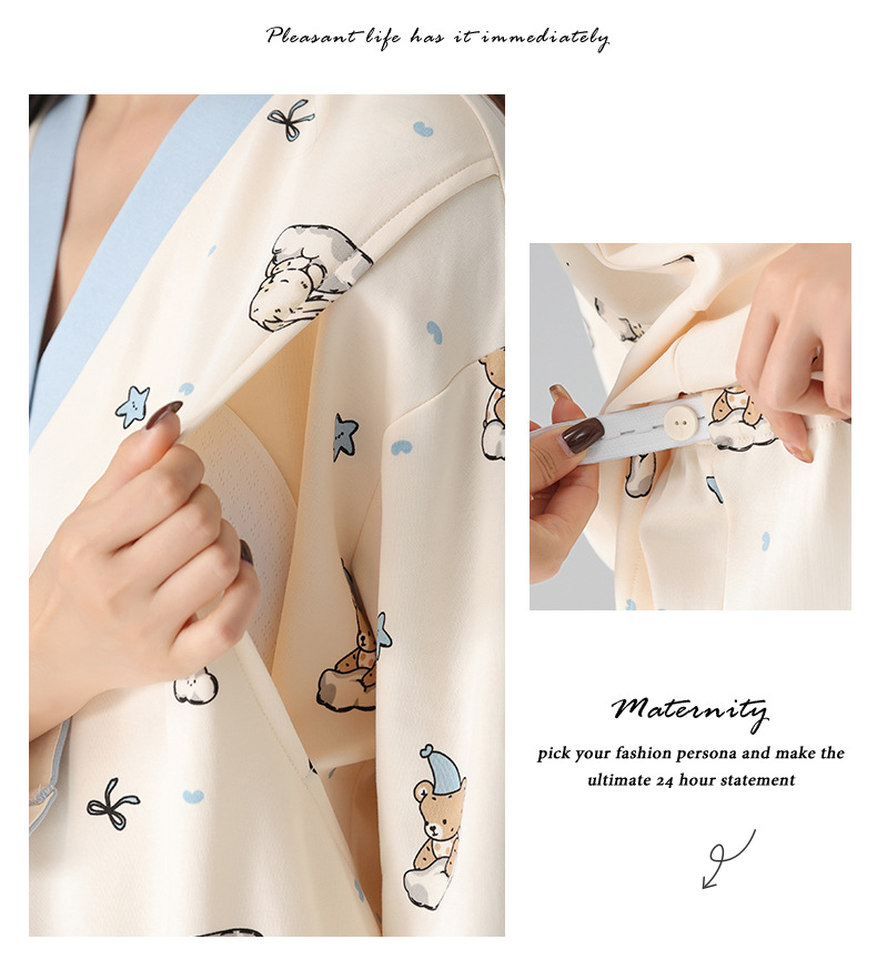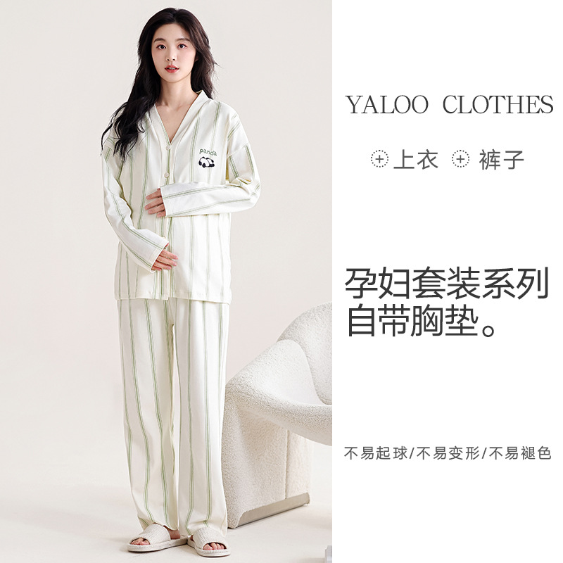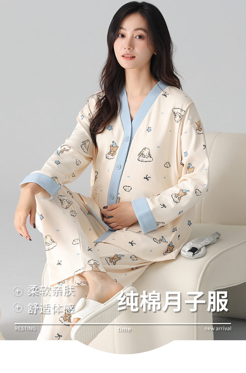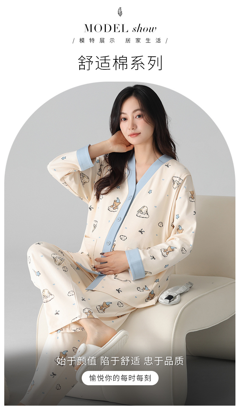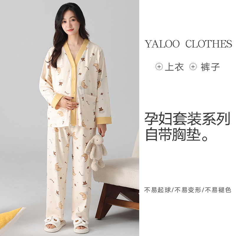 유방 패드 달 옷을 입은 순수한면 여성의 봄과 가을 임신 산후 간호 잠옷 가정 의류 임산부 23 개월 여름스토어 가기