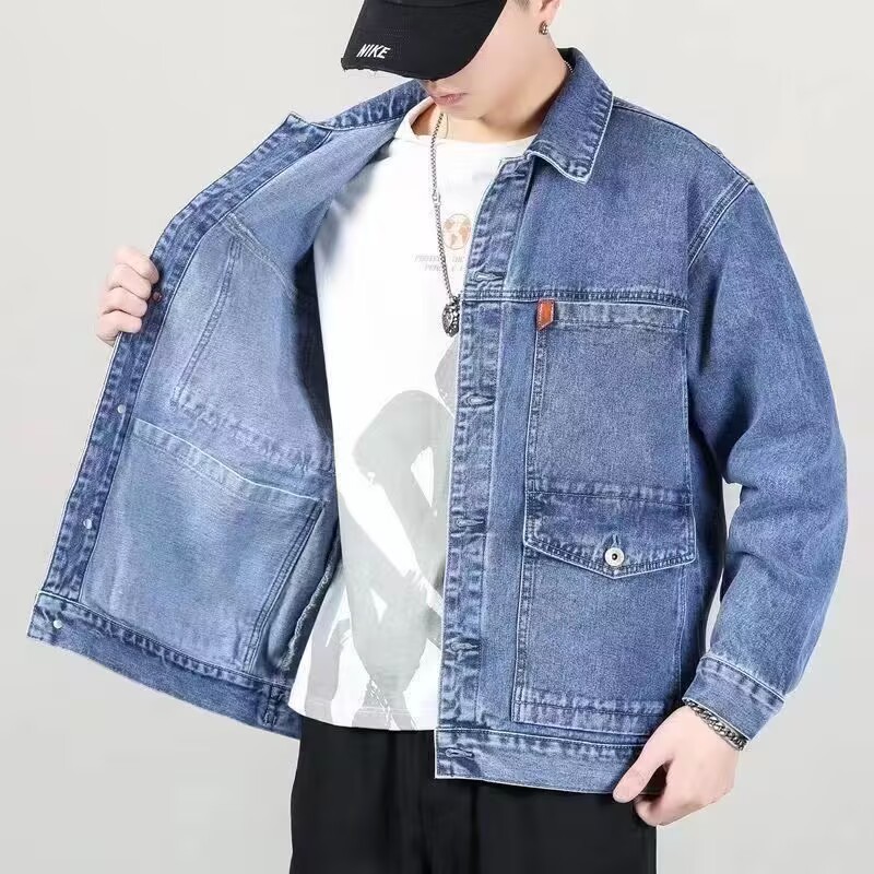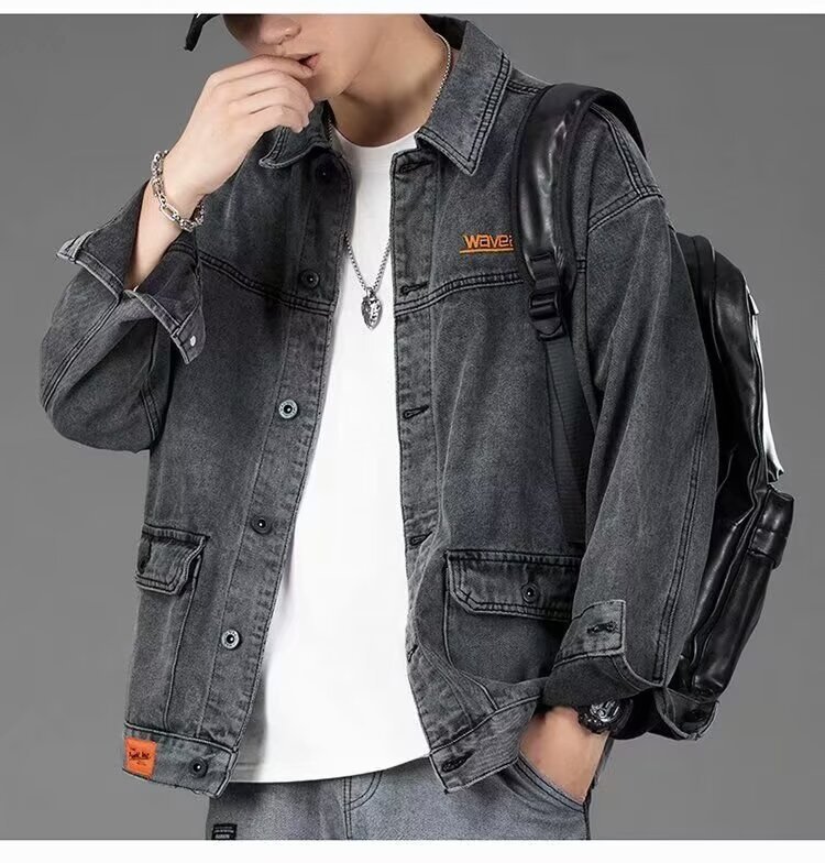 가을 2024 일본 빈티지 옷깃 재킷 남성의 새로운 캐주얼 시티 보이 스타일 데님 재킷 남성스토어 가기
