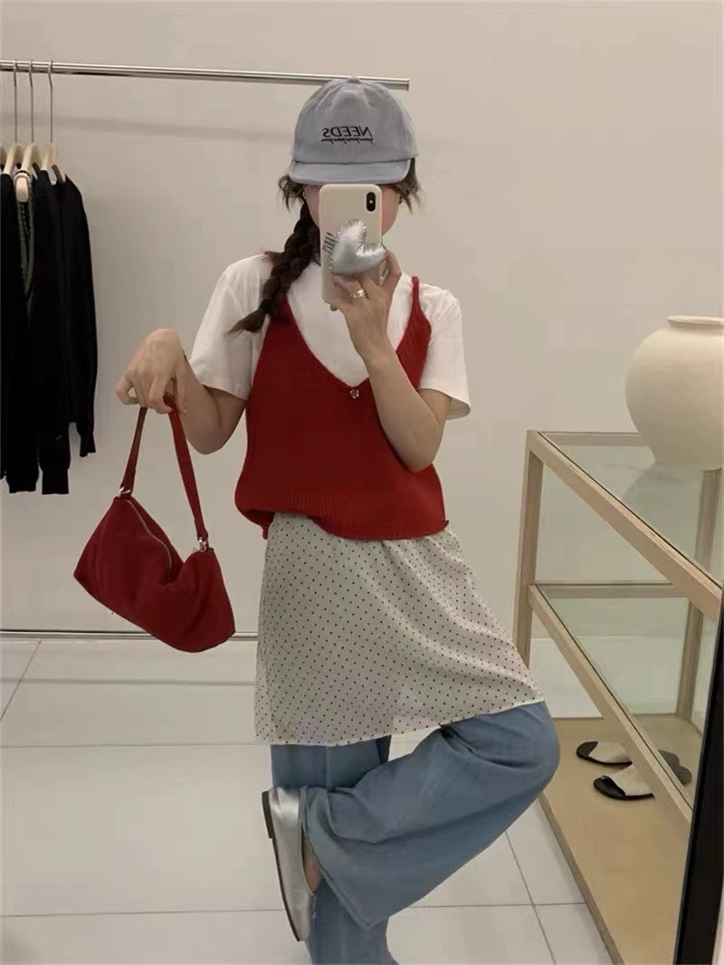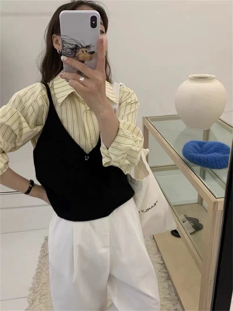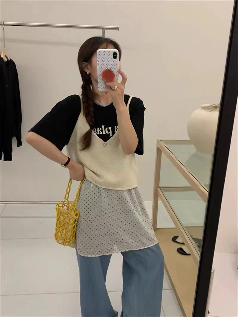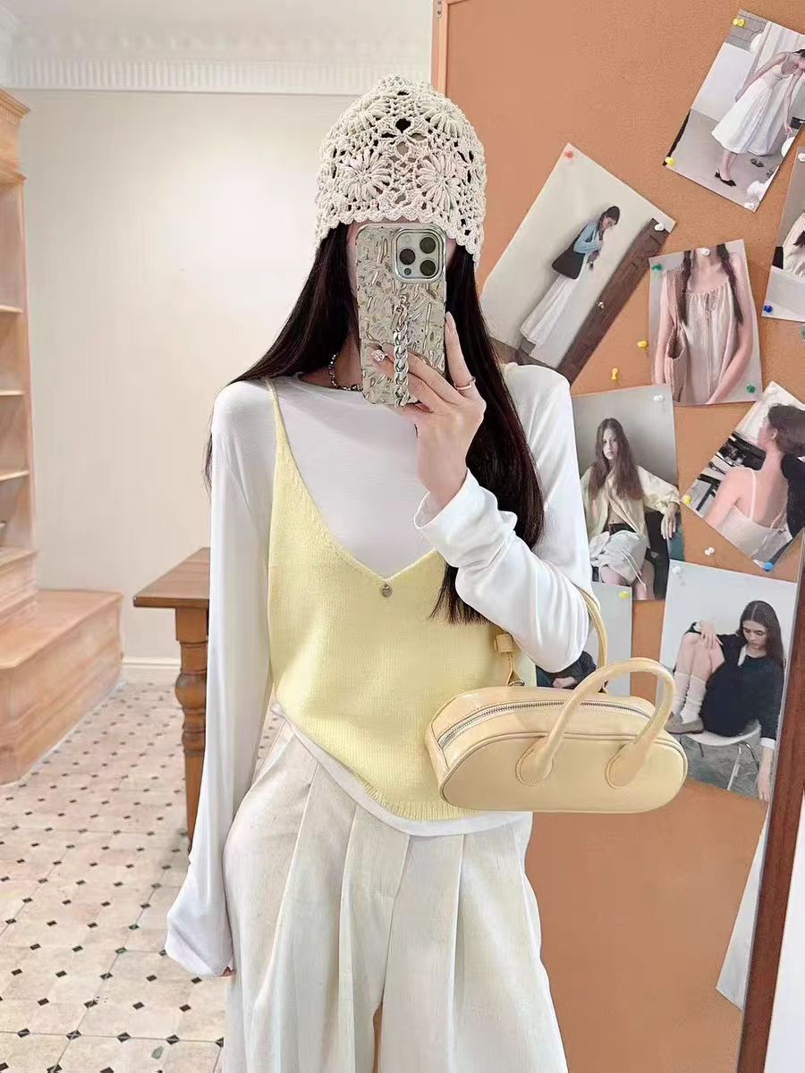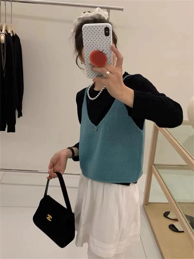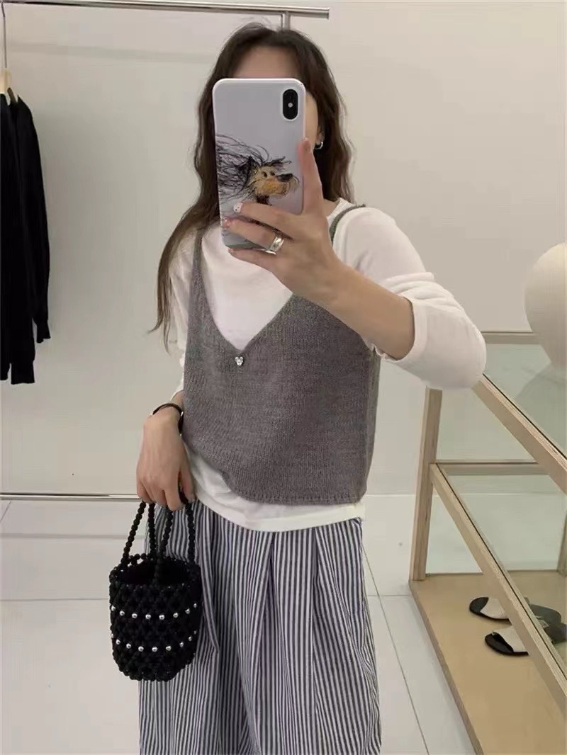 여성을위한 한국 스타일 심플 v 넥 니트 캐미솔 2025 봄 새로운 스타일 레이어드 민소매 양복 조끼 짧은 탑스토어 가기