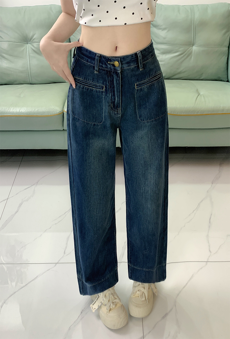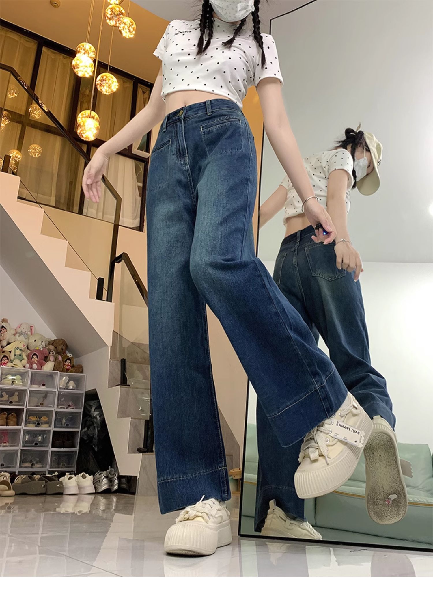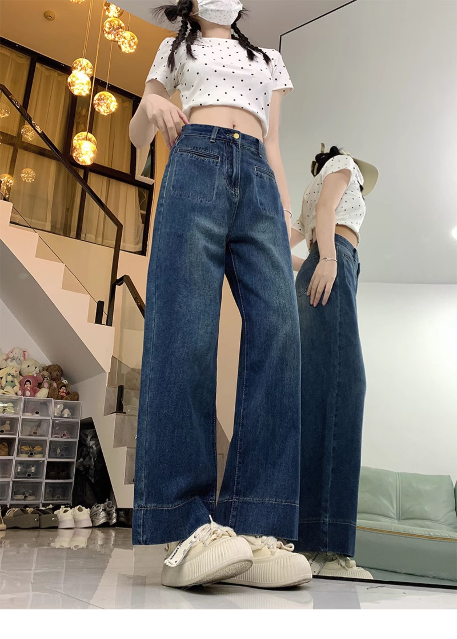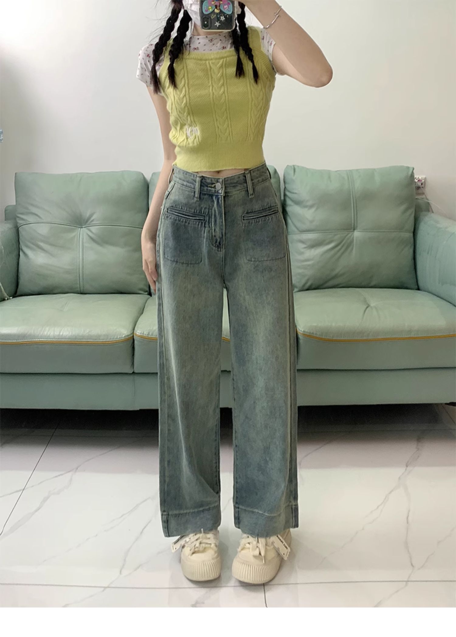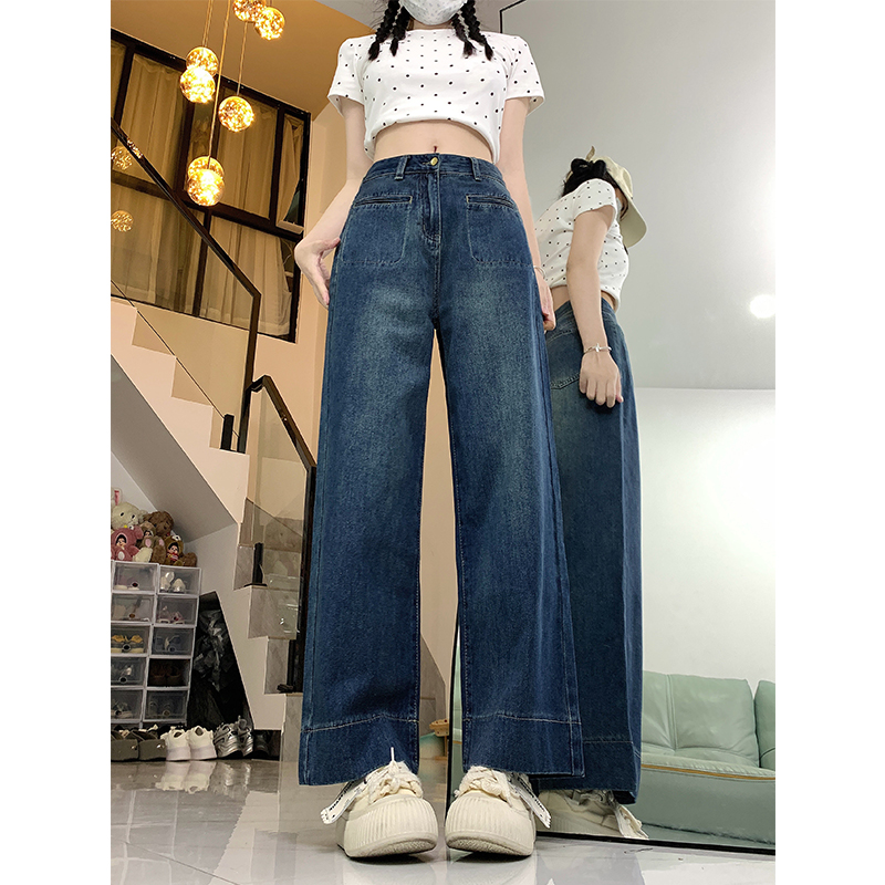 플러스 사이즈 레트로 라이트 컬러 청바지 여성의 가을과 겨울 통통녀 높은 허리 슬리밍 느슨한 작은 직선 다리 넓은 다리 긴 바지스토어 가기