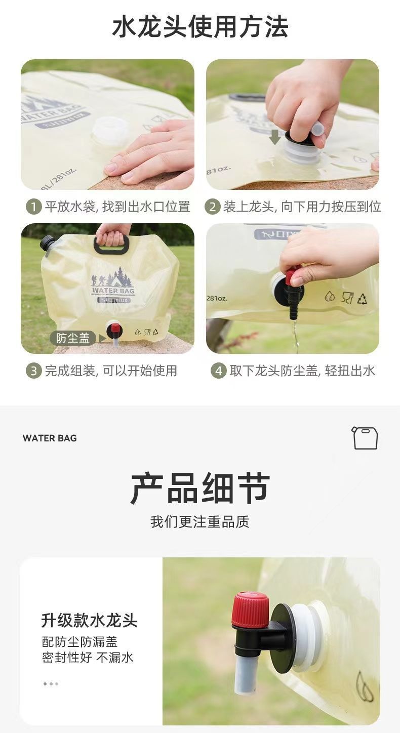 야외 휴대용 물 가방 수도꼭지 대용량 플라스틱 휴대용 여행 캠핑 자동차 물 저장