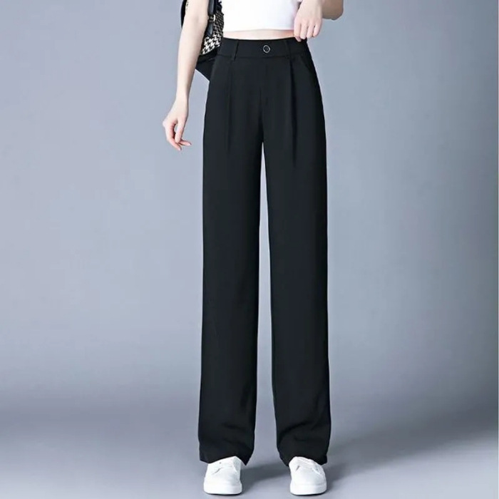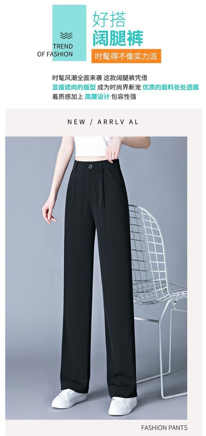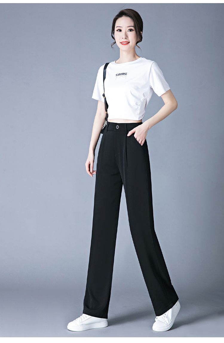 좁은 직선 다리 바지 여자 여름 높은 허리 넓은 다리 바지 느슨한 올매치 세트 캐주얼 바지 얇은 바지