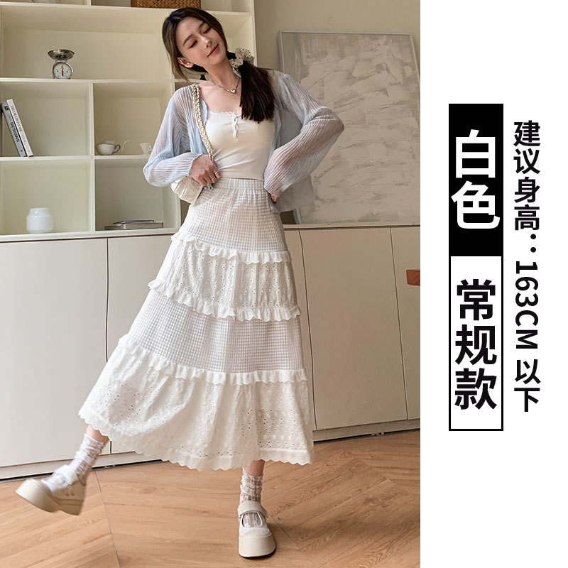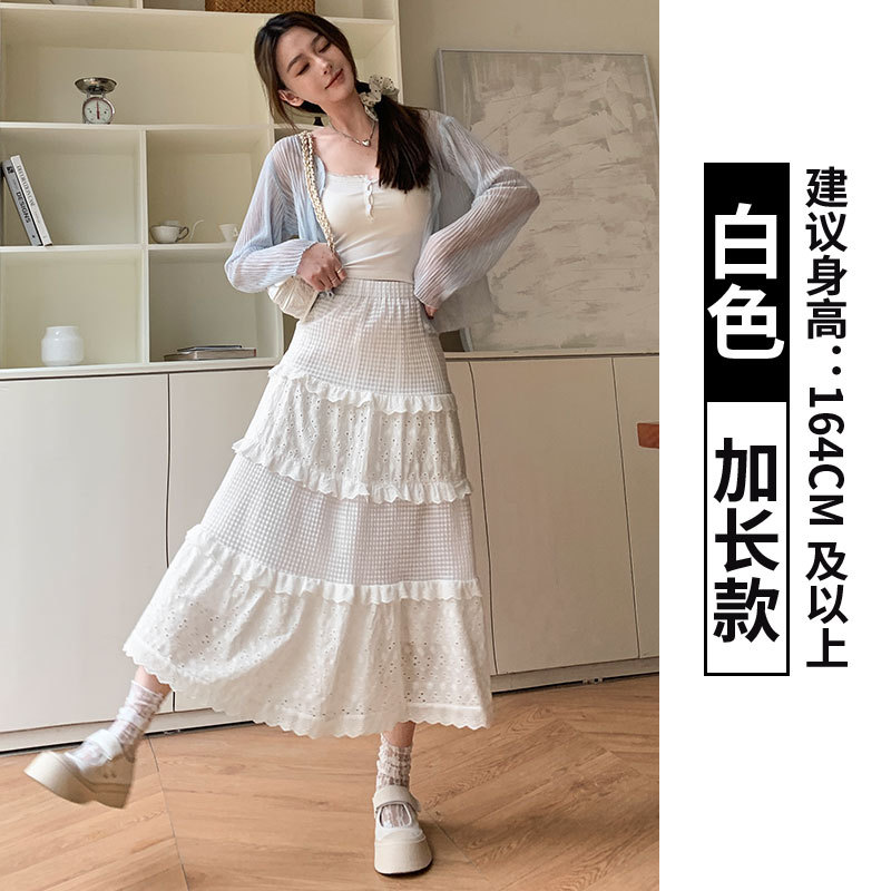 화이트 케이크 스커트 여성 스커트 봄 여름 가을 2025 새로운 높은 허리 A 라인 발레 스타일 우아한 긴 원피스