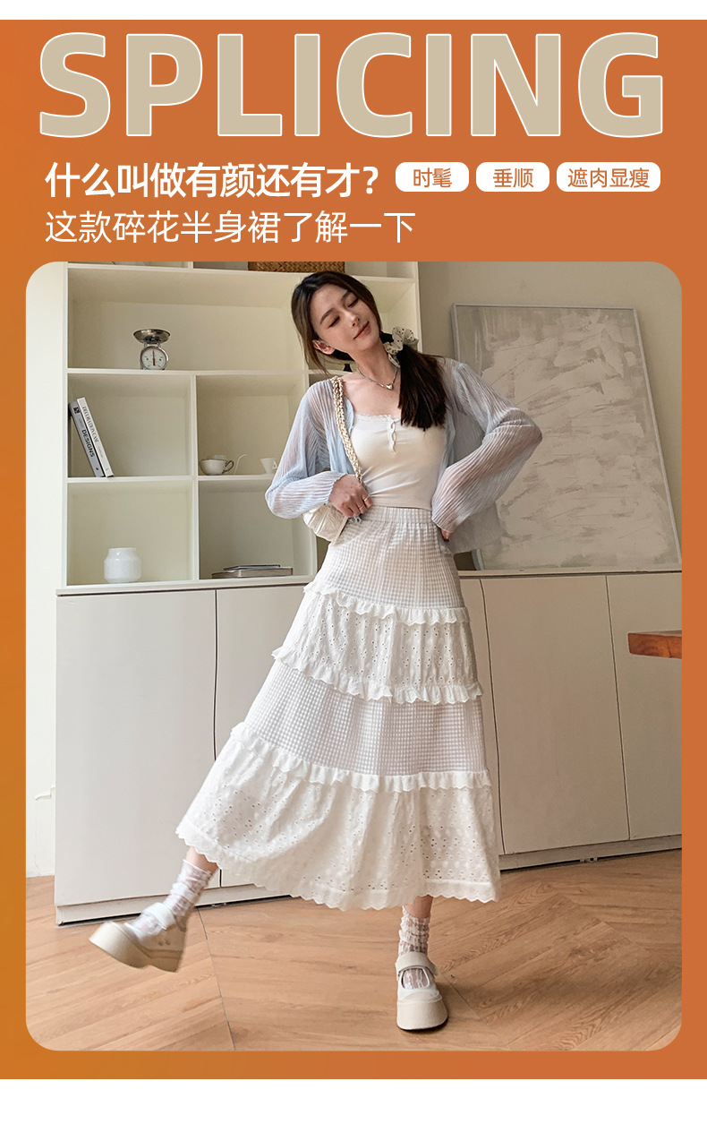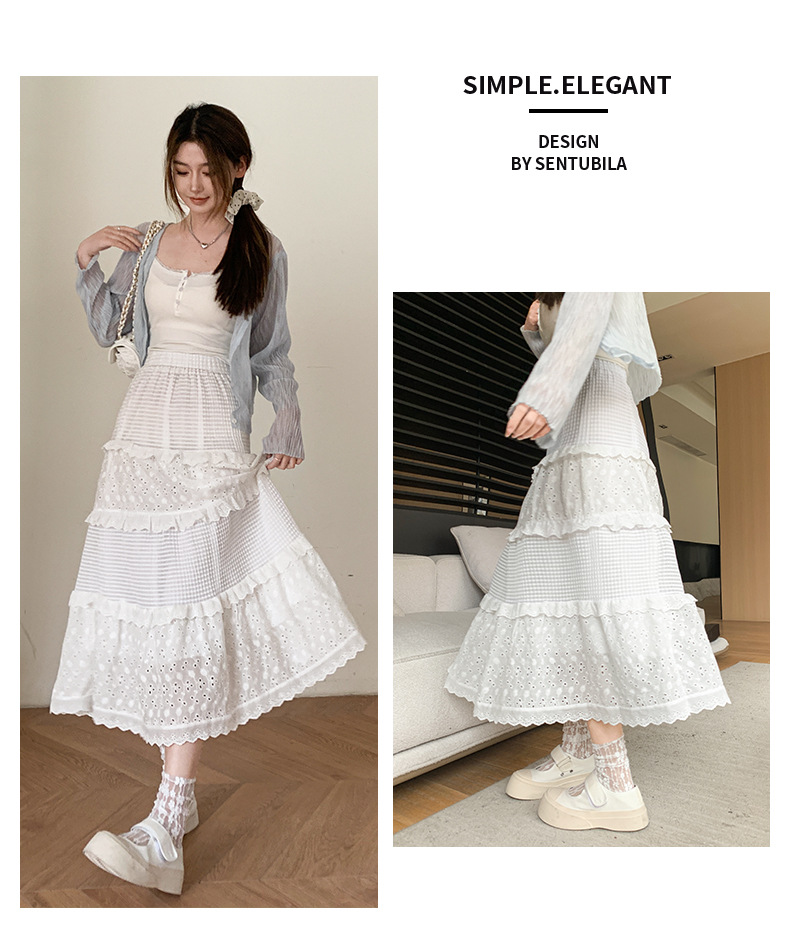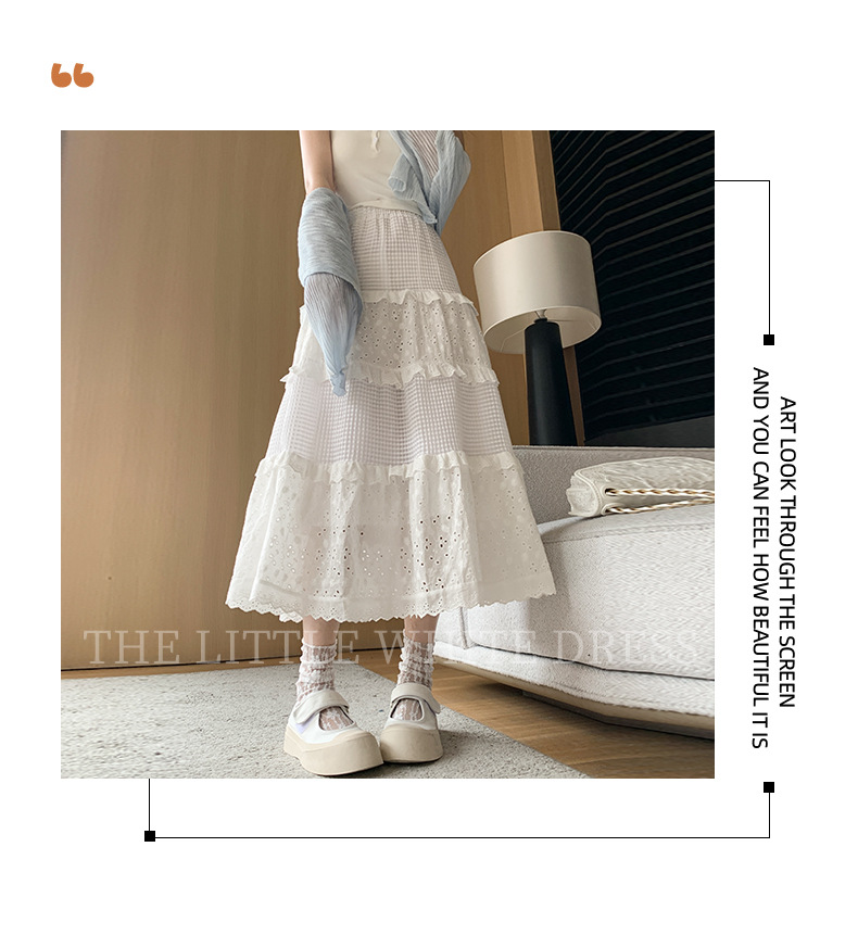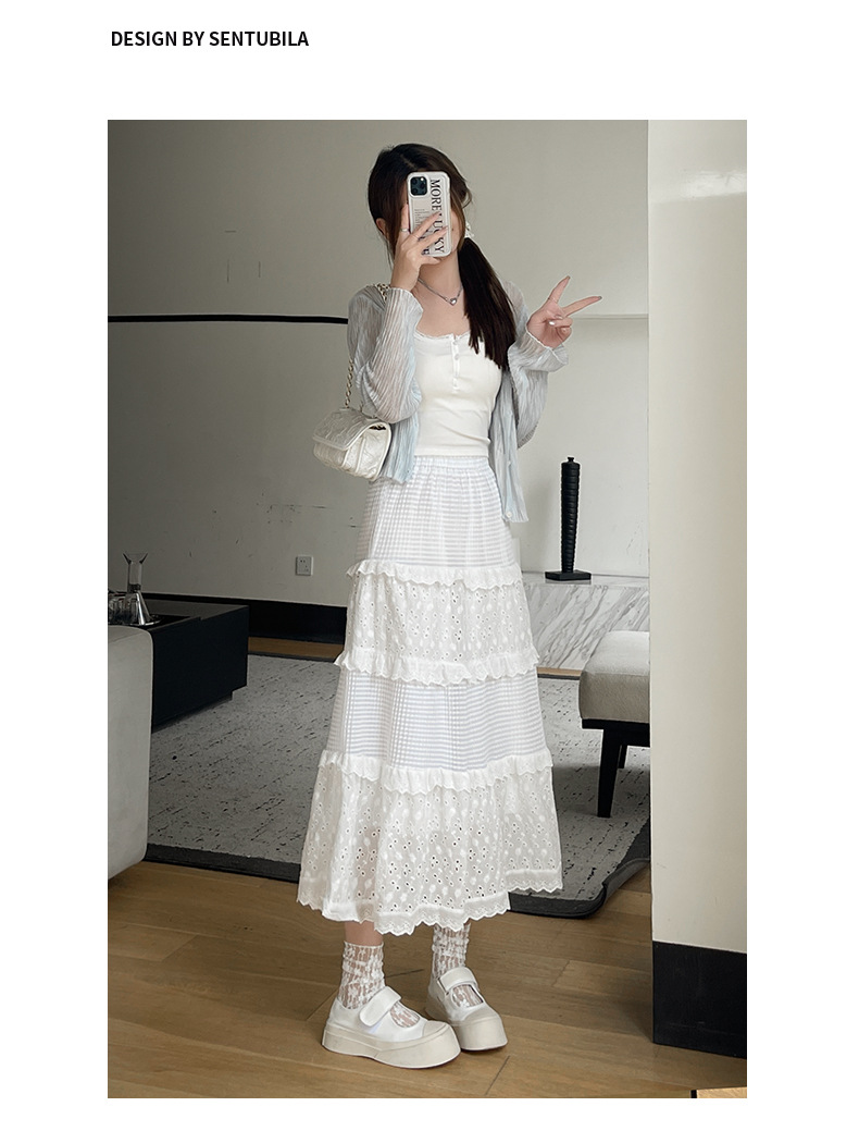 화이트 케이크 스커트 여성 스커트 봄 여름 가을 2025 새로운 높은 허리 A 라인 발레 스타일 우아한 긴 원피스스토어 가기