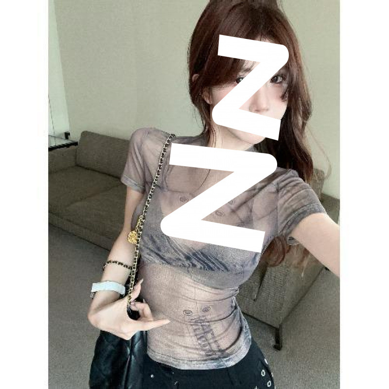 여름 틈새 빈티지 아름다운 반팔 티셔츠 여성의 독특한 세련된 순수한 달콤한 스파이스 소녀 슬림 얇은 탑 인쇄스토어 가기