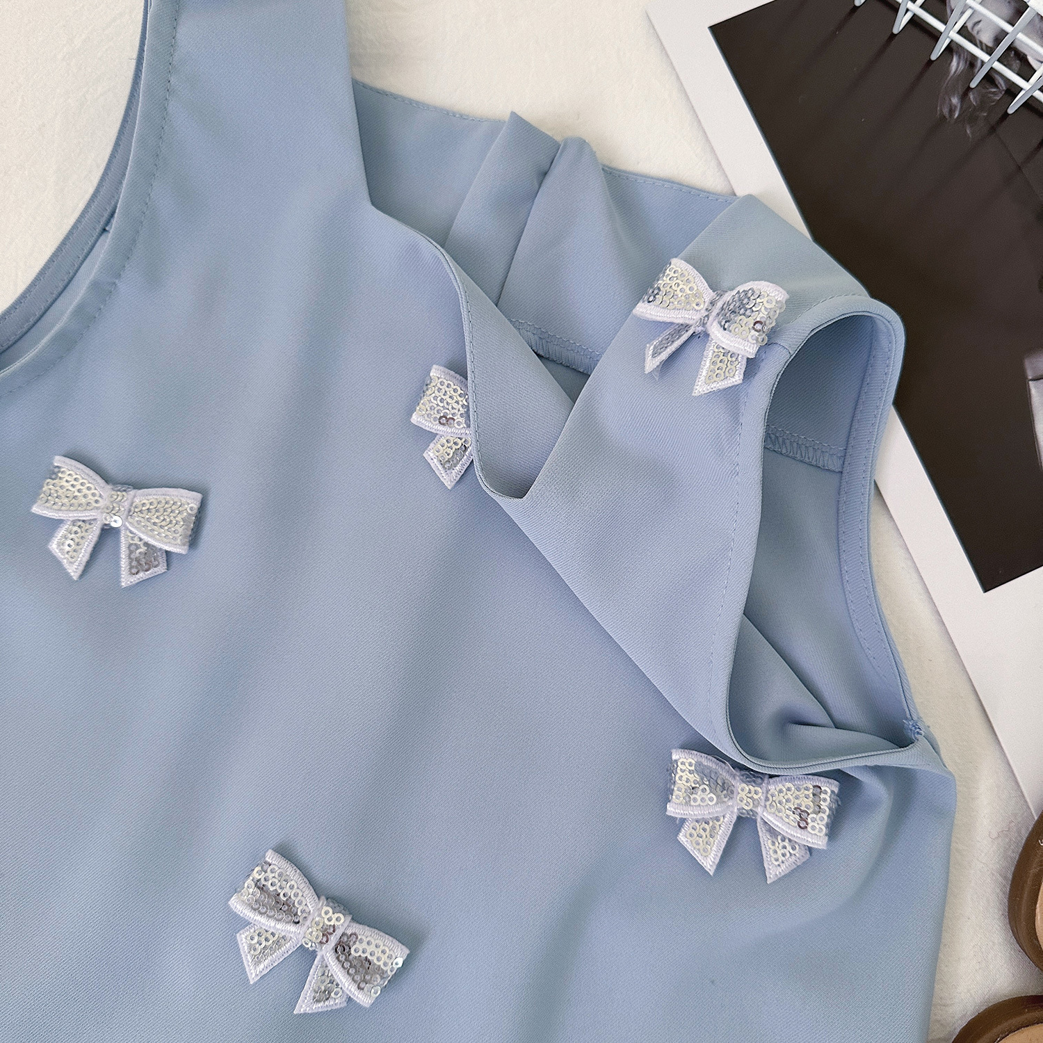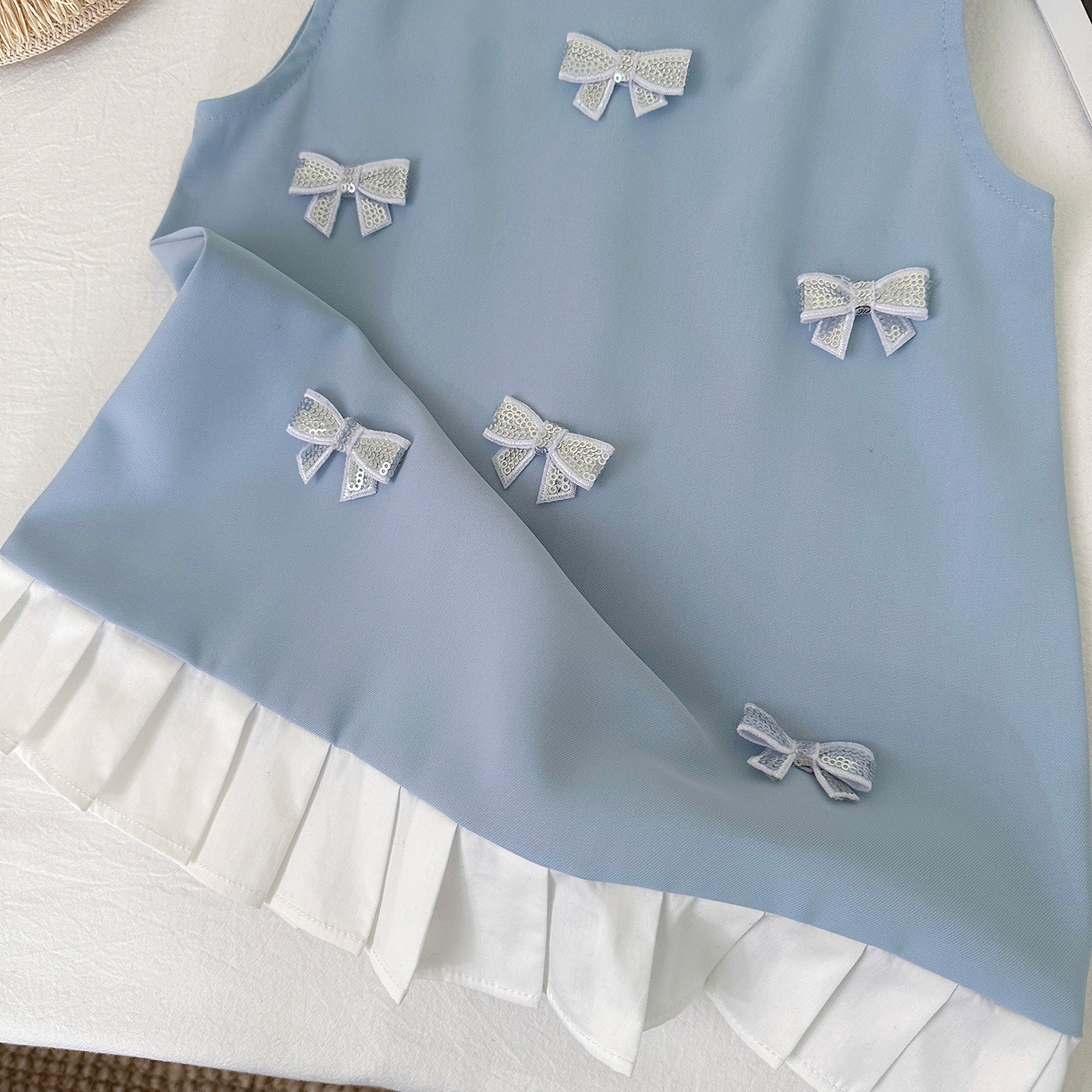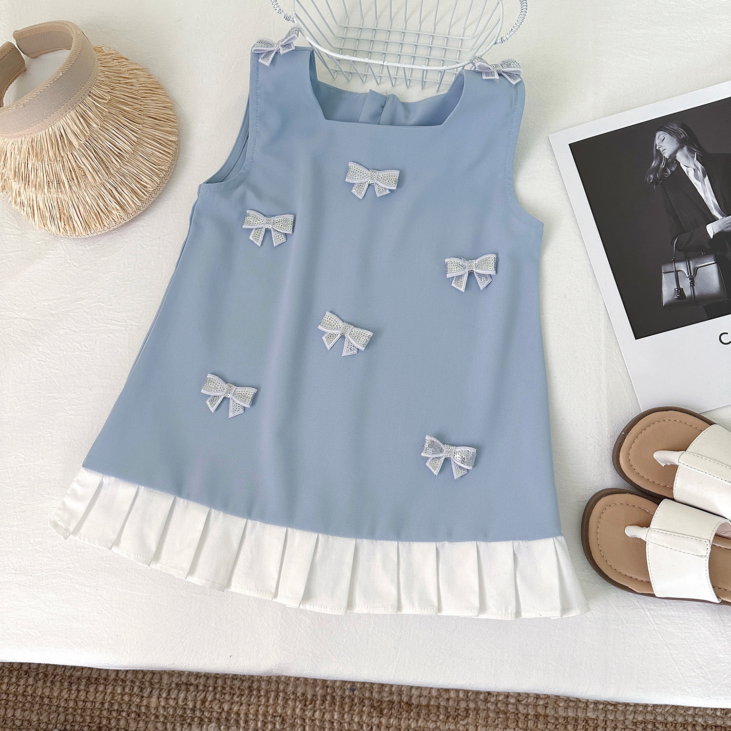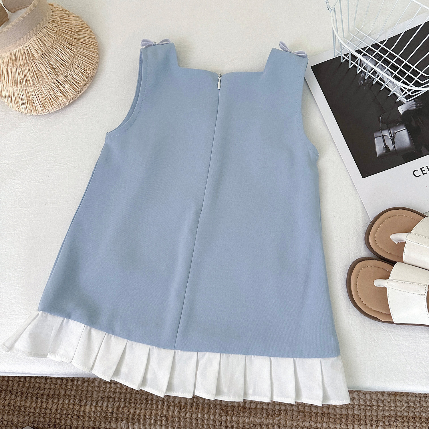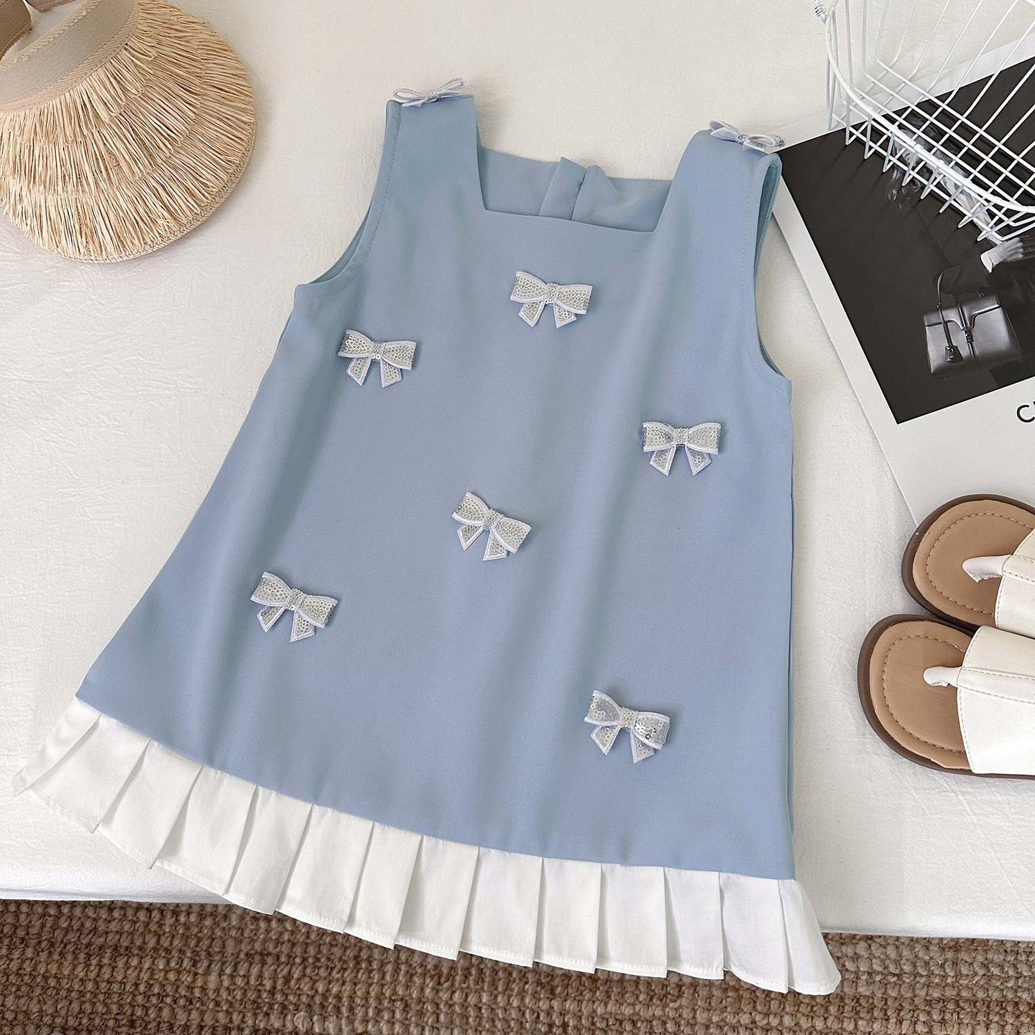 2025 년 여름 새 소녀 한국 여성 아기 패션 나비 민소매 조끼 원피스 24399