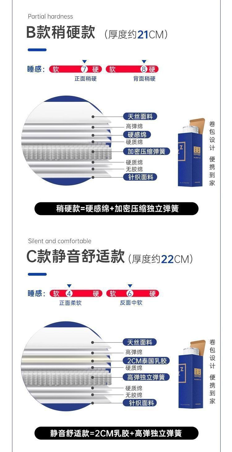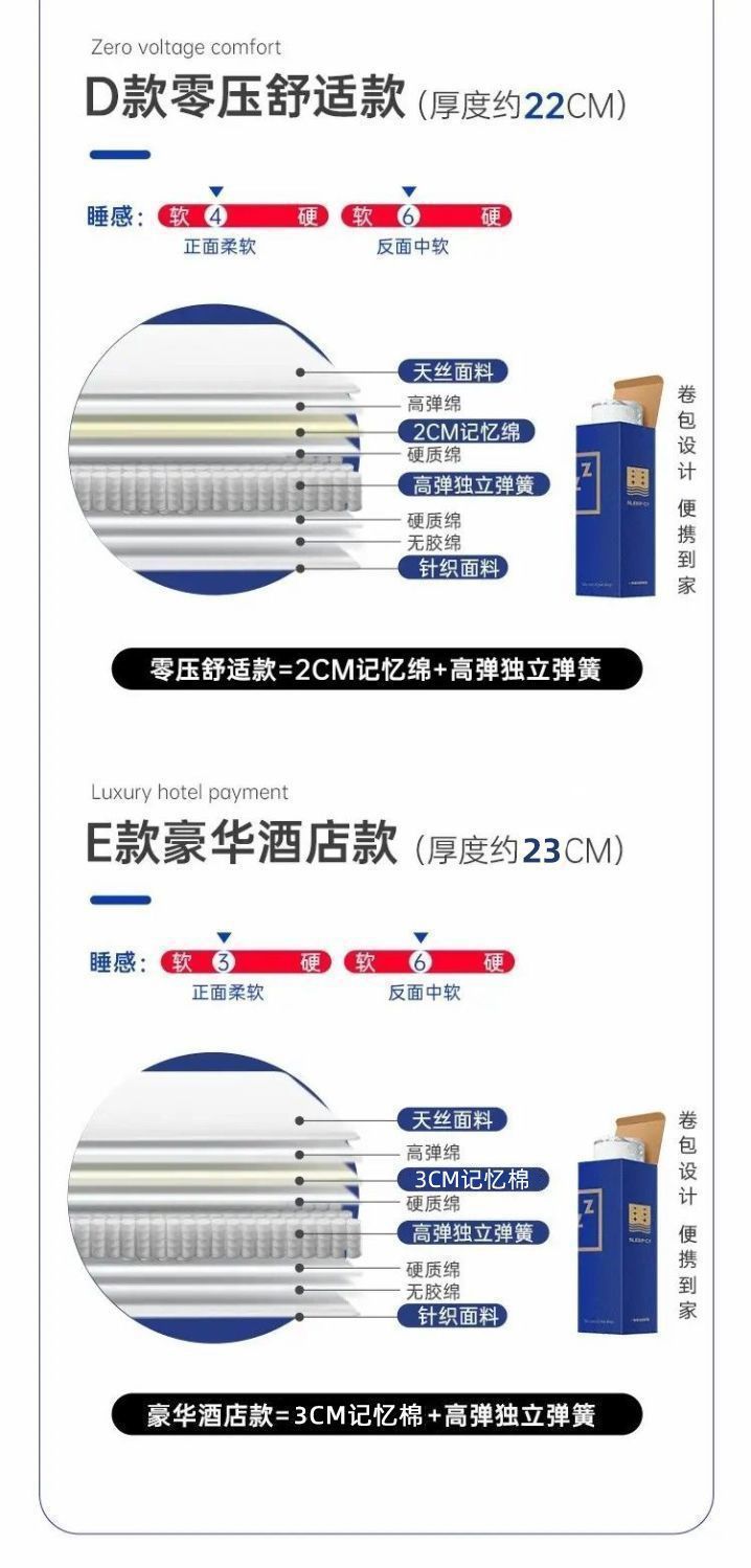 블루 메모리 폼 박스 매트리스 압축 홈 롤 패키지 독립 스프링 소프트 쿠션 시몬스 싱글 더블 사일런트스토어 가기