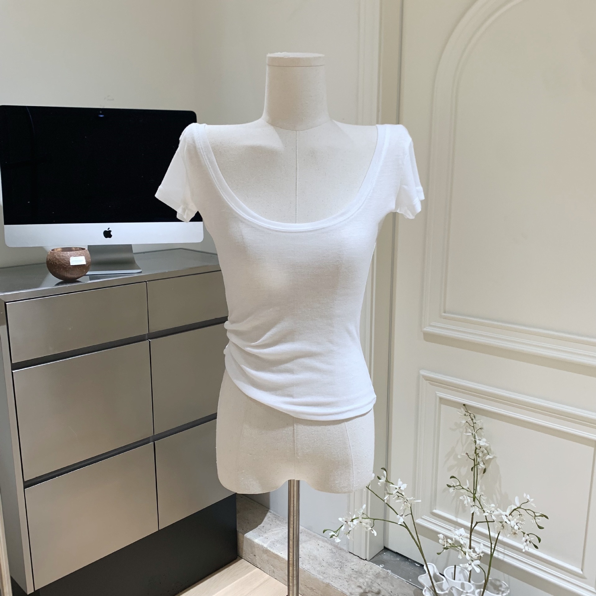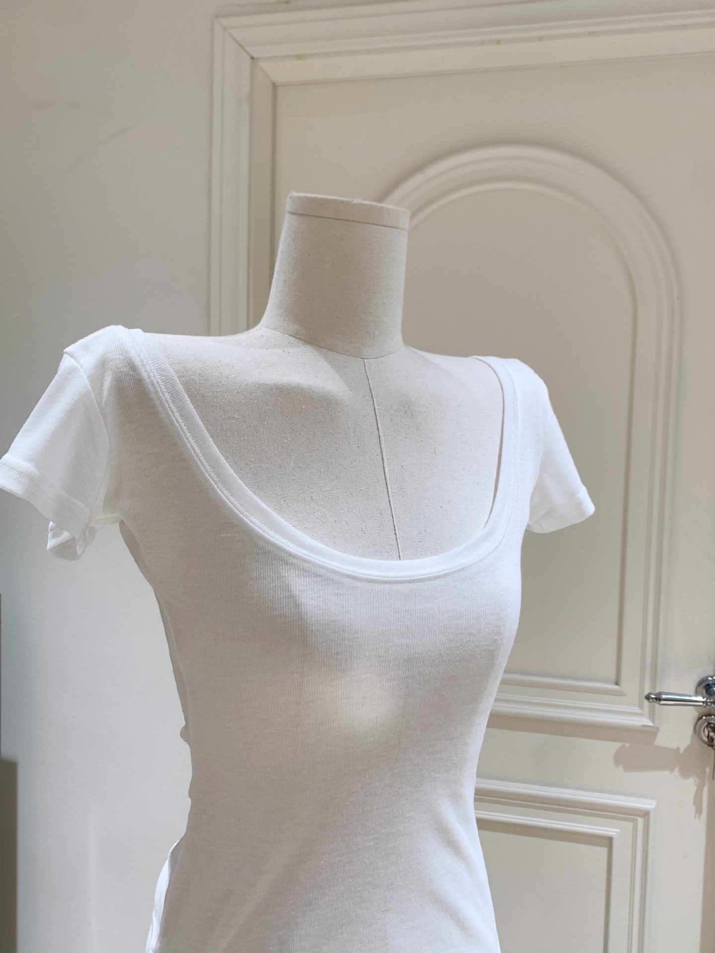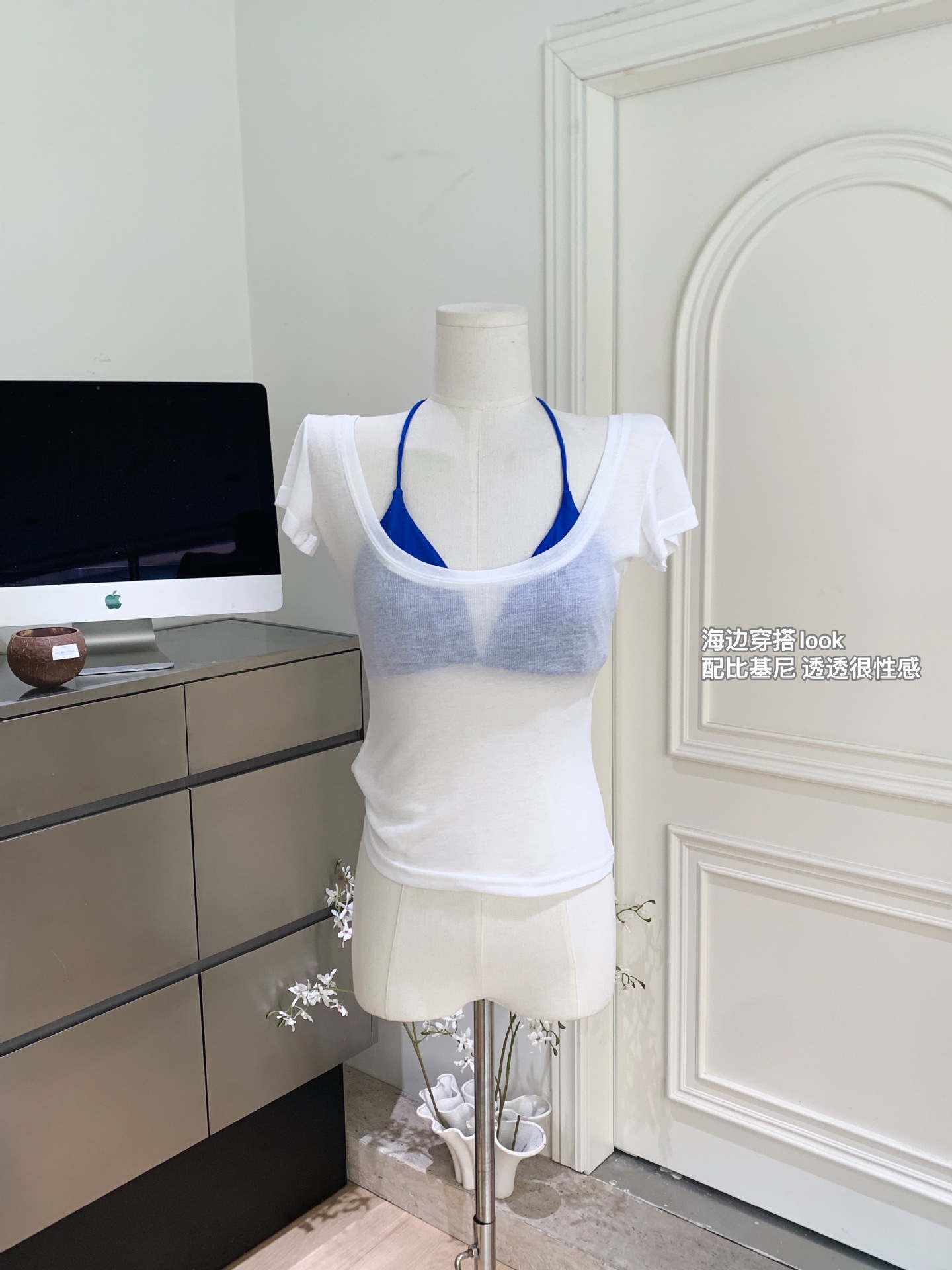 섹시한 순수한 작은 흰색 꽃! 여성을 위한 높은 투명한 게으른 순수한 색깔 탑 반팔 티셔츠스토어 가기