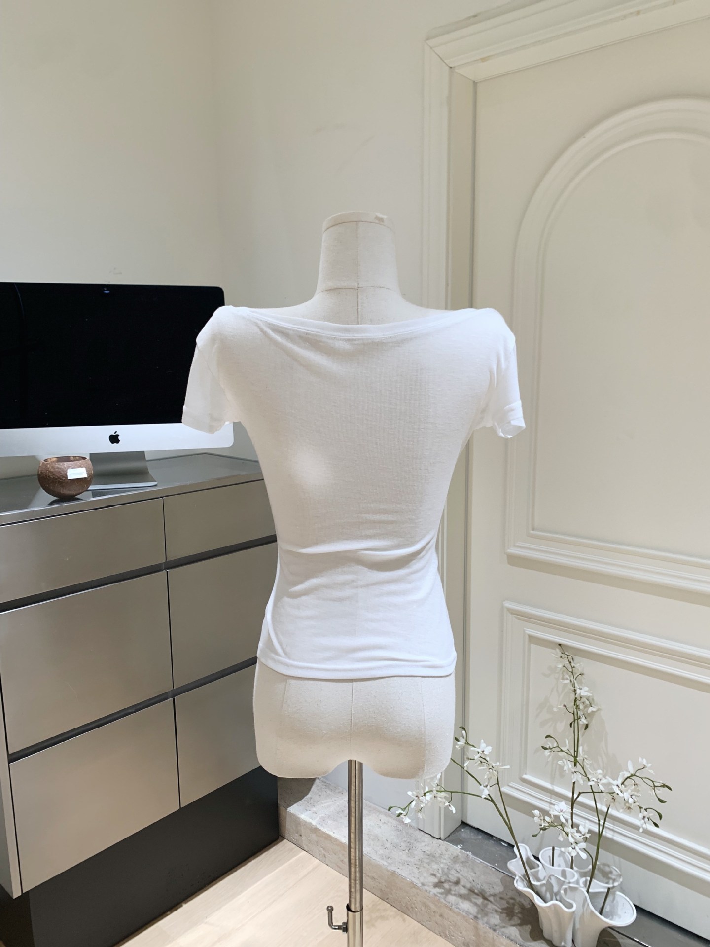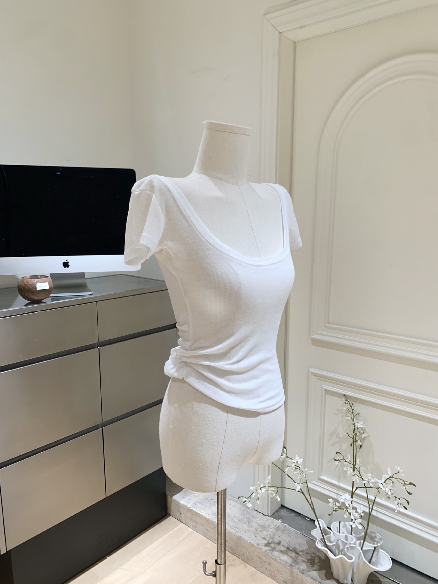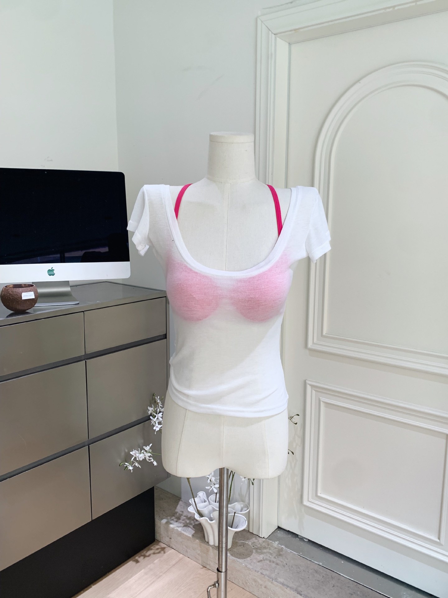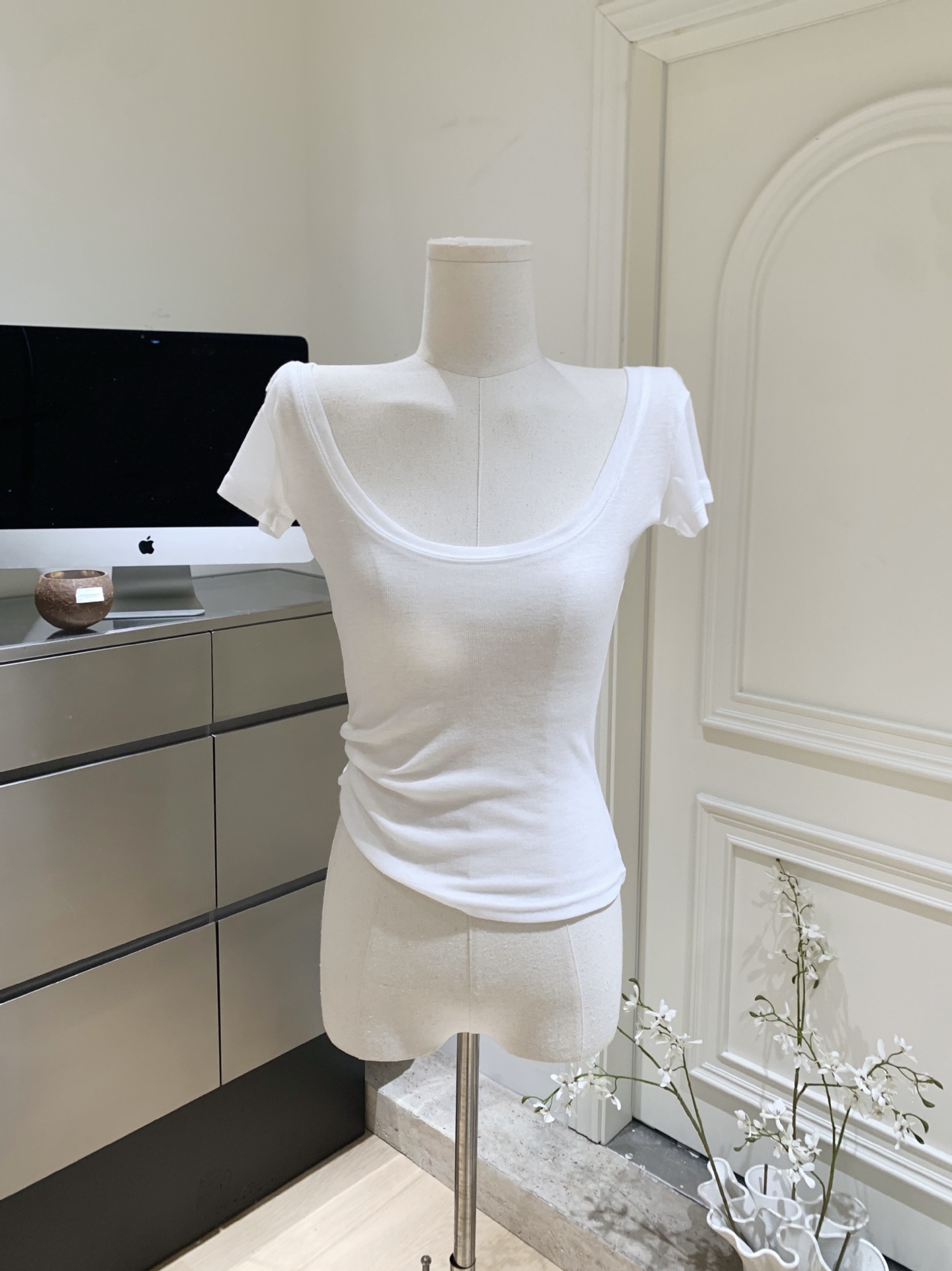 섹시한 순수한 작은 흰색 꽃! 여성을 위한 높은 투명한 게으른 순수한 색깔 탑 반팔 티셔츠스토어 가기
