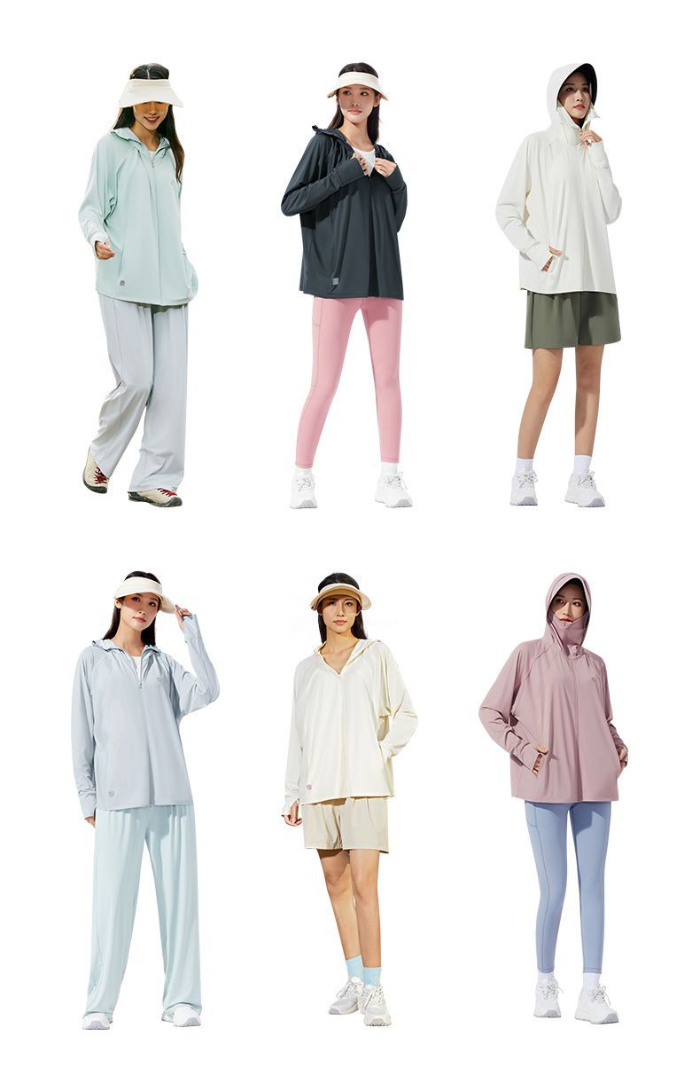2025 여름 새로운 선 스크린 의류 야외 여성 피부 의류 아이스 실크 스포츠 높은 탄성 UV 보호 UPF200스토어 가기